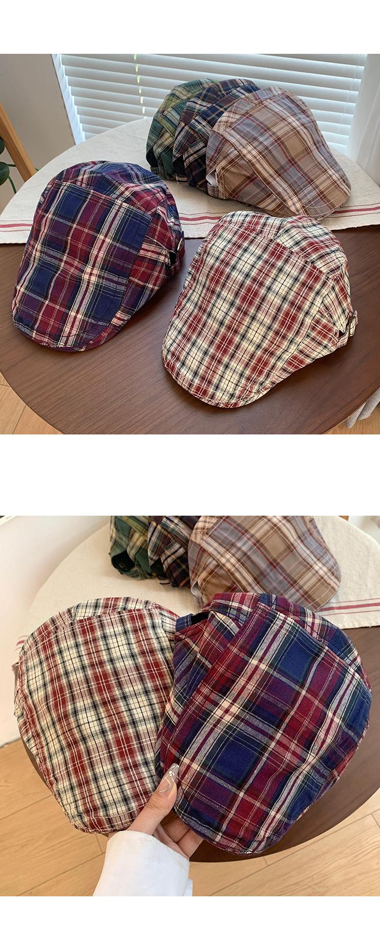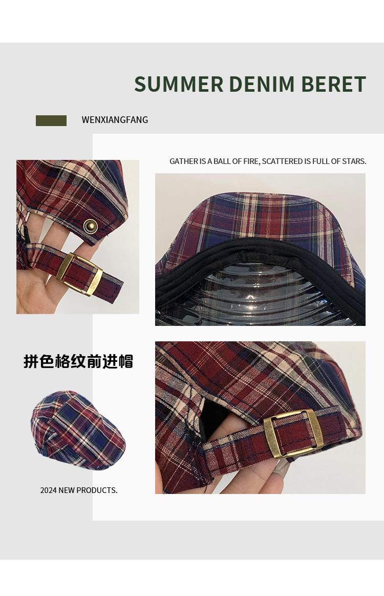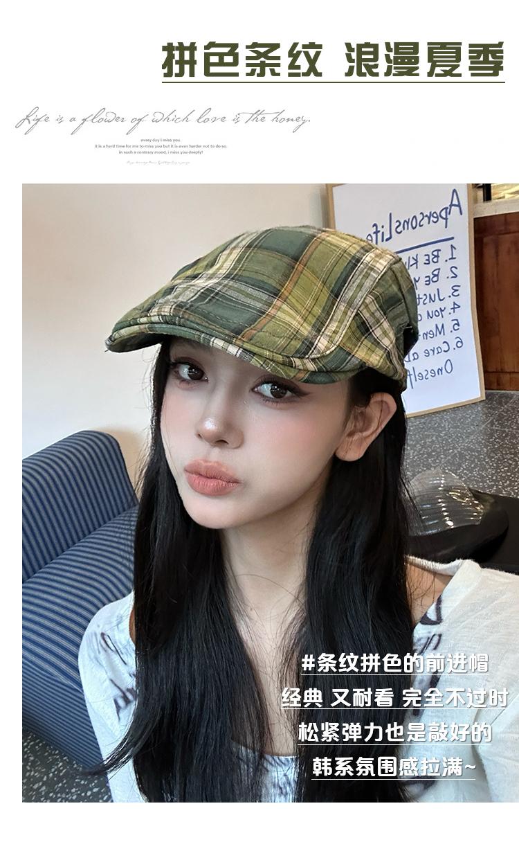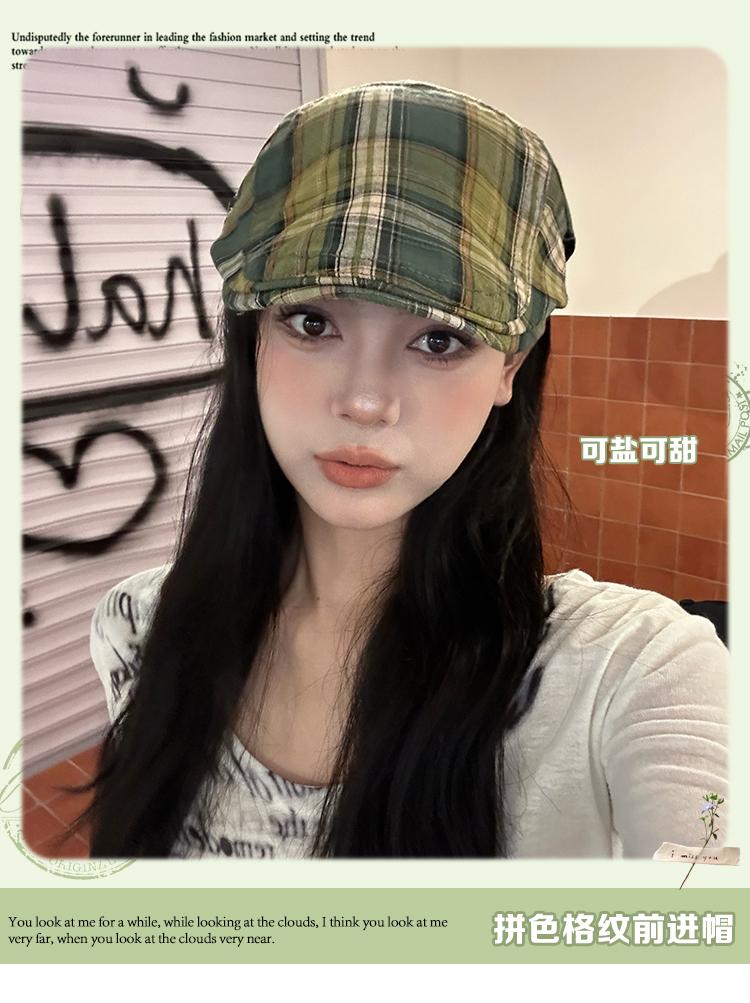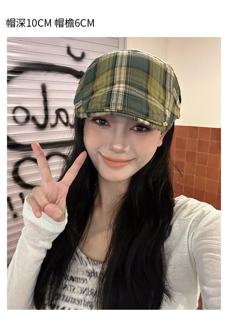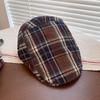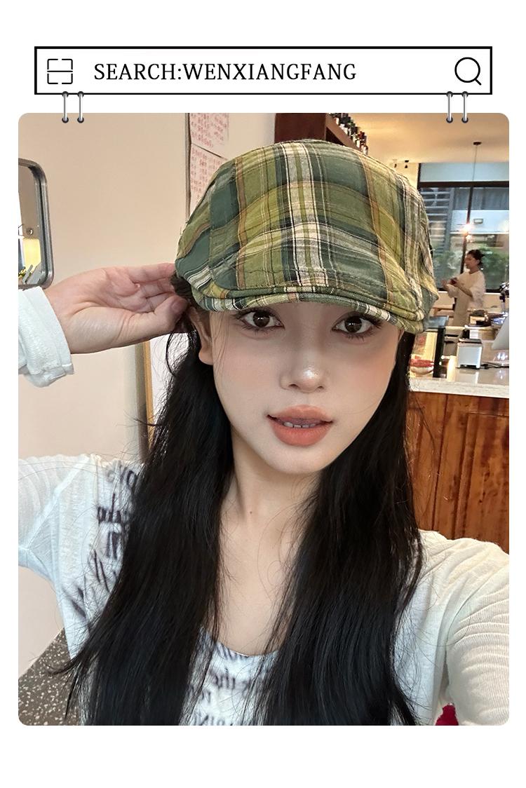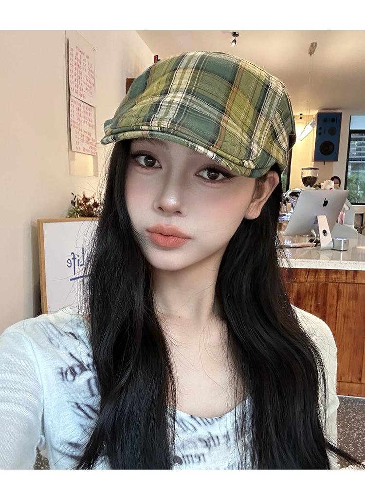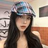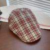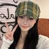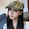 Boina de dopamina a cuadros estilo coreano retro artístico de nicho para mujer, informal, de verano, combinable, de alta gama, con estilo delantero