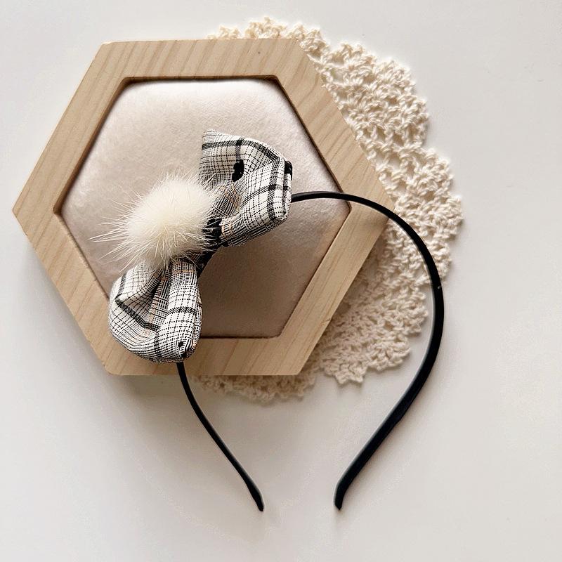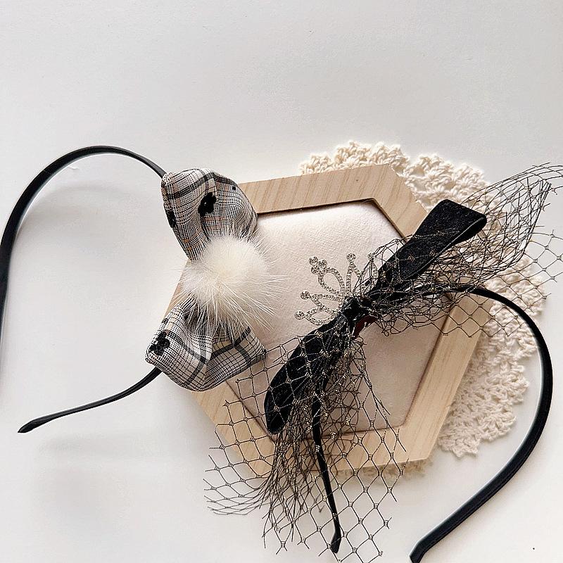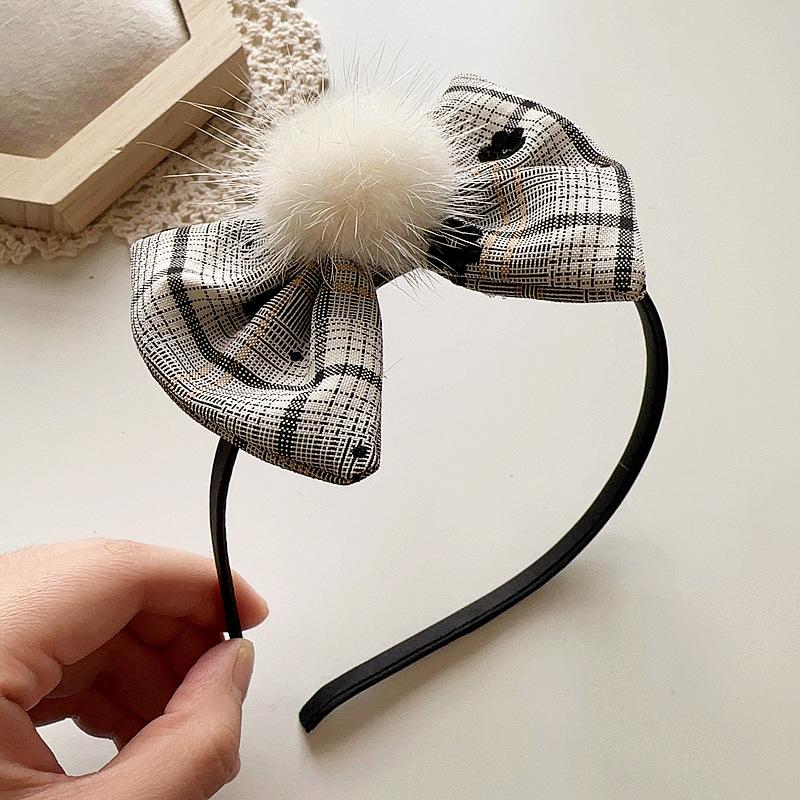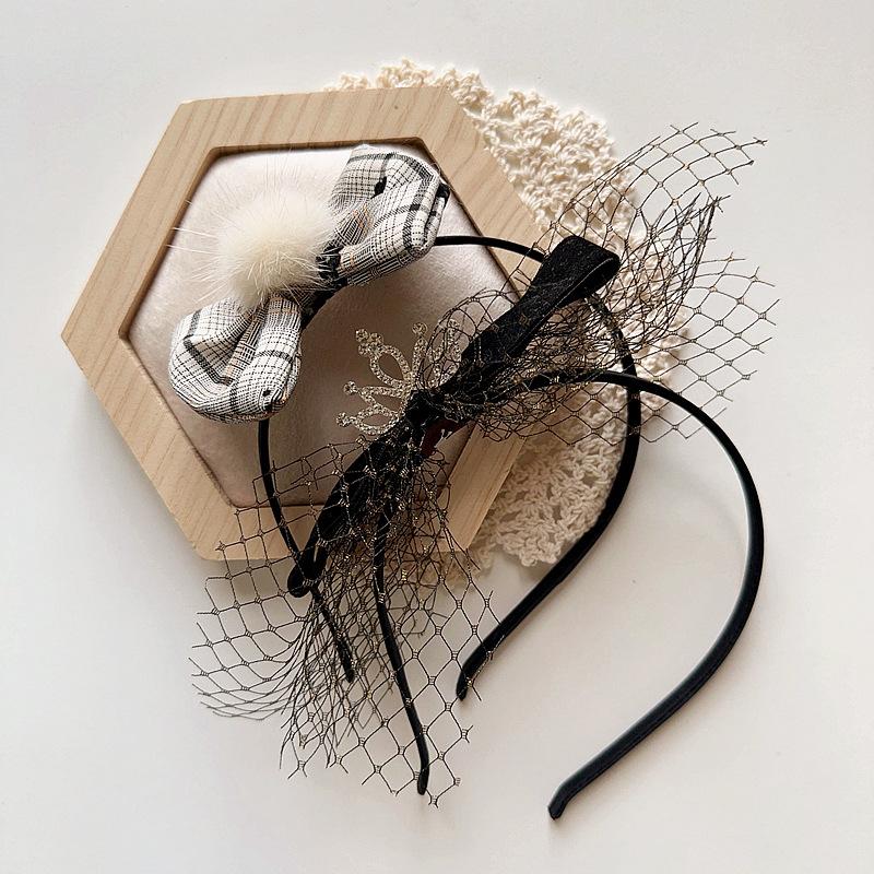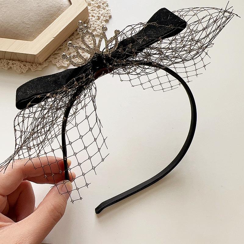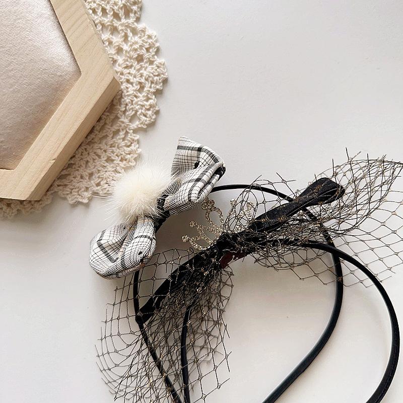 Nueva diadema con lazo de corona de diamantes de terciopelo a cuadros artístico retro para niños, diadema con hebilla para la cabeza, accesorios para el cabello, tocado