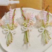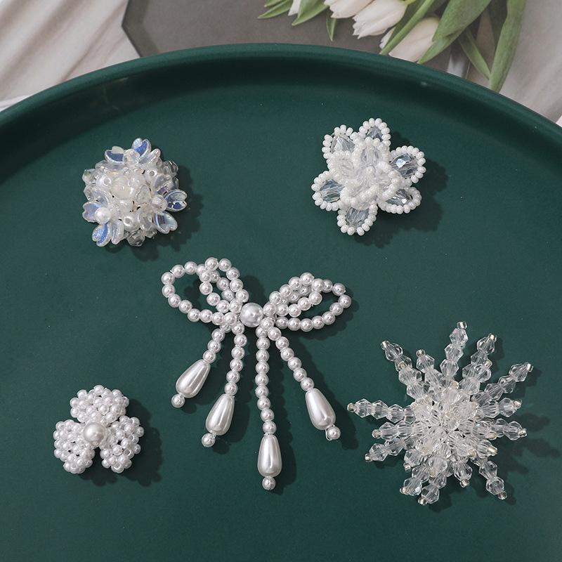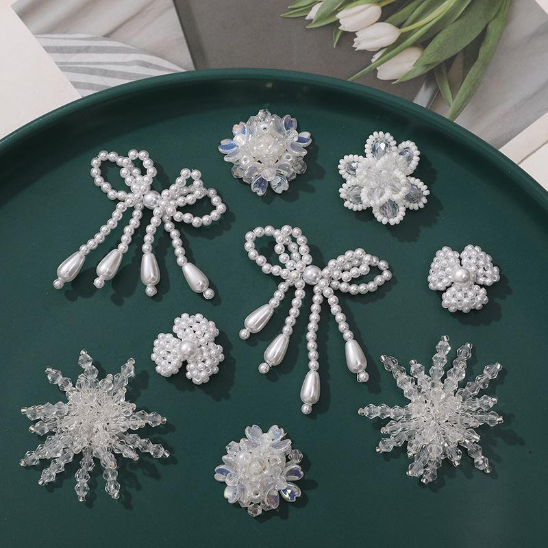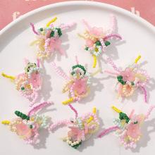 Lazo de flores de cristal de imitación de perla simple de temperamento japonés y coreano, tocado hecho a mano, accesorios para el cabello, pendientes, material al por mayor
