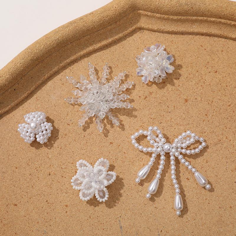 One crystal flower, One pearl three-petal flower, A white crystal flower, One ab color flower, A bow