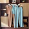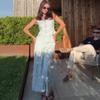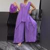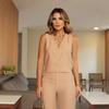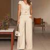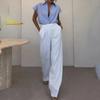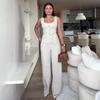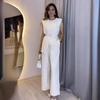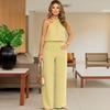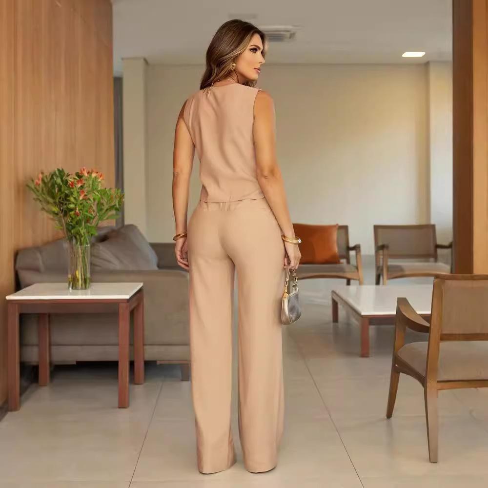 Traje elegante de verano 2024, nuevo, para uso transfronterizo en Europa y América, con top sin mangas de color sólido, cintura alta y pierna ancha, para uso diario.