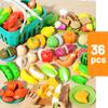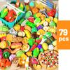 Juego de cocina infantil de verduras y frutas cortadas para bebés, muy popular entre los niños.