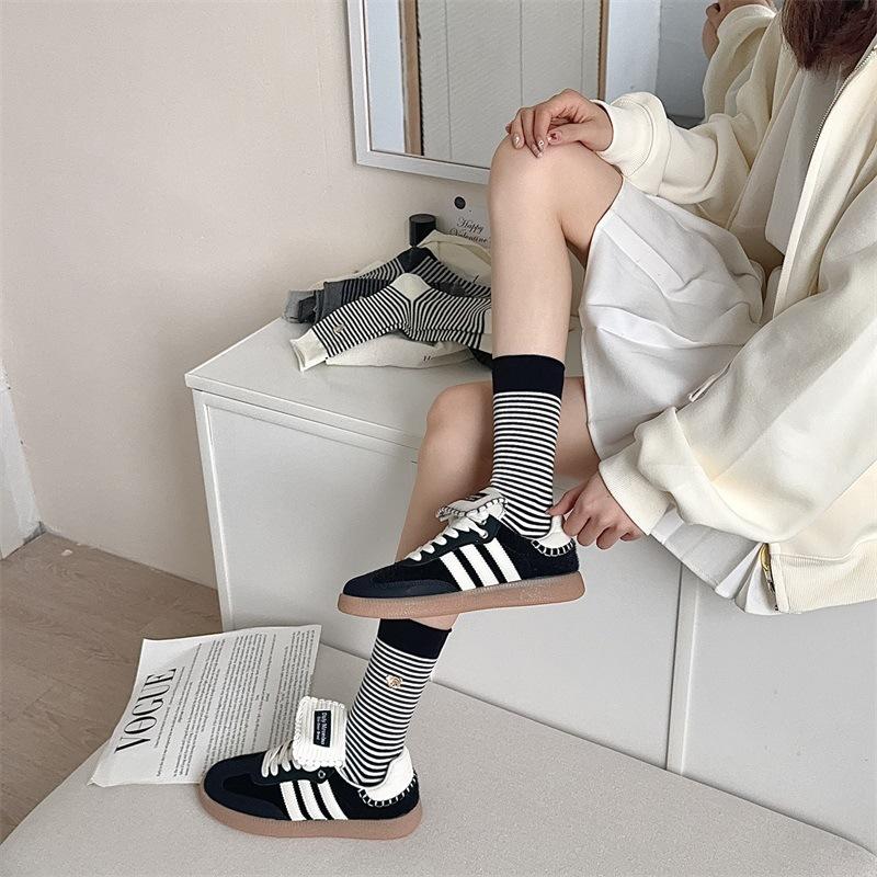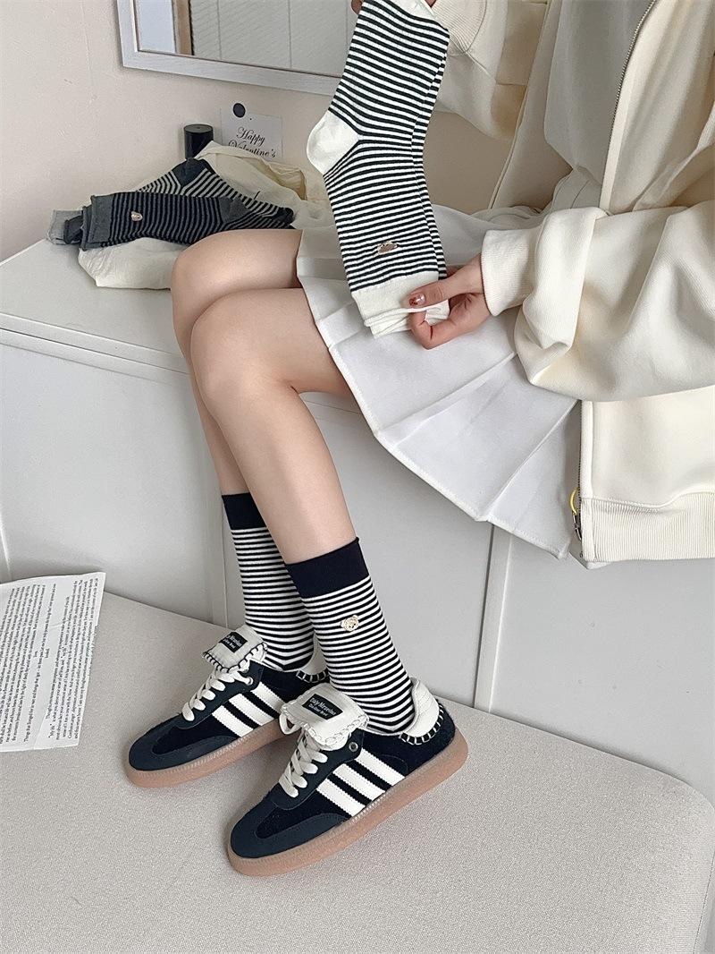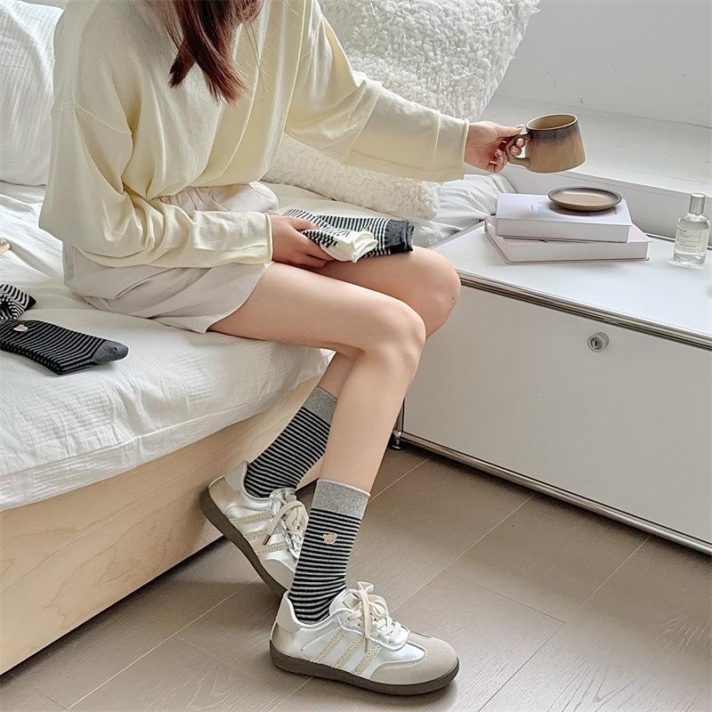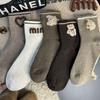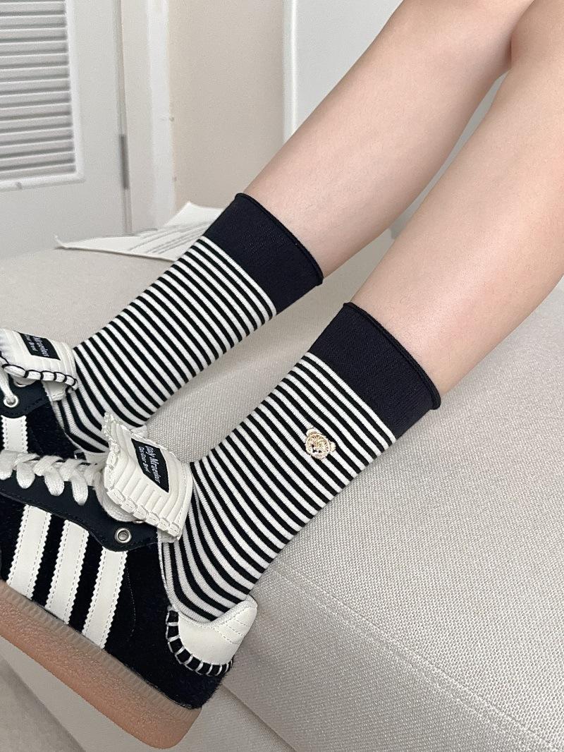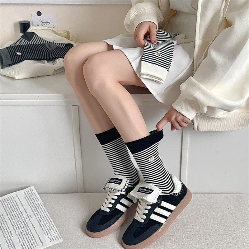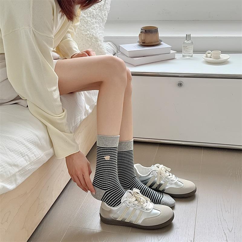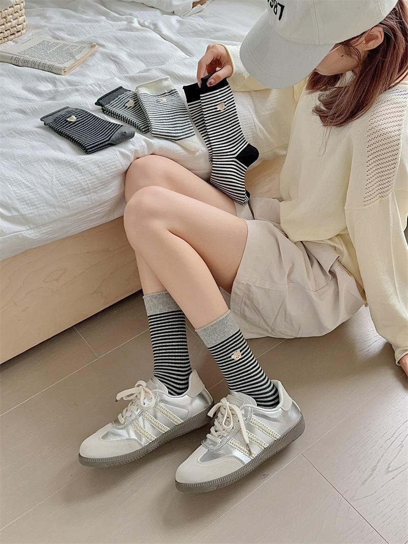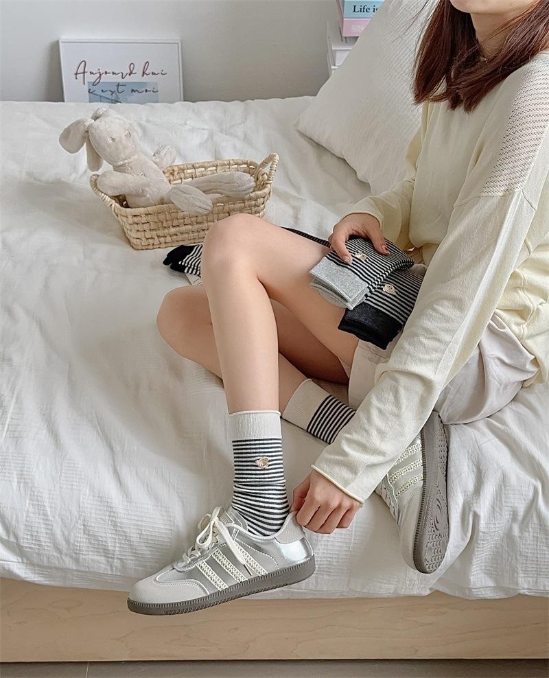 Calcetines 2024 Calcetines de Otoño e Invierno de Media Caña Calcetines de Algodón Enrollables a Rayas Apilados Calcetines Bordados con Oso Calcetines Artísticos Japoneses