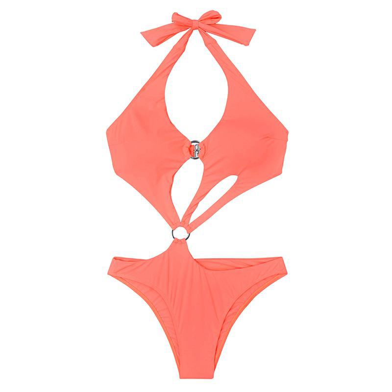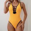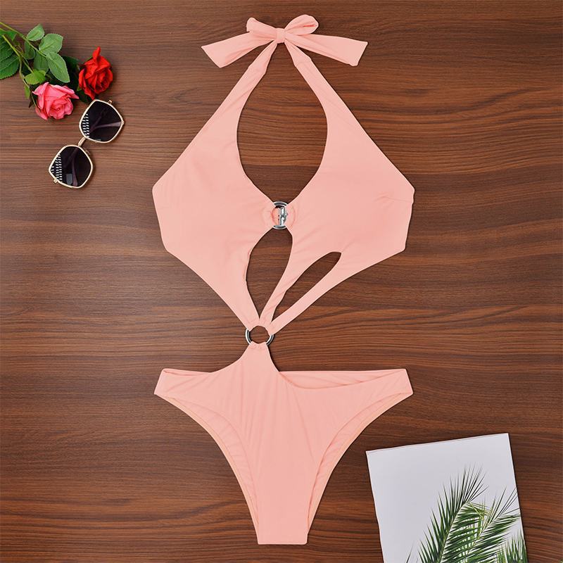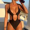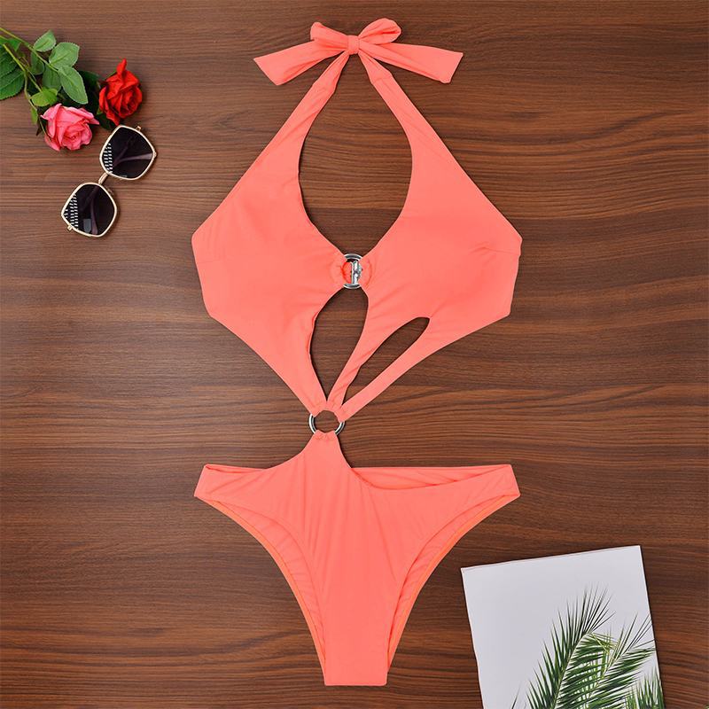 Traje de baño de una pieza sexy europeo y americano de AliExpress, novedad de 2024, para mujer, comercio exterior, Amazon, conservador, transfronterizo, color sólido rojo.
