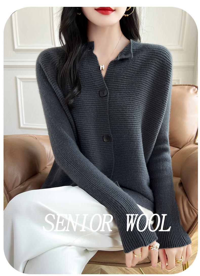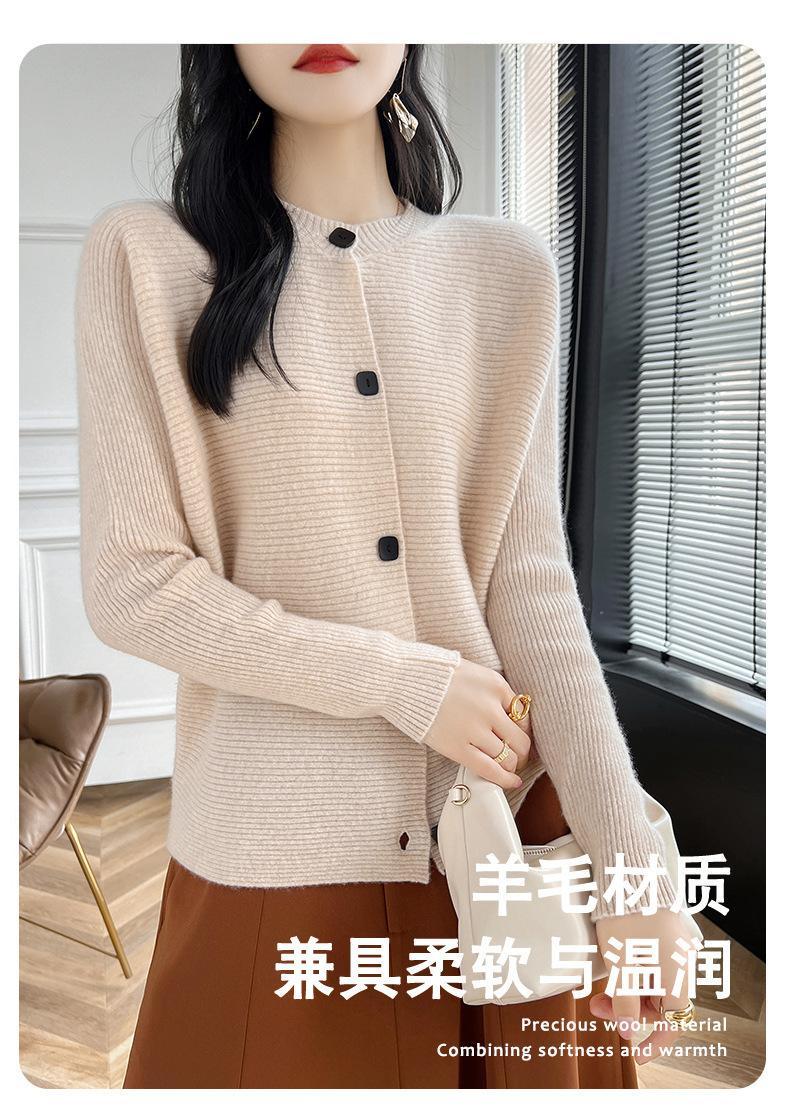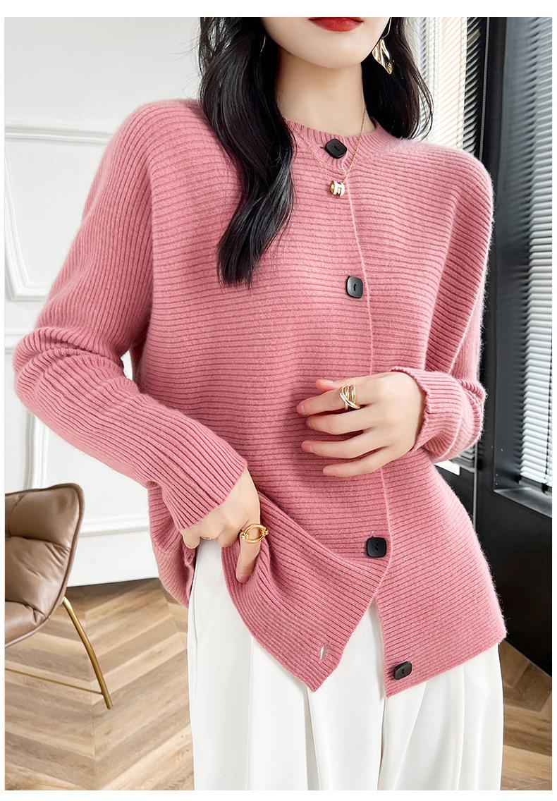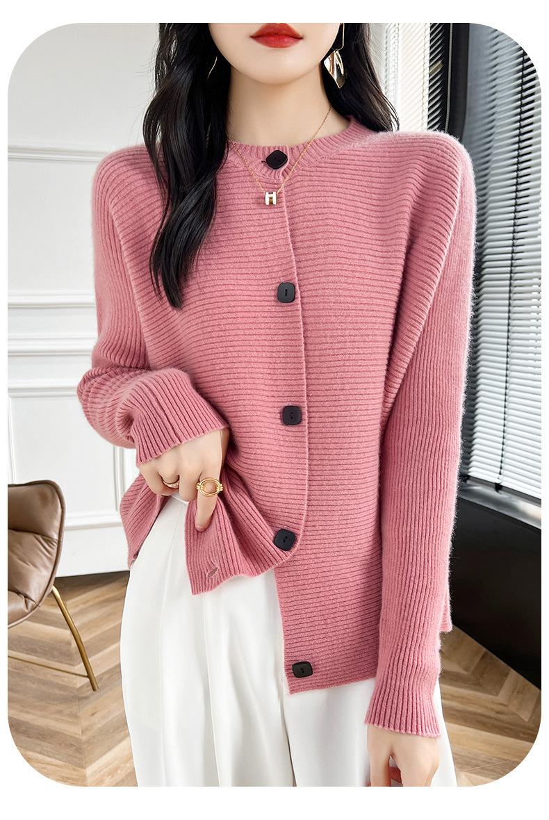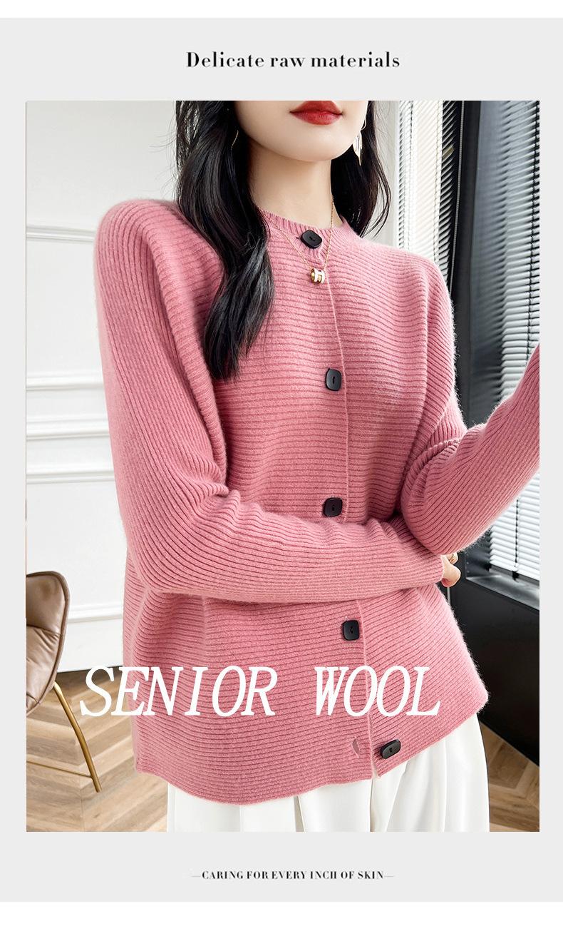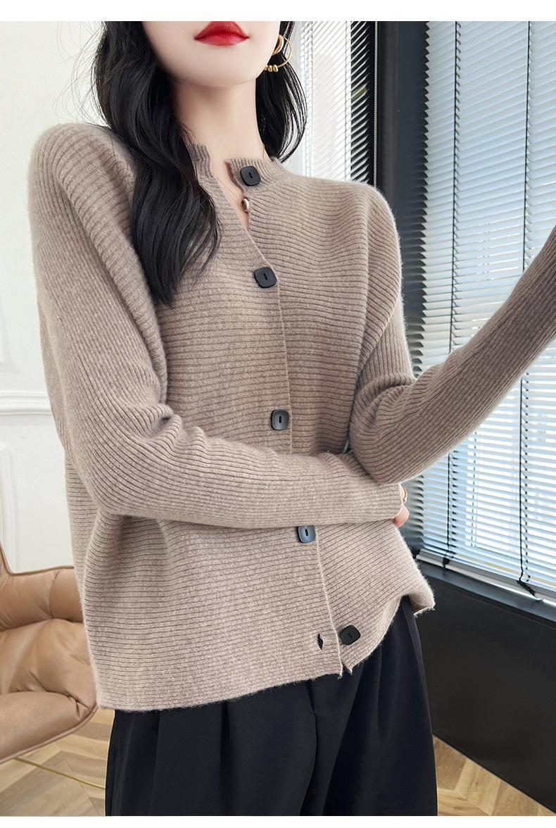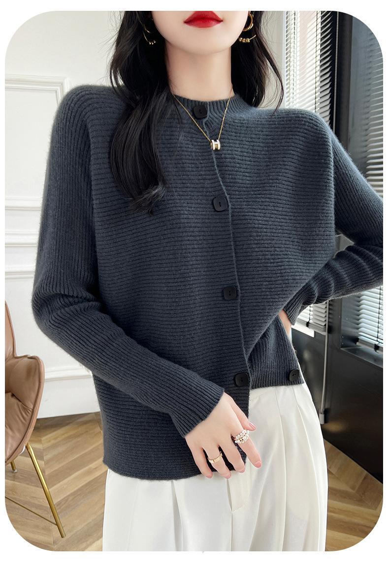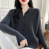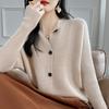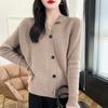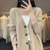 Cárdigan de lana 100% pura para mujer, otoño e invierno, nuevo, cuello redondo, color liso, suelto, suéter sencillo de punto, manga larga, abrigo con botones