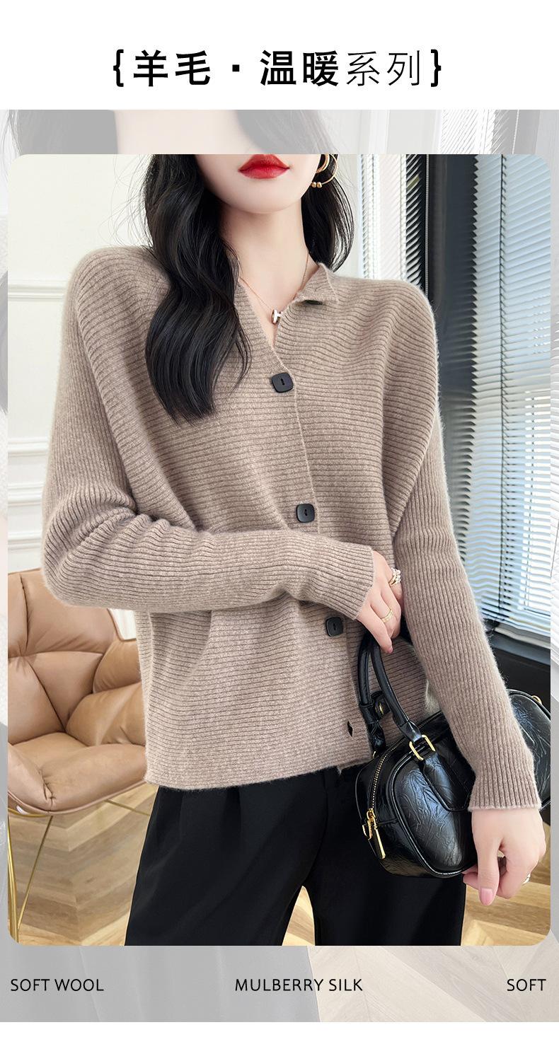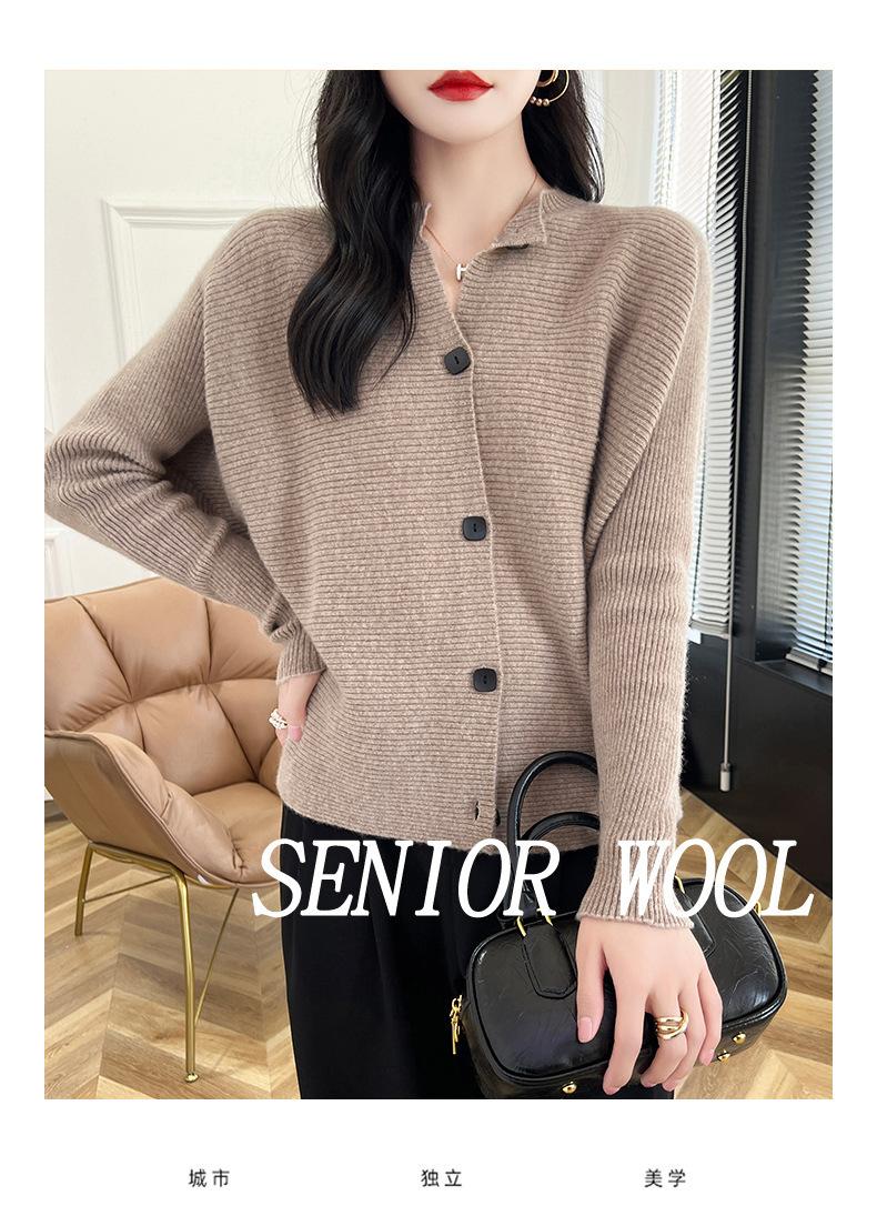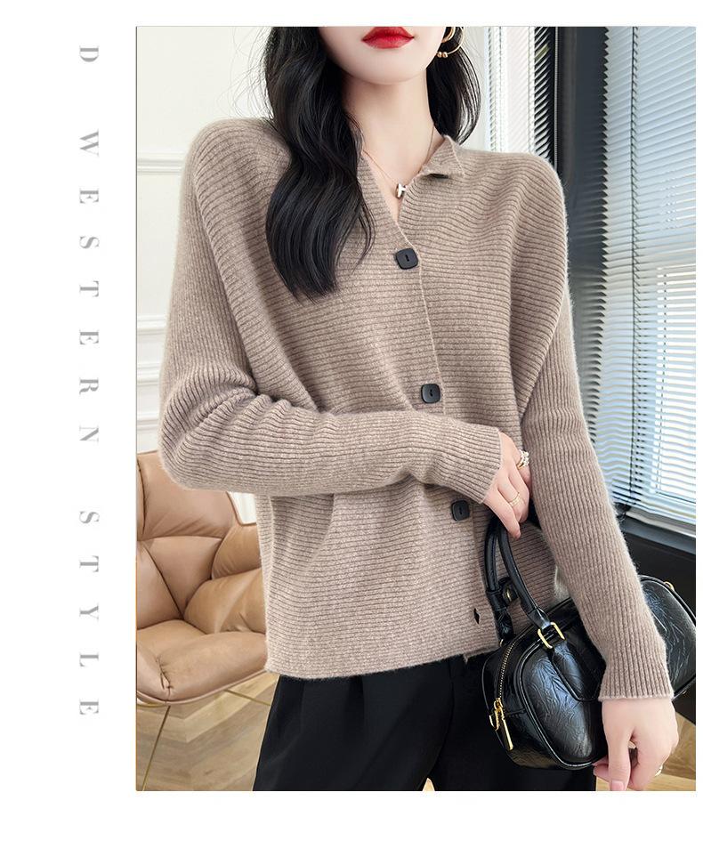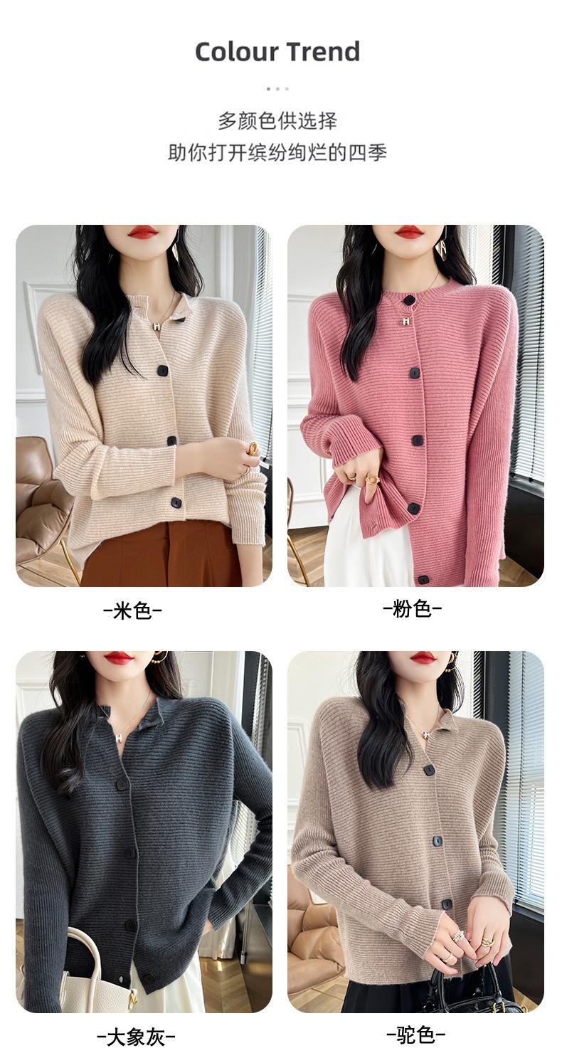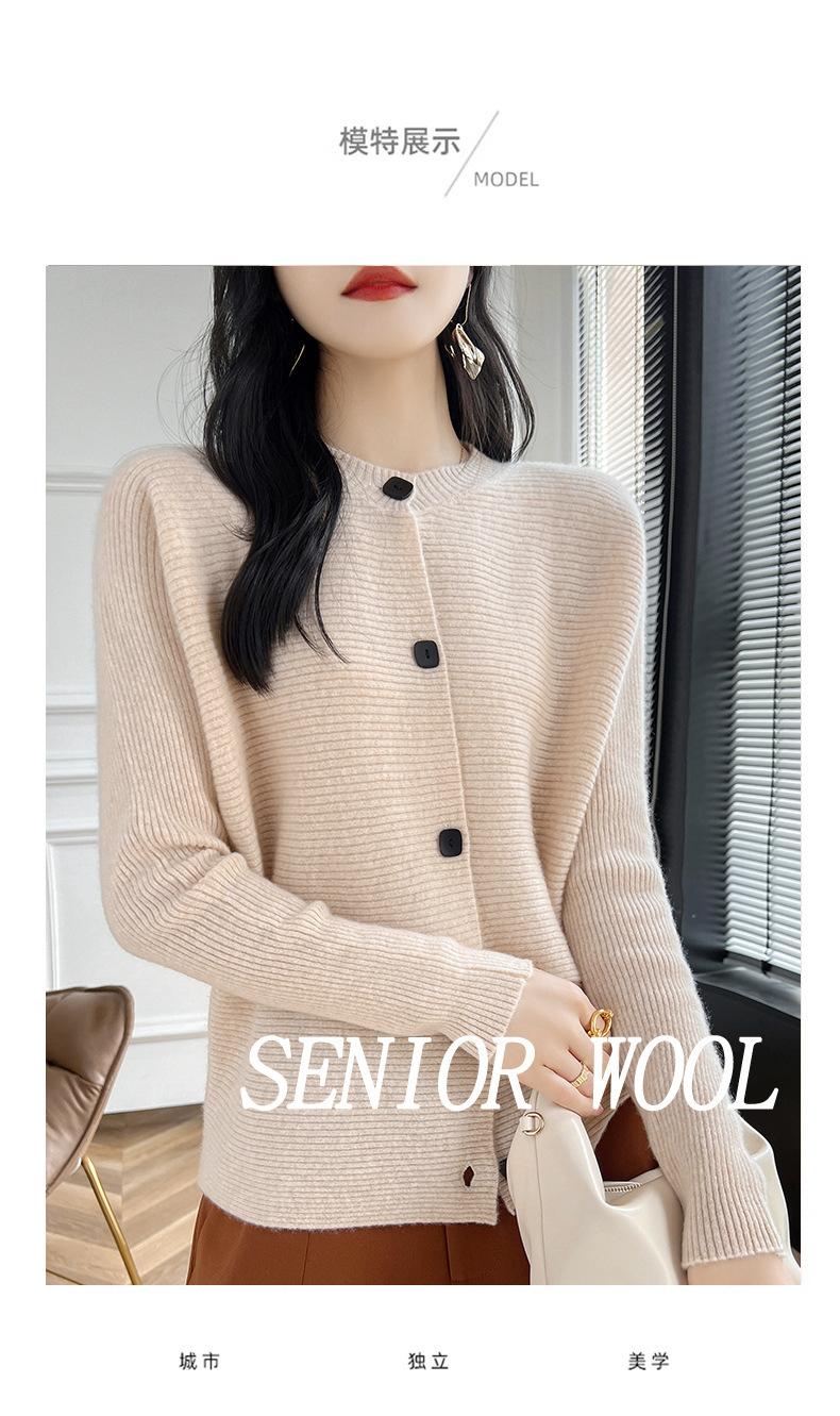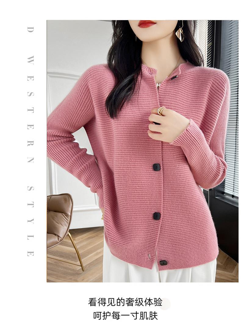 Cárdigan de lana 100% pura para mujer, otoño e invierno, nuevo, cuello redondo, color liso, suelto, suéter sencillo de punto, manga larga, abrigo con botones