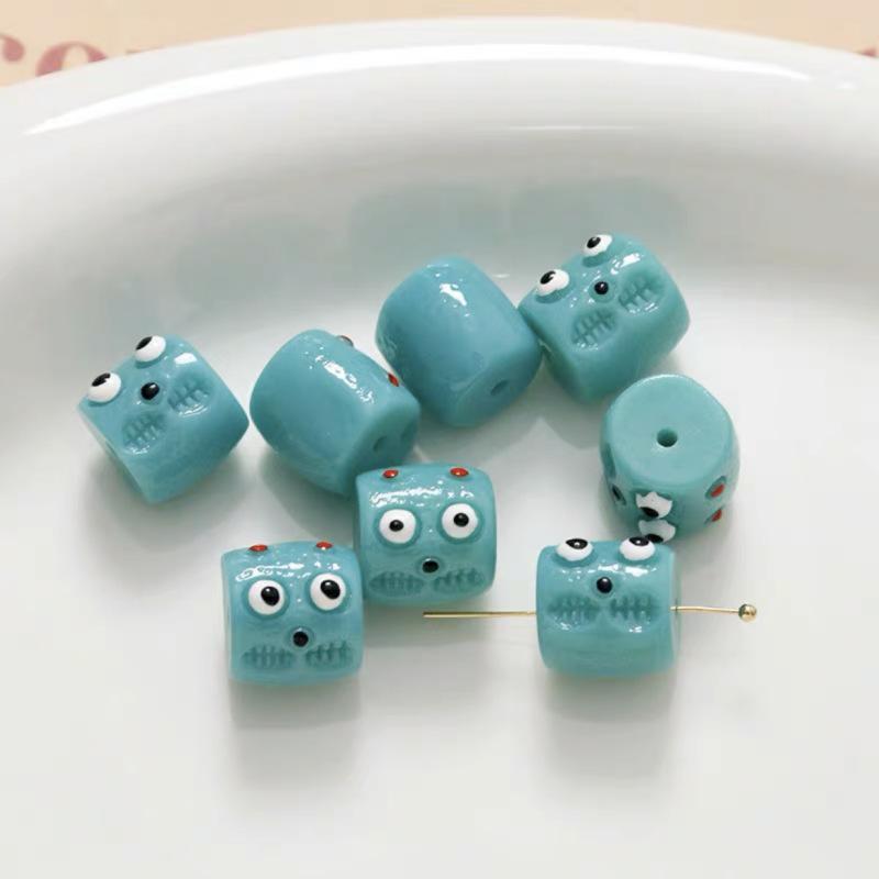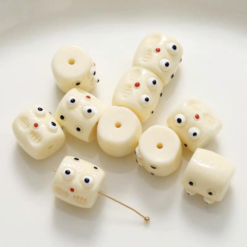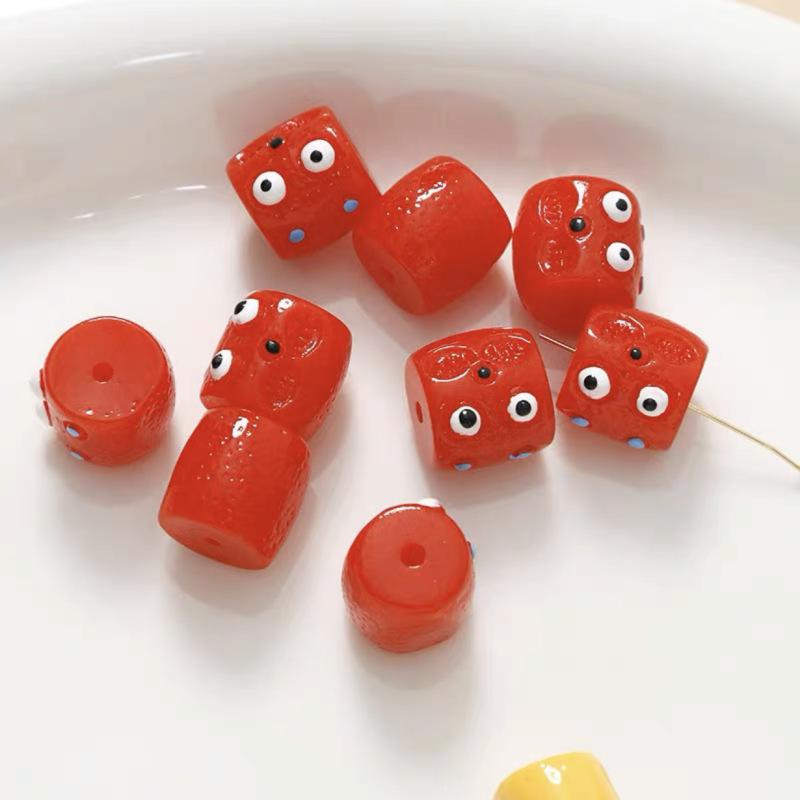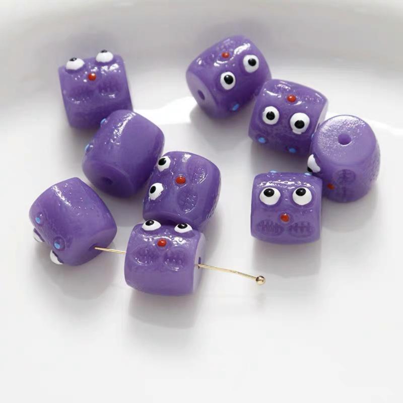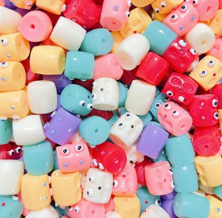 Coloridas y divertidas cuentas de barril con agujero horizontal de monstruito, cuentas sueltas, material para bisutería DIY hecha a mano, pulsera, cadena para teléfono móvil, accesorios