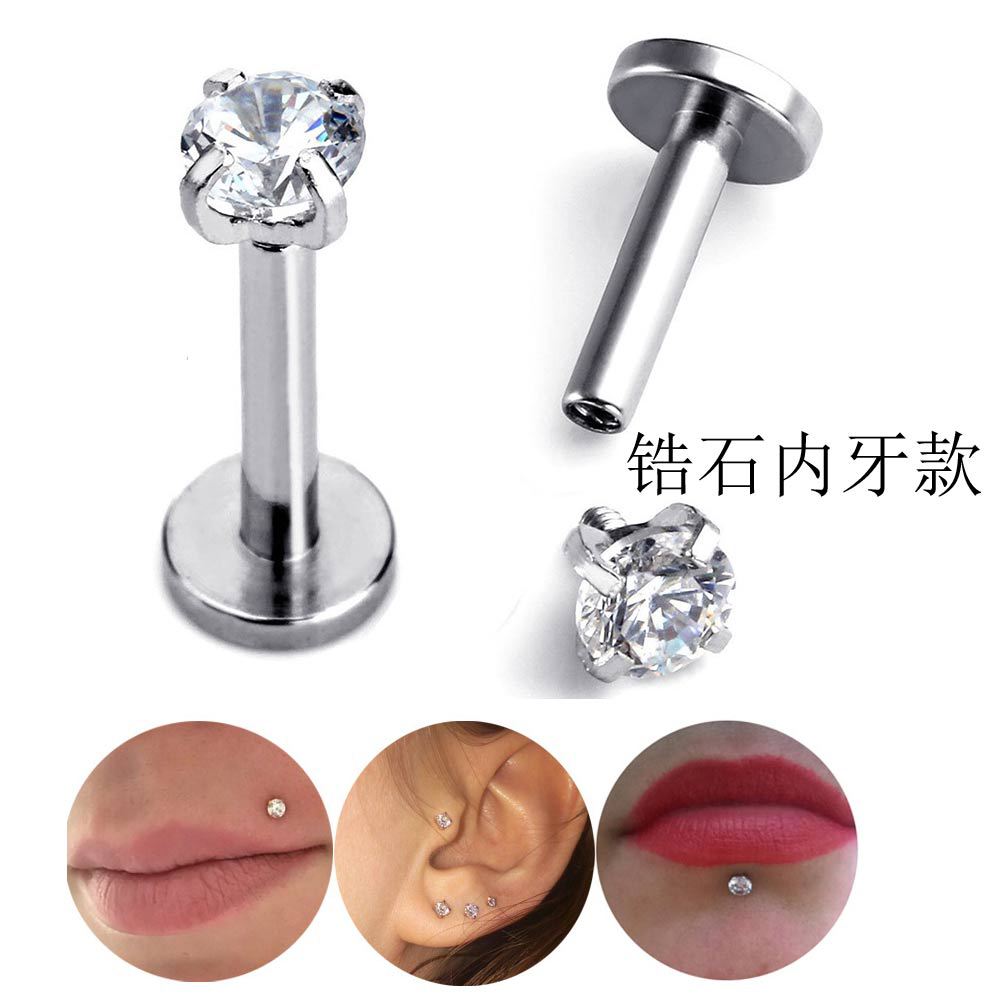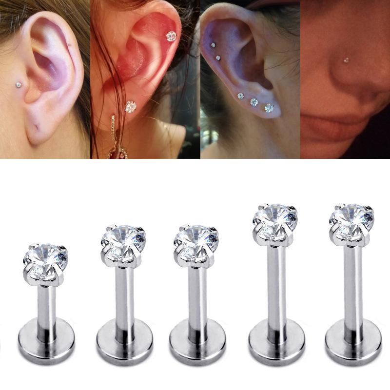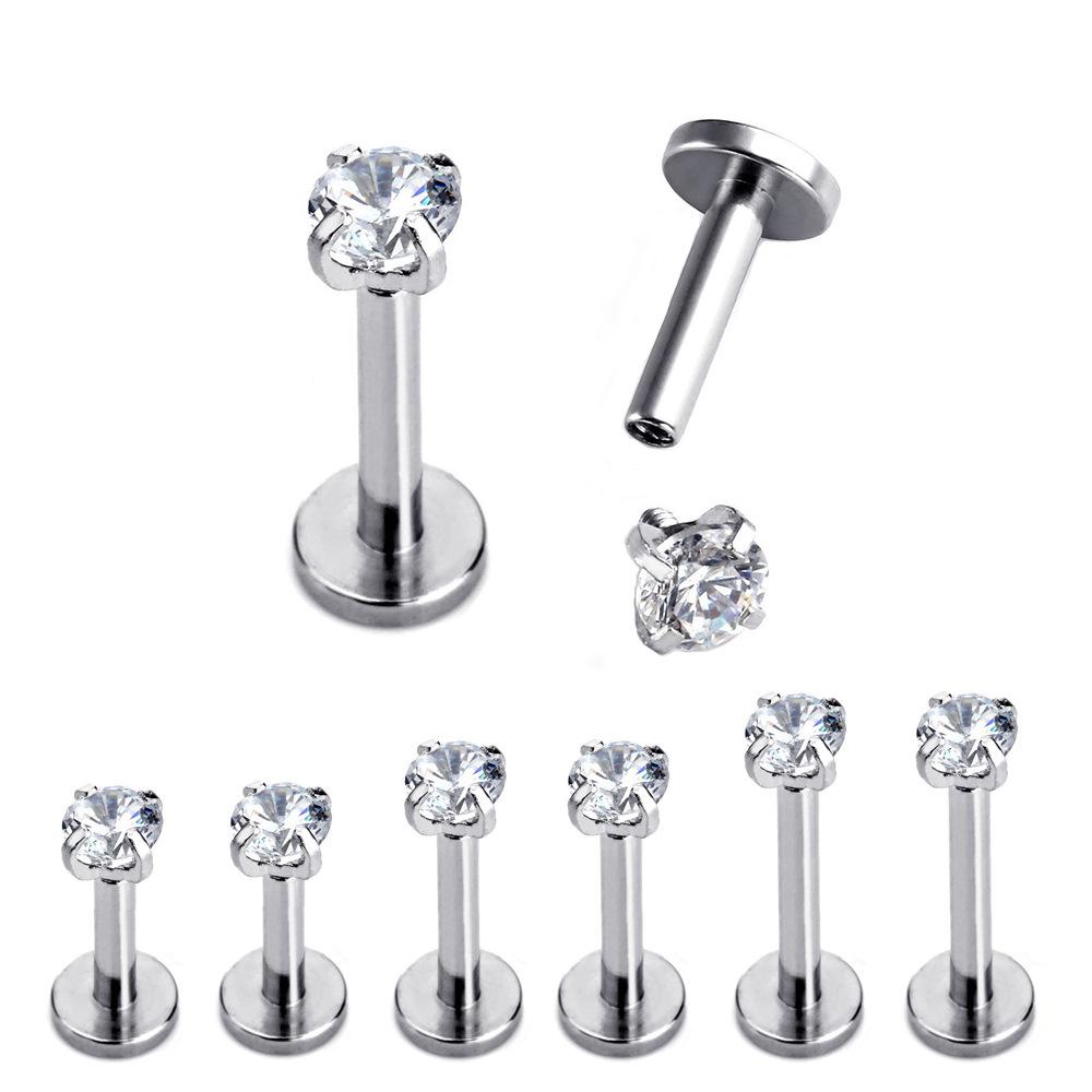 Acero Inoxidable Rosca Interna Zircon Aretes Labiales Aretes para Hueso de la Oreja Anillos Labiales Aretes para la Oreja Aretes para Hoyuelos Joyería para Perforaciones