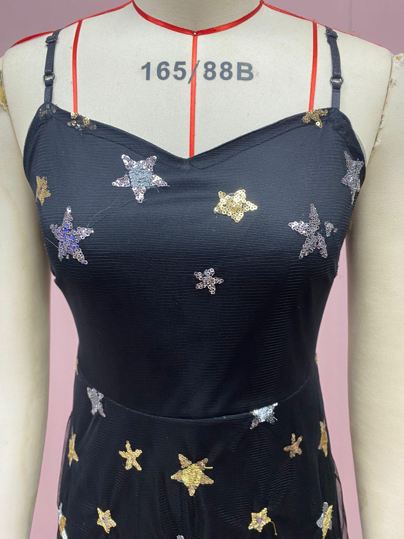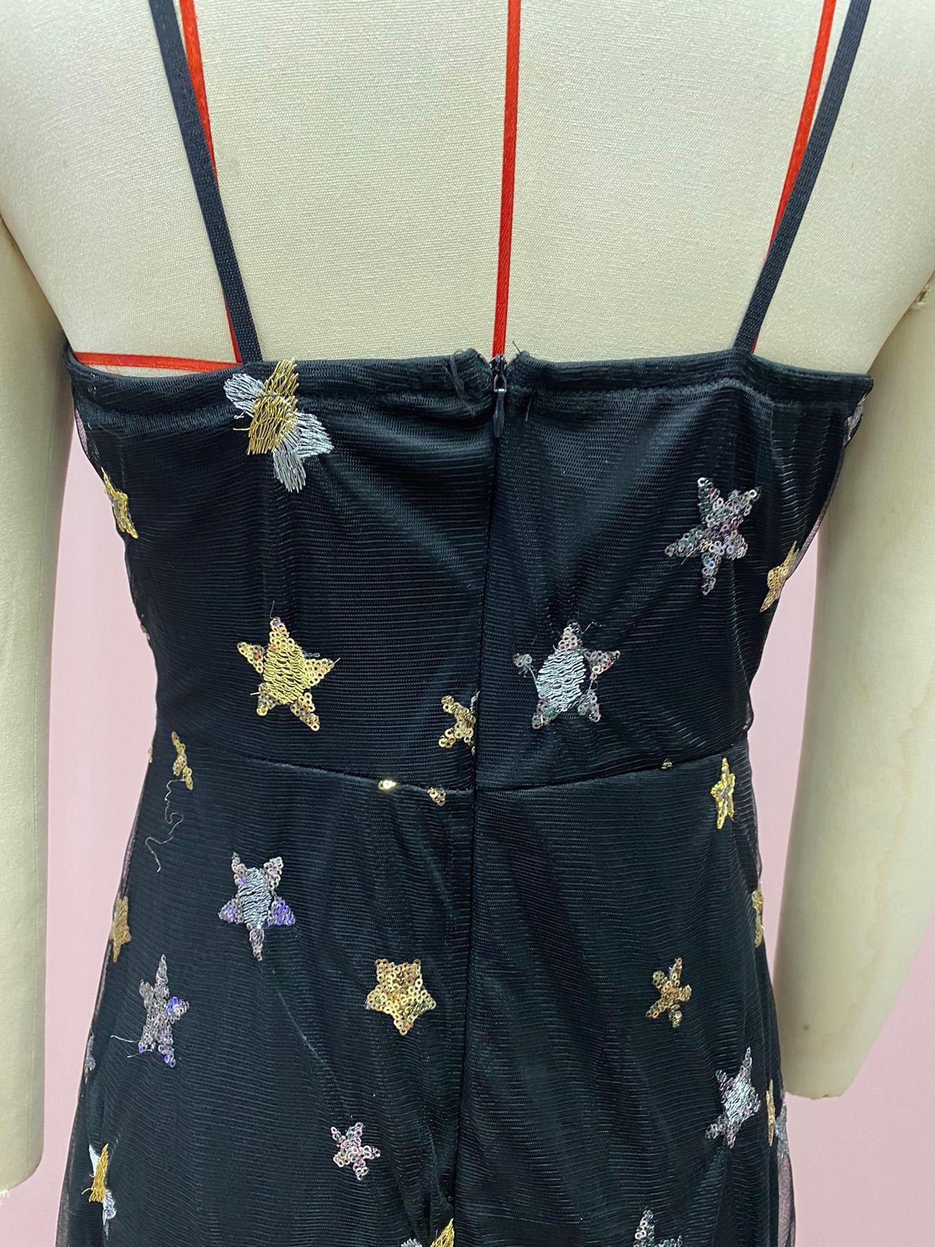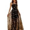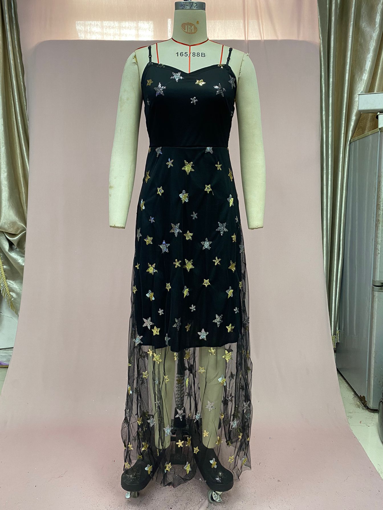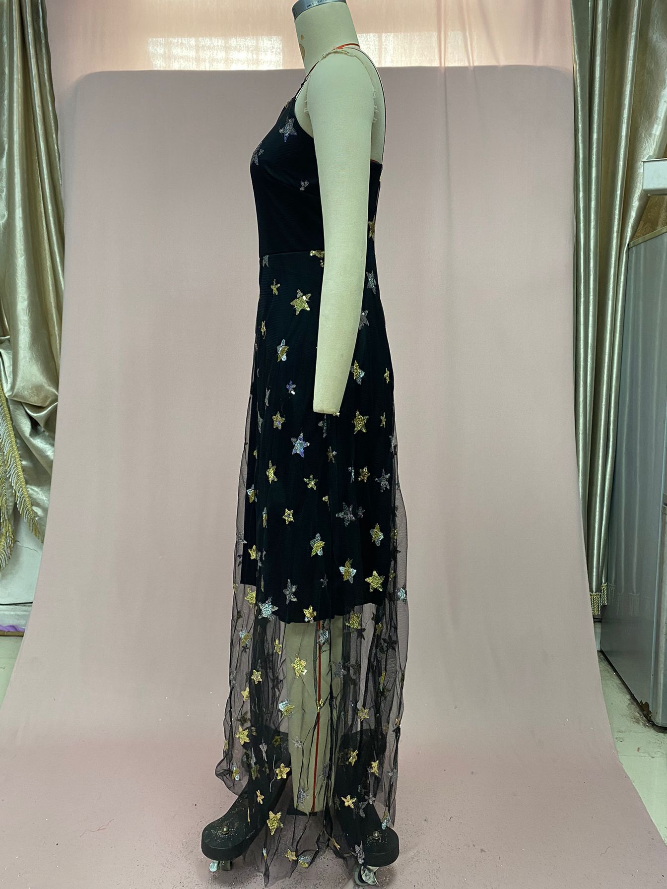 2025 Verano Nuevo Ropa de Mujer de Exportación Europea y Americana Ebay Vestido Transparente de Malla con Tirantes de Estrella de Cinco Puntas Falda Larga Elegante