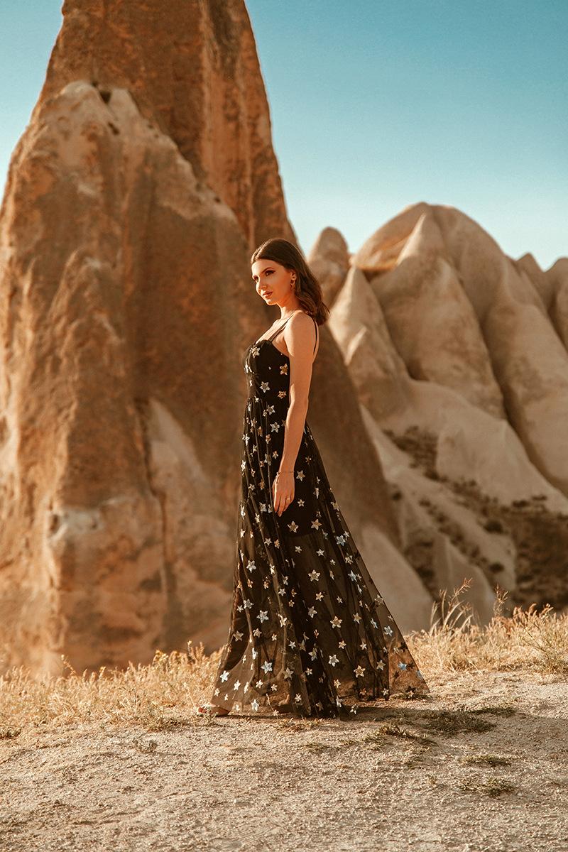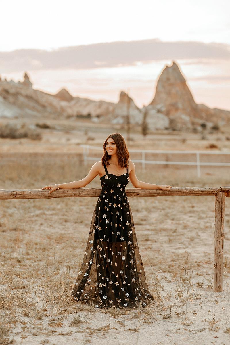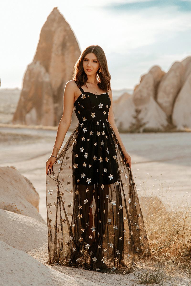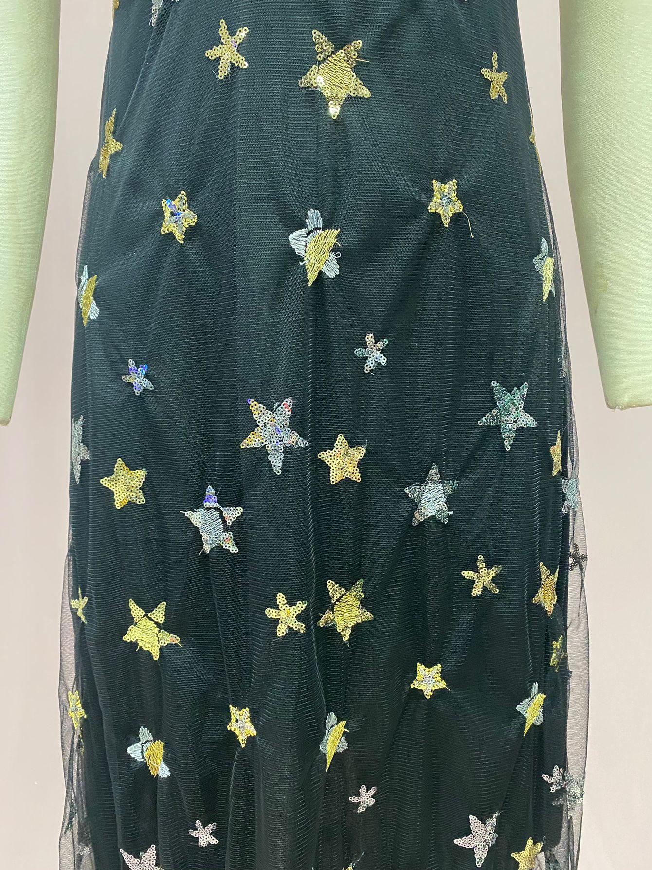2025 Verano Nuevo Ropa de Mujer de Exportación Europea y Americana Ebay Vestido Transparente de Malla con Tirantes de Estrella de Cinco Puntas Falda Larga Elegante