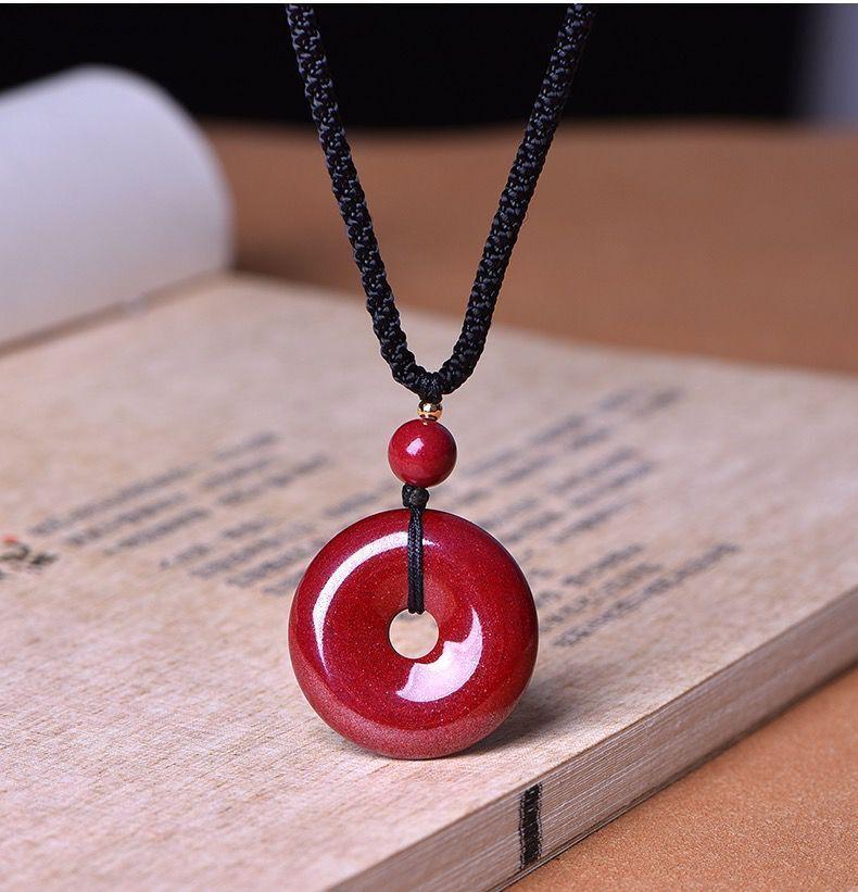 Collar con colgante de hebilla de seguridad de cinabrio de mineral crudo natural para hombres y mujeres, colgante de jade, vida útil para siempre, colgante seguro, arena de oro púrpura