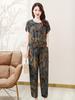 Traje de seda de algodón para mujer, nueva moda de verano, talla grande, elegante, de algodón artificial para mamá, manga corta, pantalones de nueve largos, pijama de dos piezas