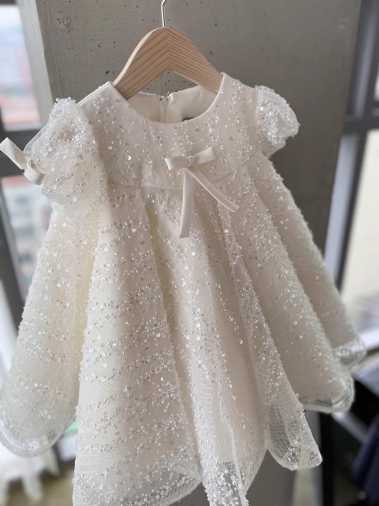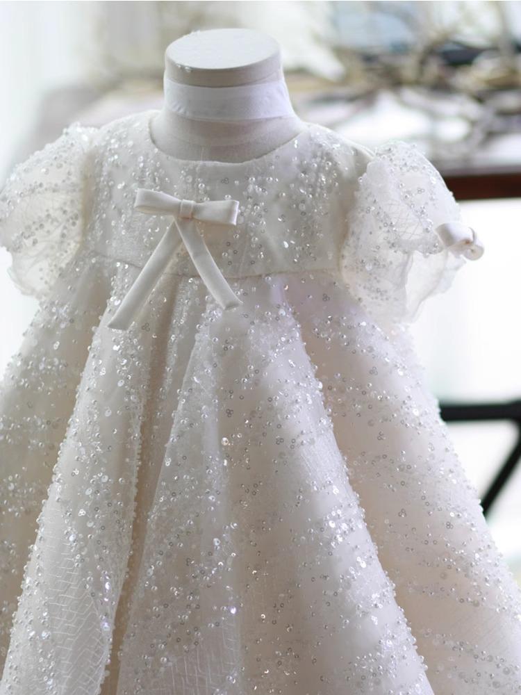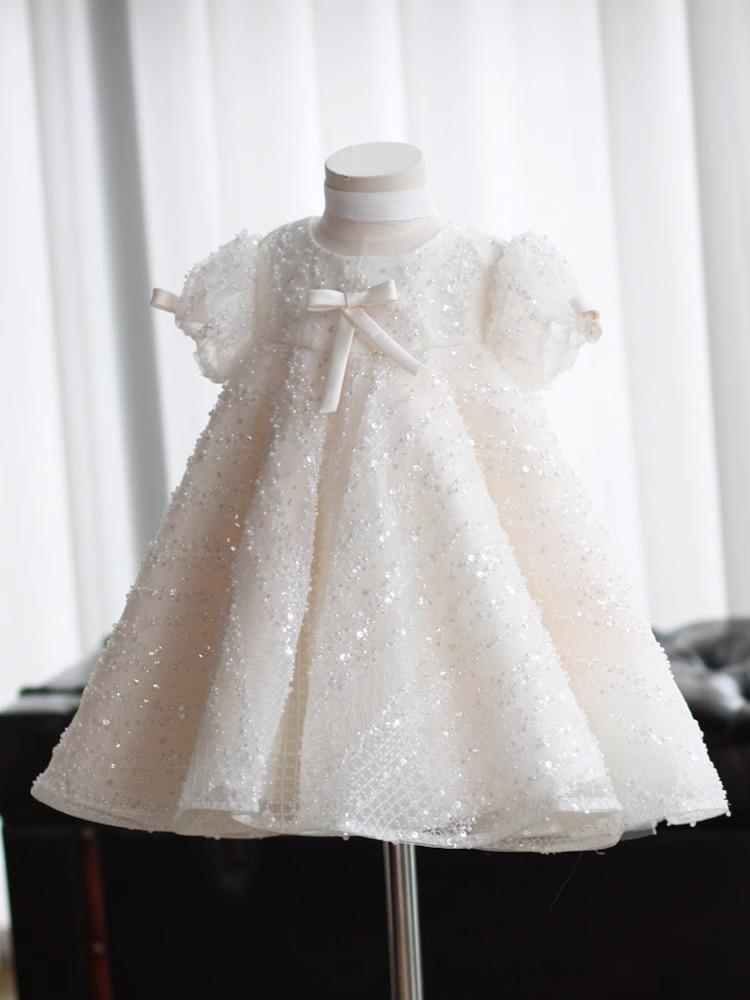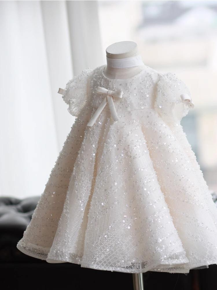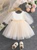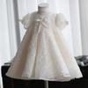Vestido de Lentejuelas para Niñas 2025 Nuevo Vestido de Princesa Gasa Esponjosa Vestido para el Primer Cumpleaños del Bebé Estilo Coreano Cintura Alta Primavera