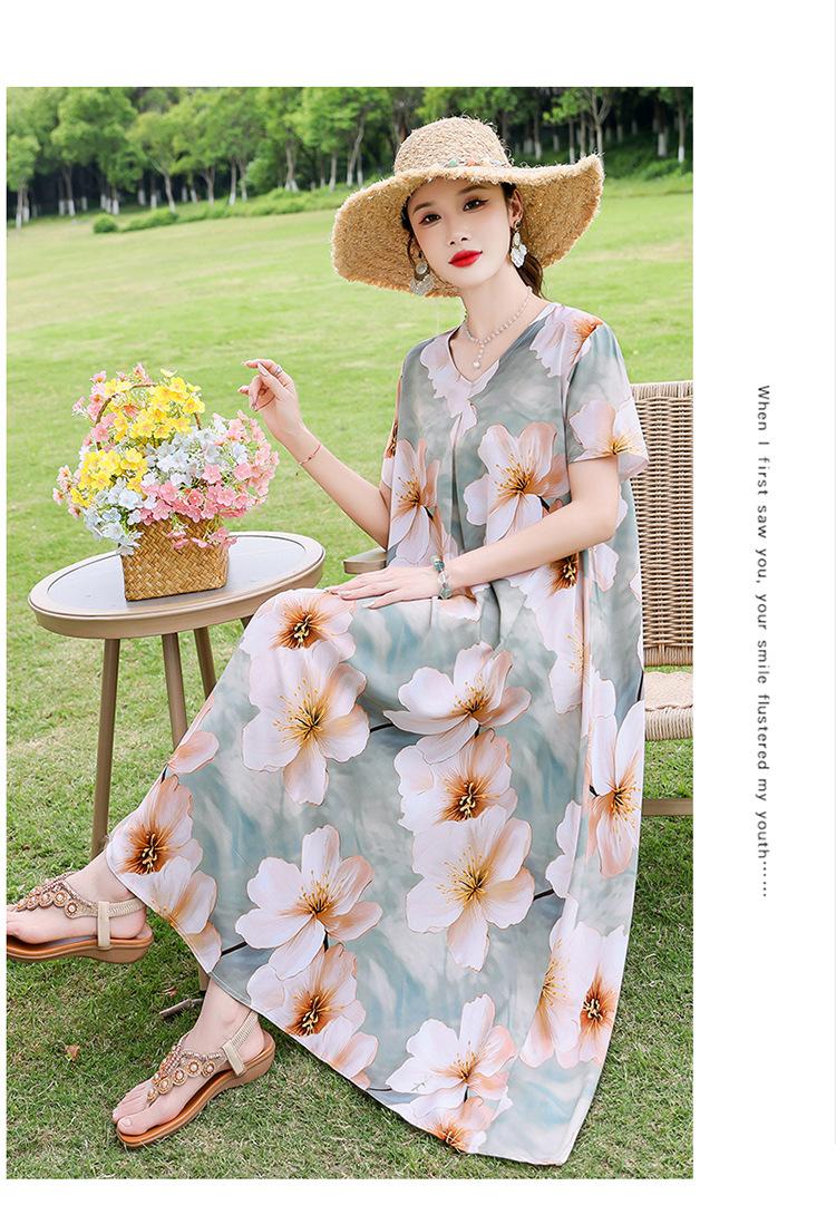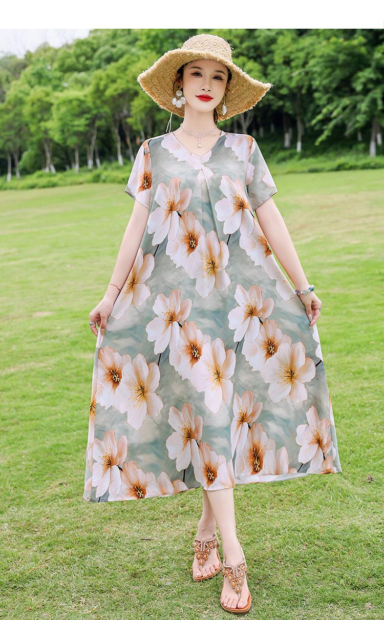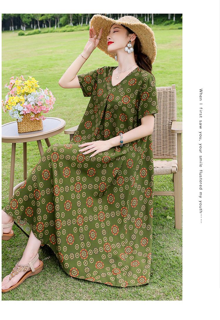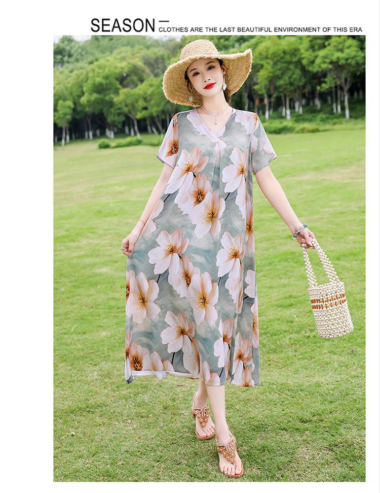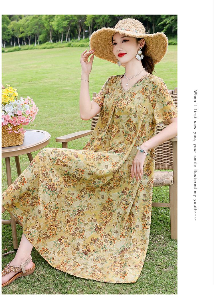 Compra Vestido de Algodón Seda de Verano de Nuevo Estilo para Personas de Mediana Edad y Mayores, Falda Larga hasta la Rodilla, Talla Grande, Elegante Falda de Algodón Artificial al por mayor en Joom.pro