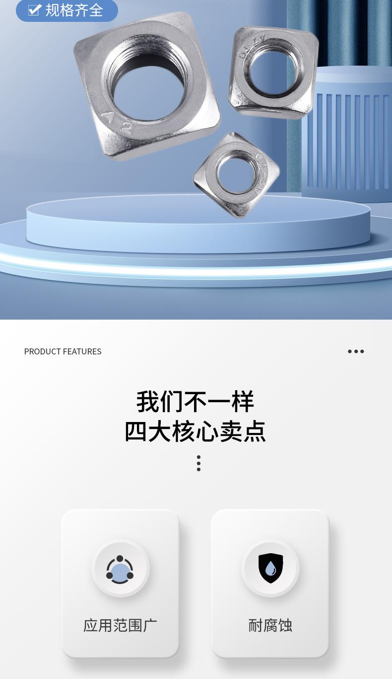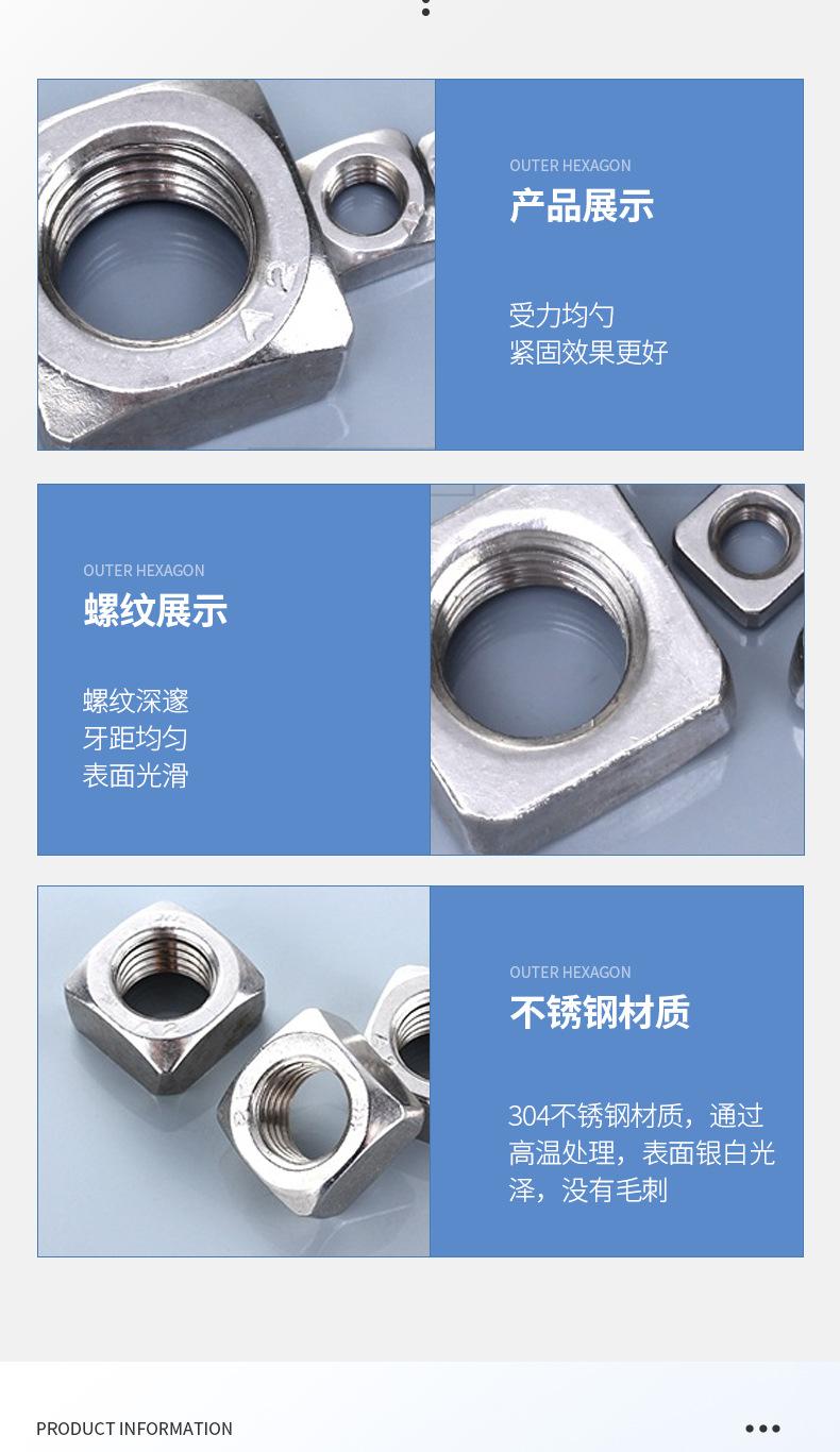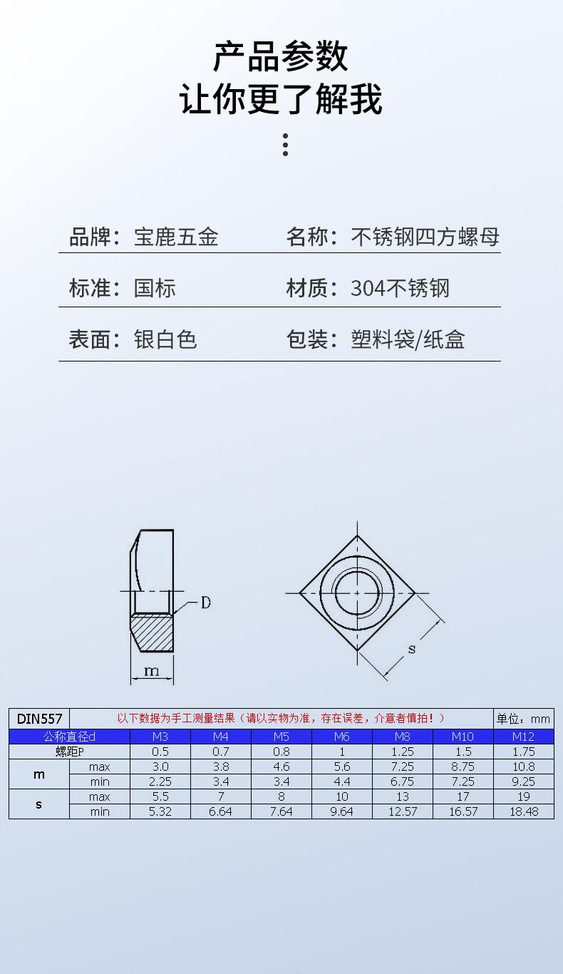 Tuerca cuadrada de acero inoxidable 304 DIN557, grado 4.8, venta al por mayor, M3-M6M8M, 10 m1