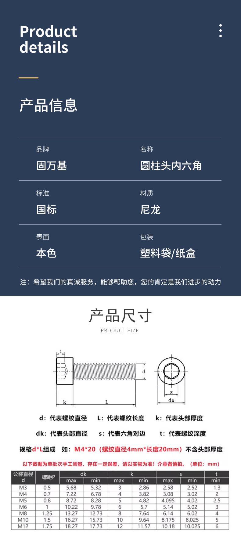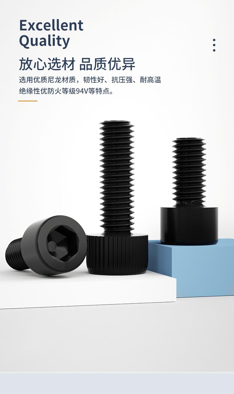Tornillo de nailon, tornillo de cabeza hueca hexagonal de plástico, tornillo aislado, tornillo hexagonal de plástico, tornillo de prestamista M3-M12