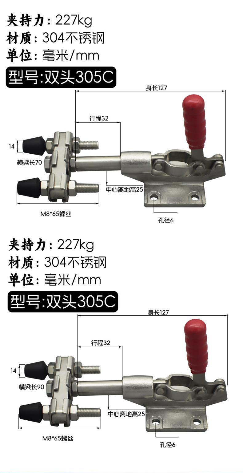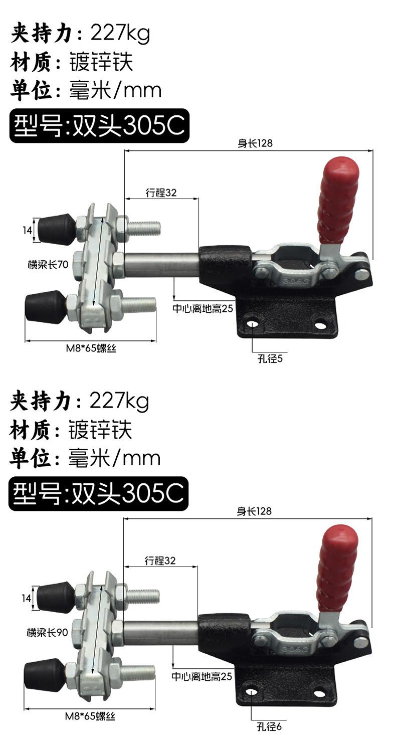 Abrazadera de doble cabezal GH 305C, abrazadera rápida, abrazadera de empuje, dispositivo de empuje, accesorios para mesa de sierra, mandril de empuje y tracción