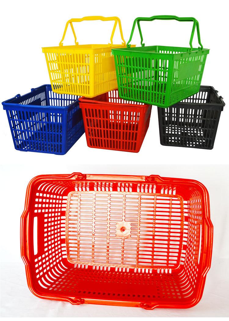 Cesta de plástico para supermercado, cesta de plástico con doble asa, cesta de plástico para frutas, venta directa