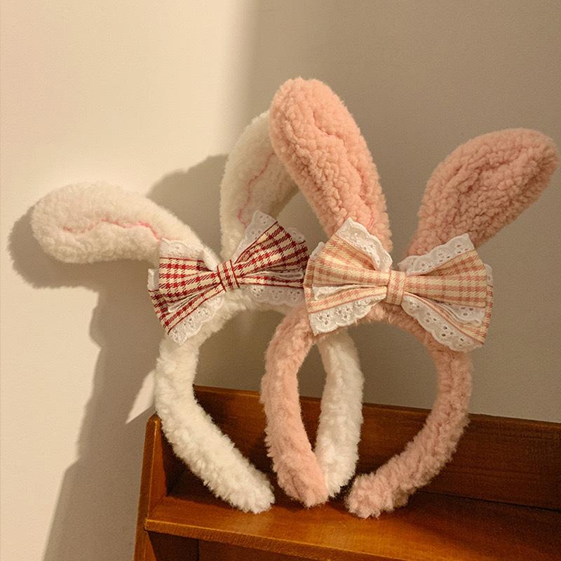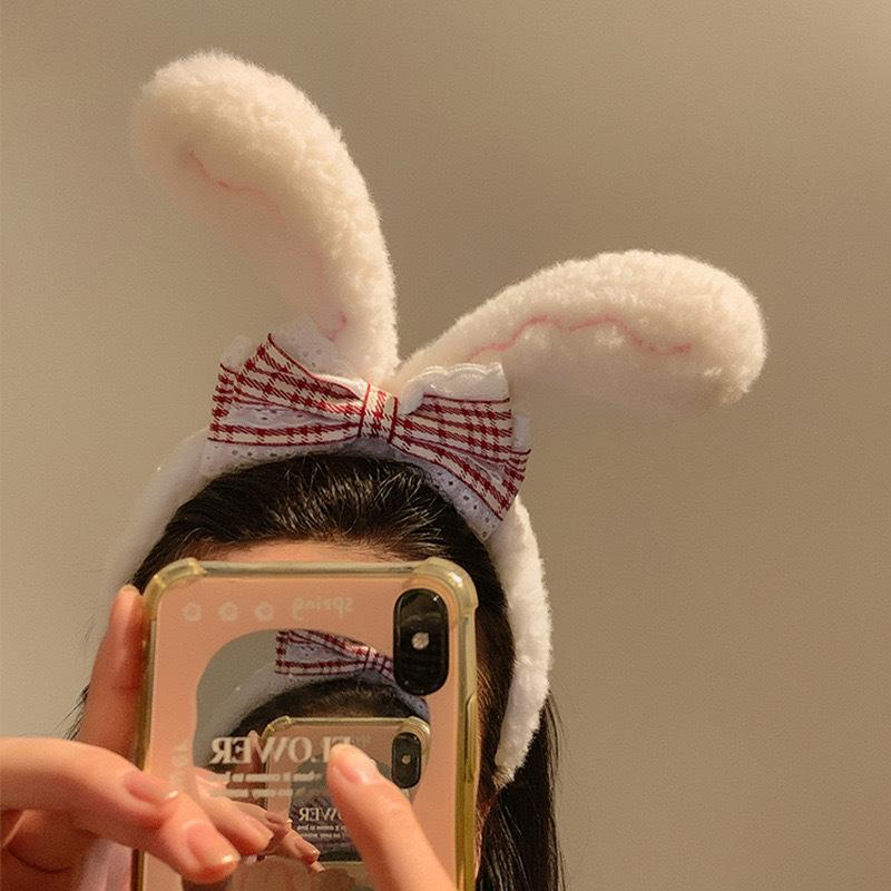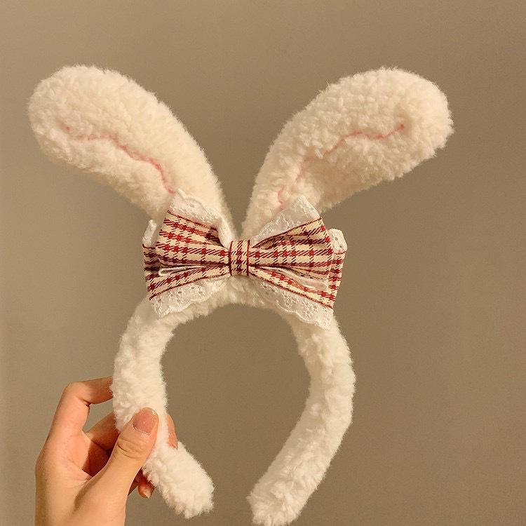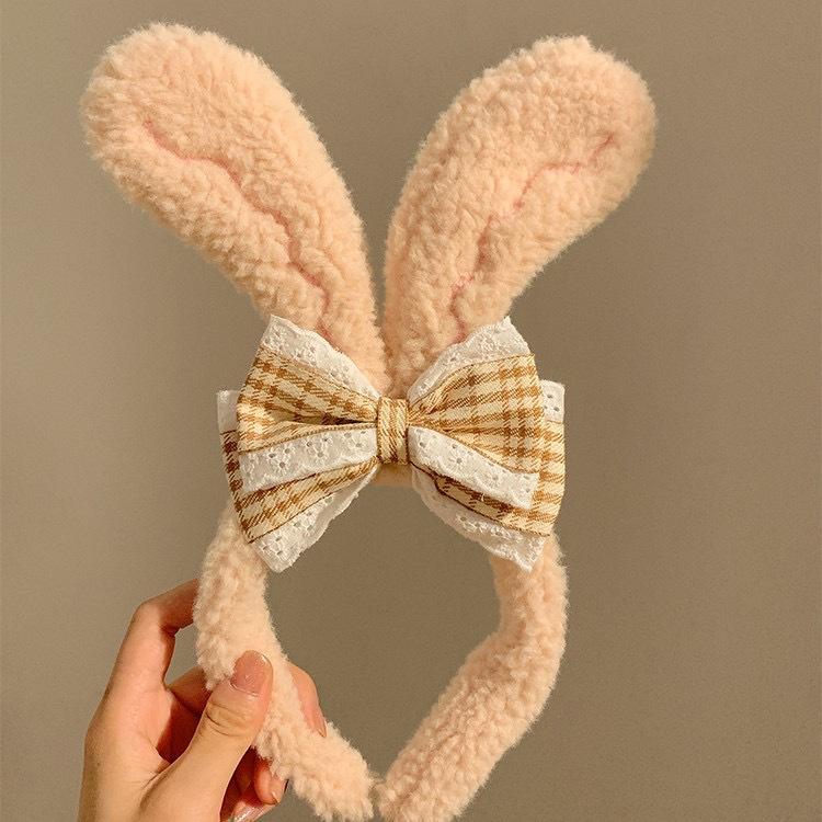 Dibujos Animados Dulce Lazo Orejas de Conejo Banda para el Cabello de Felpa para Mujer Lavar la Cara Aplicar Mascarilla Especial Lindo Banda para la Cabeza de Conejo Invierno