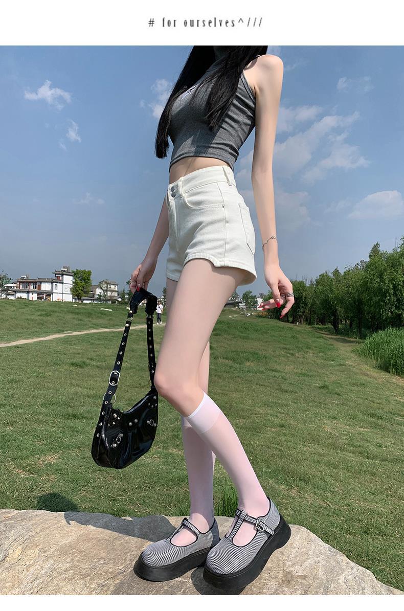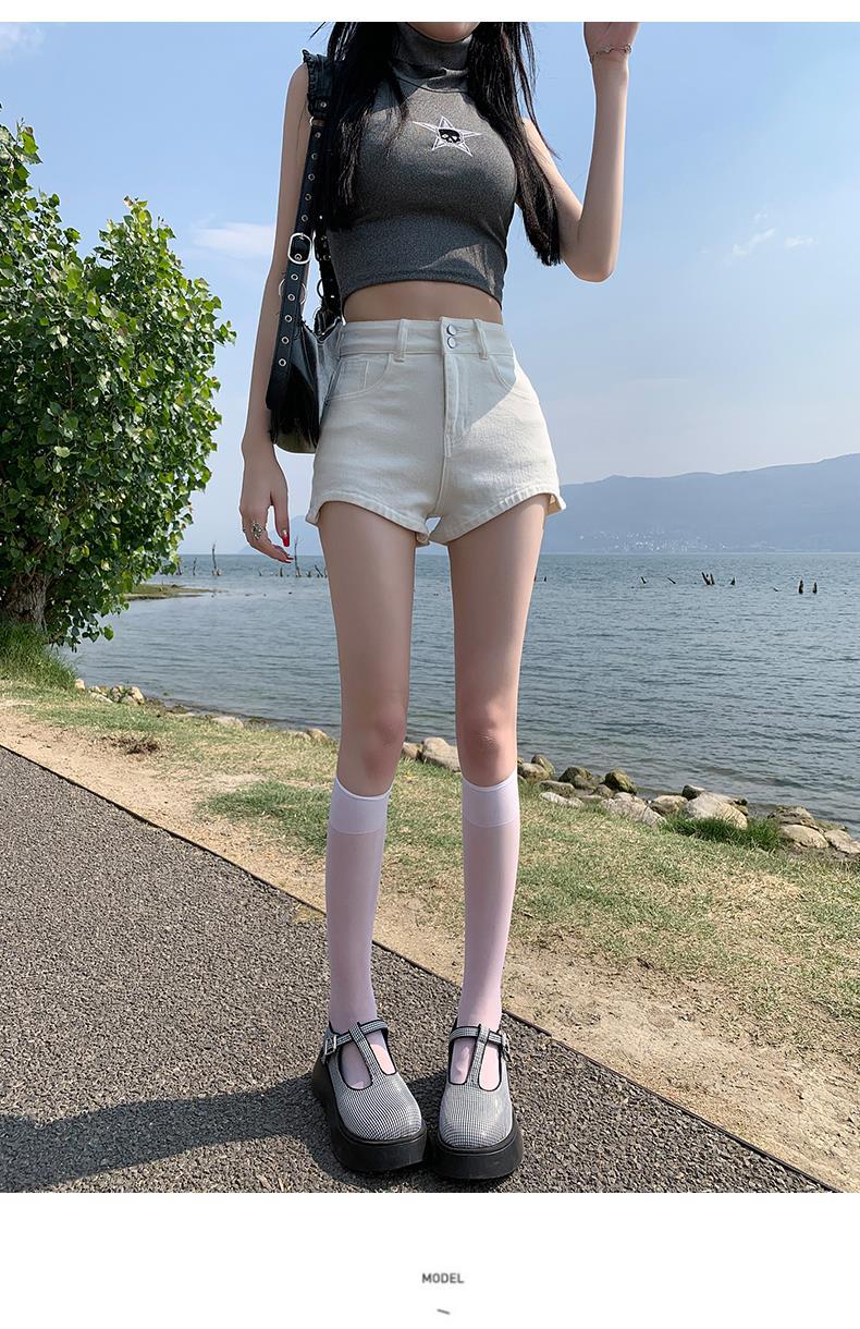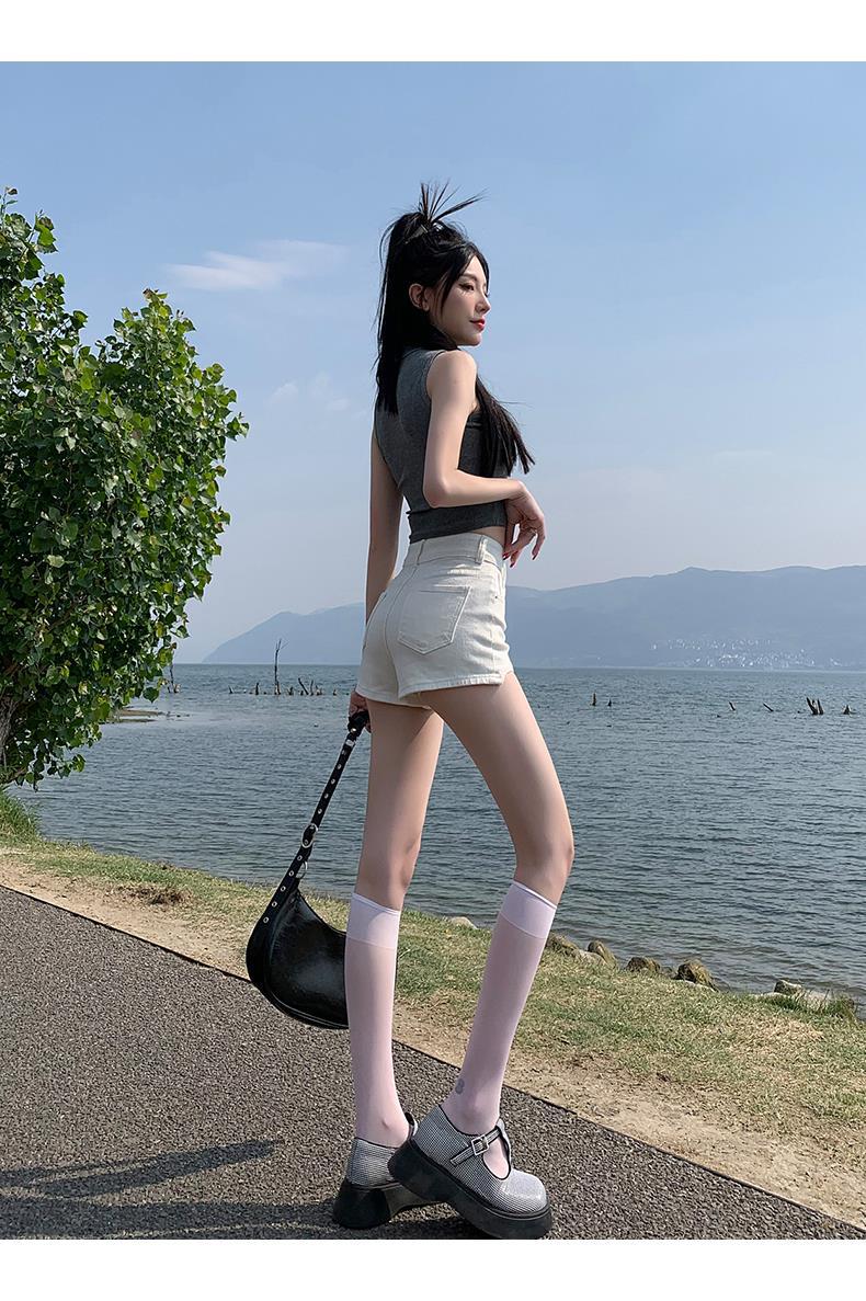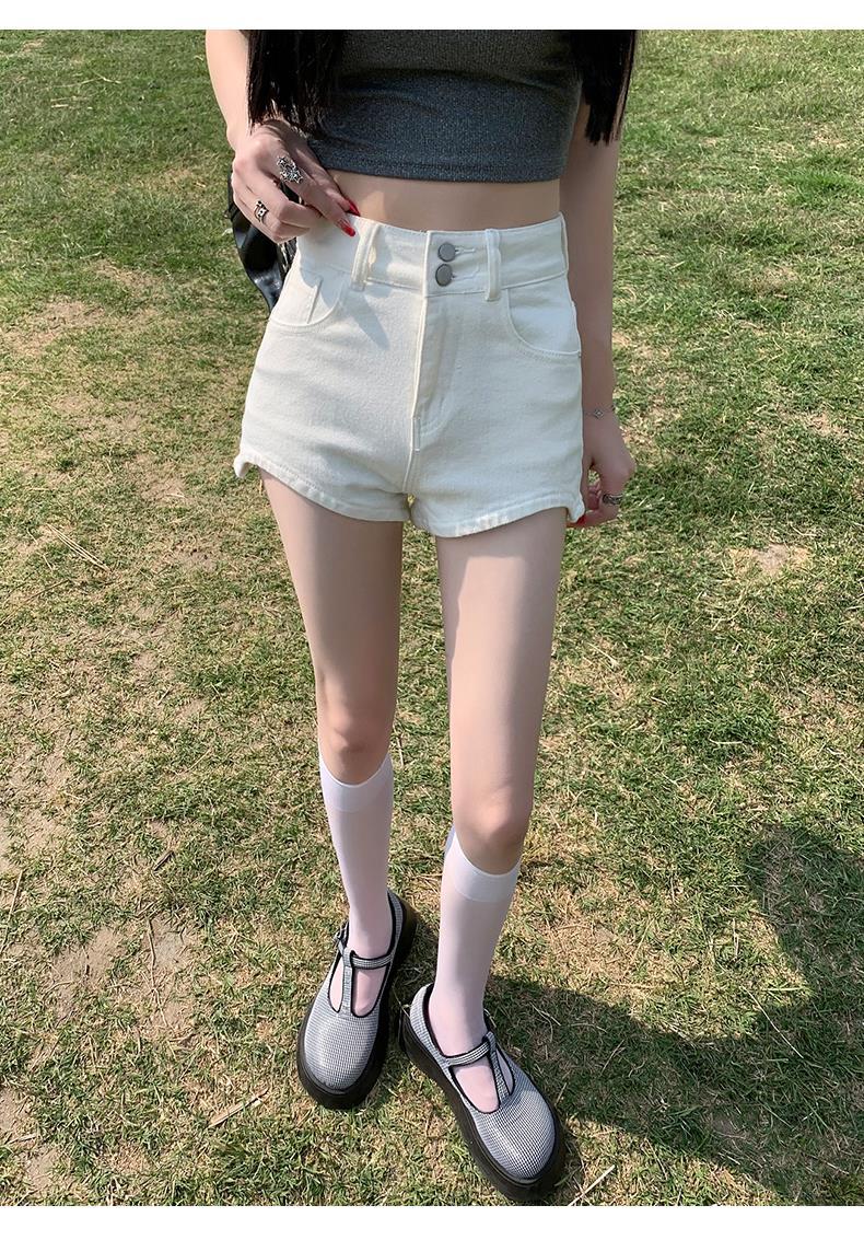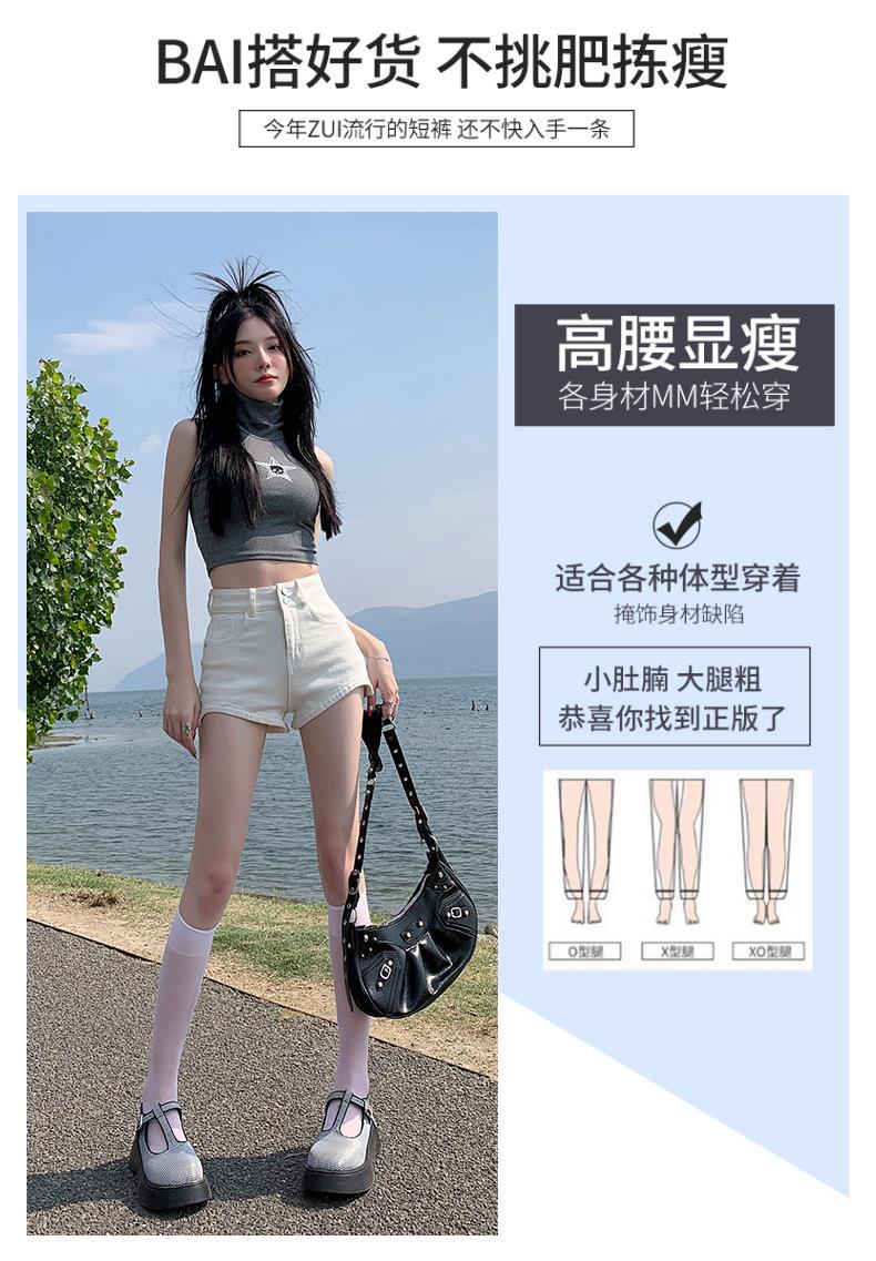 Pantalones cortos vaqueros blancos para mujer, verano 2024, nuevos, cintura alta, adelgazantes, elásticos, ajustados, pantalones cortos sexys.