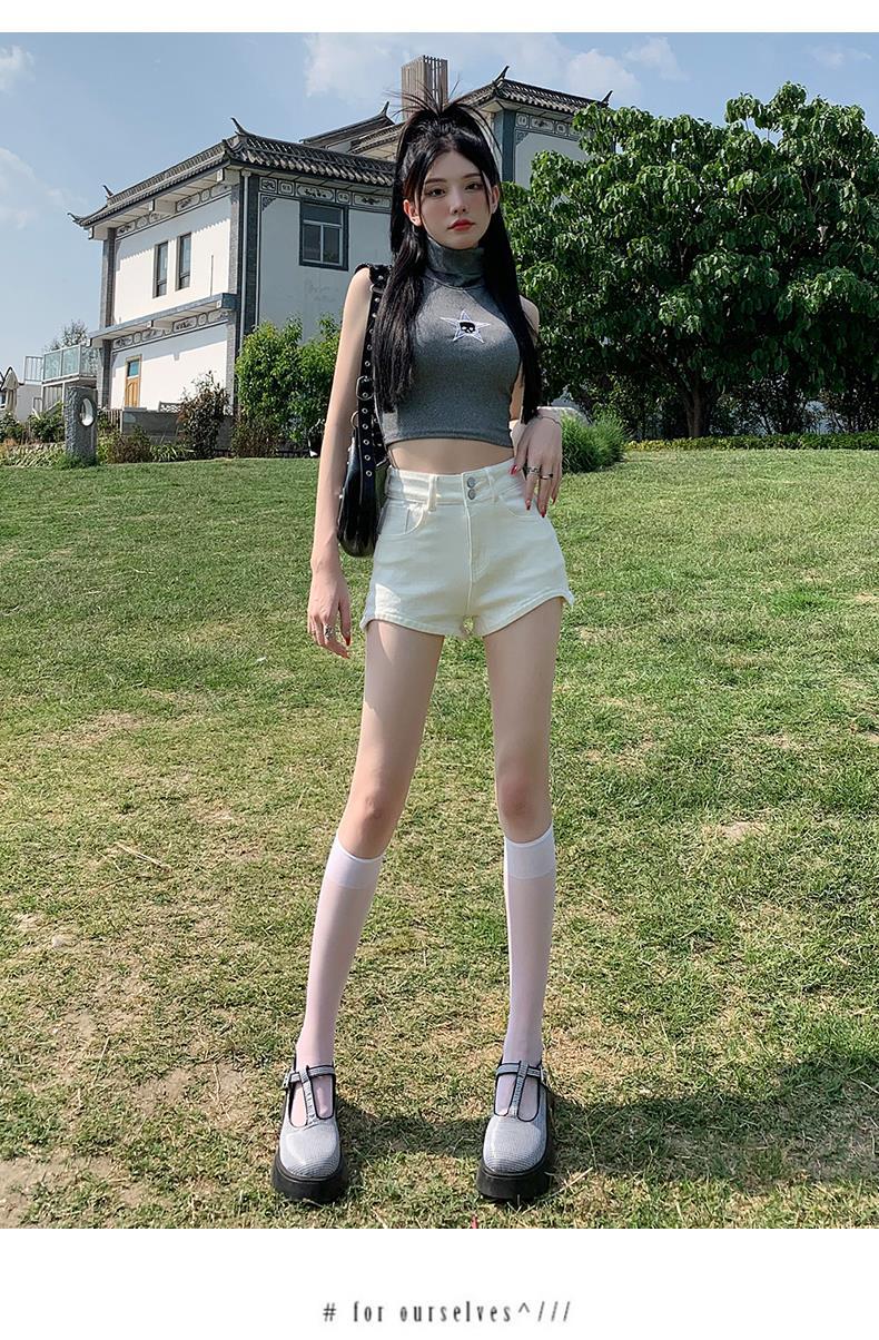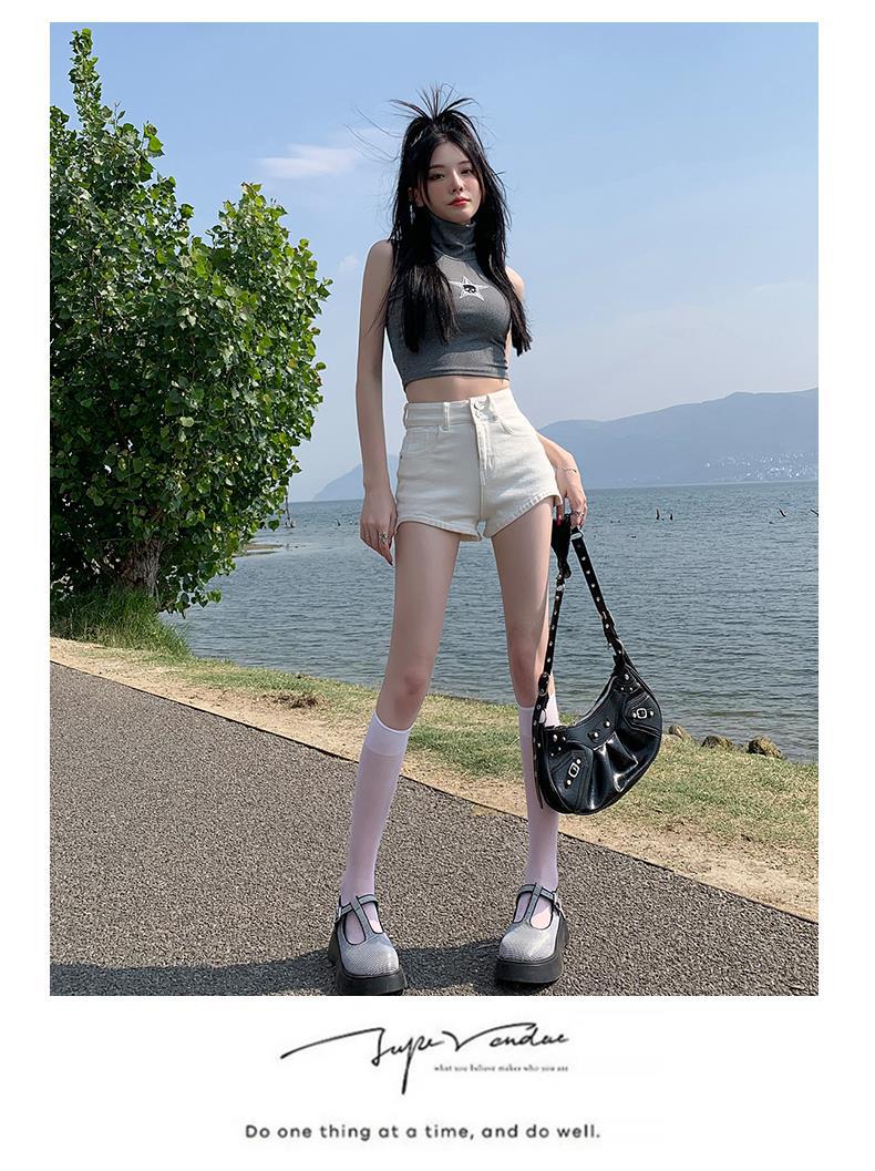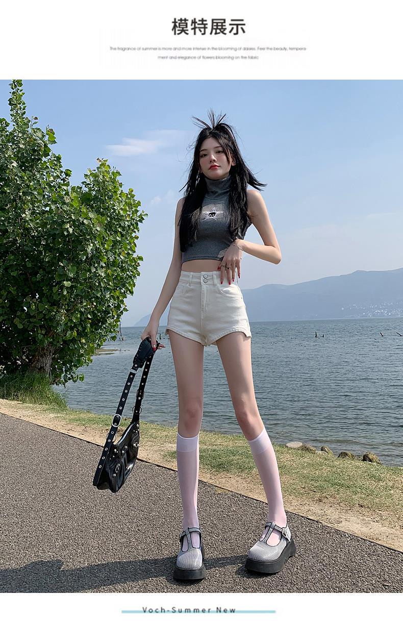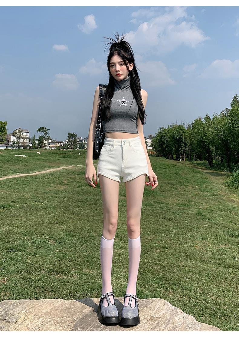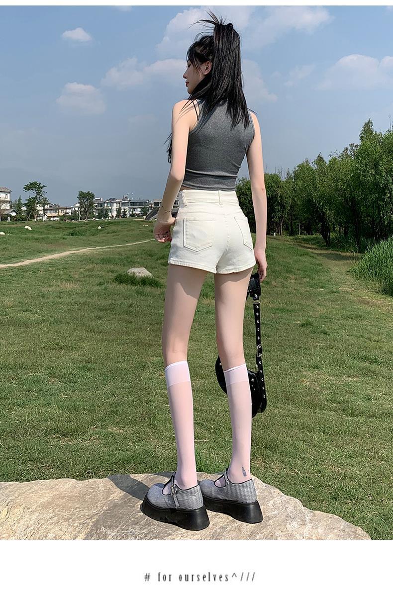 Pantalones cortos vaqueros blancos para mujer, verano 2024, nuevos, cintura alta, adelgazantes, elásticos, ajustados, pantalones cortos sexys.