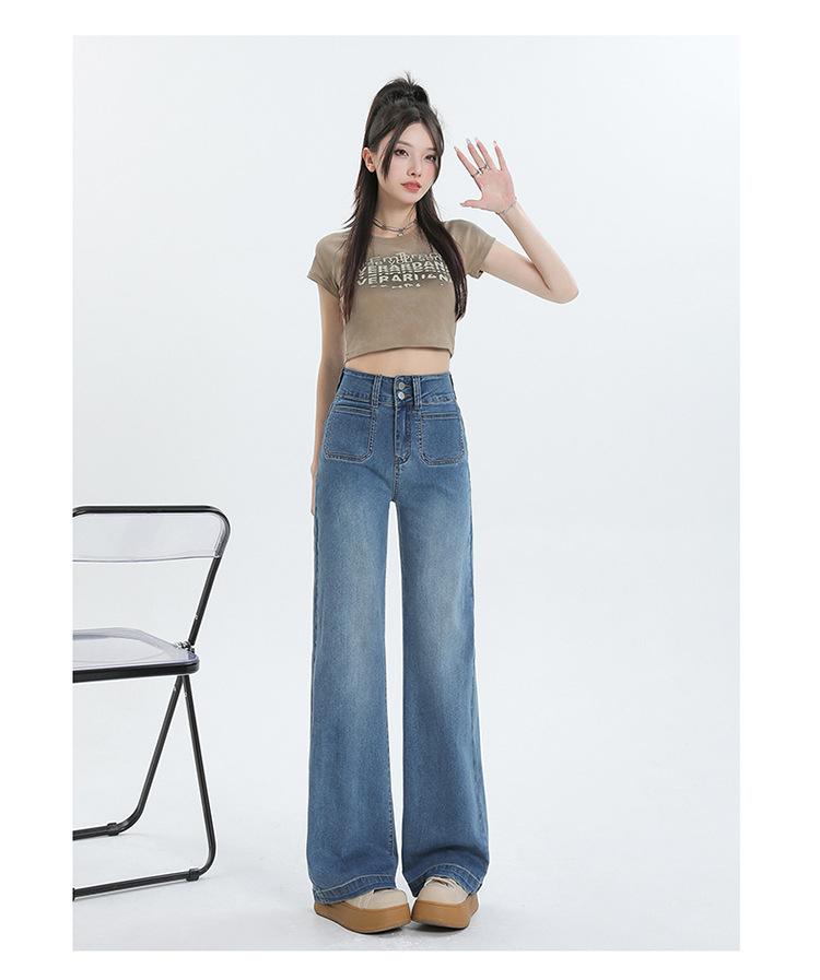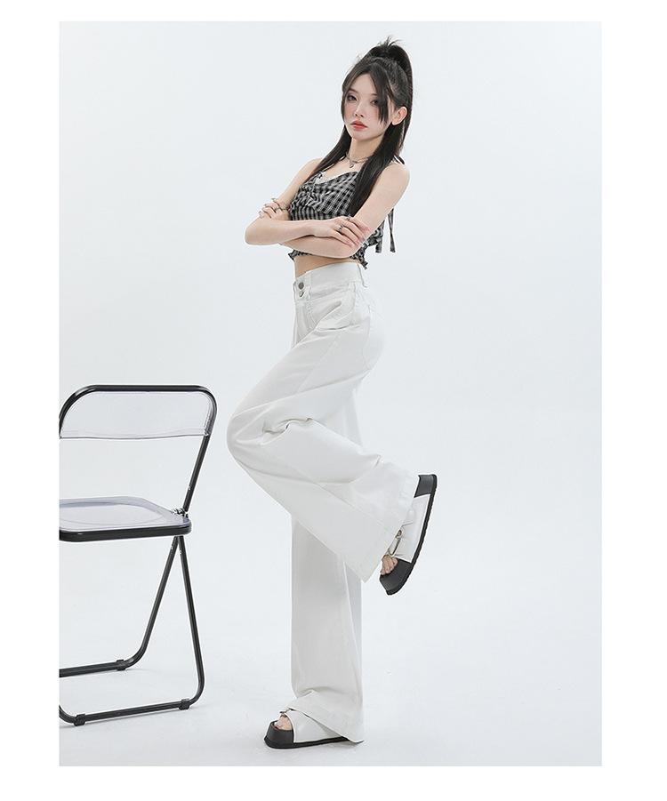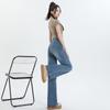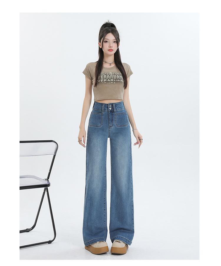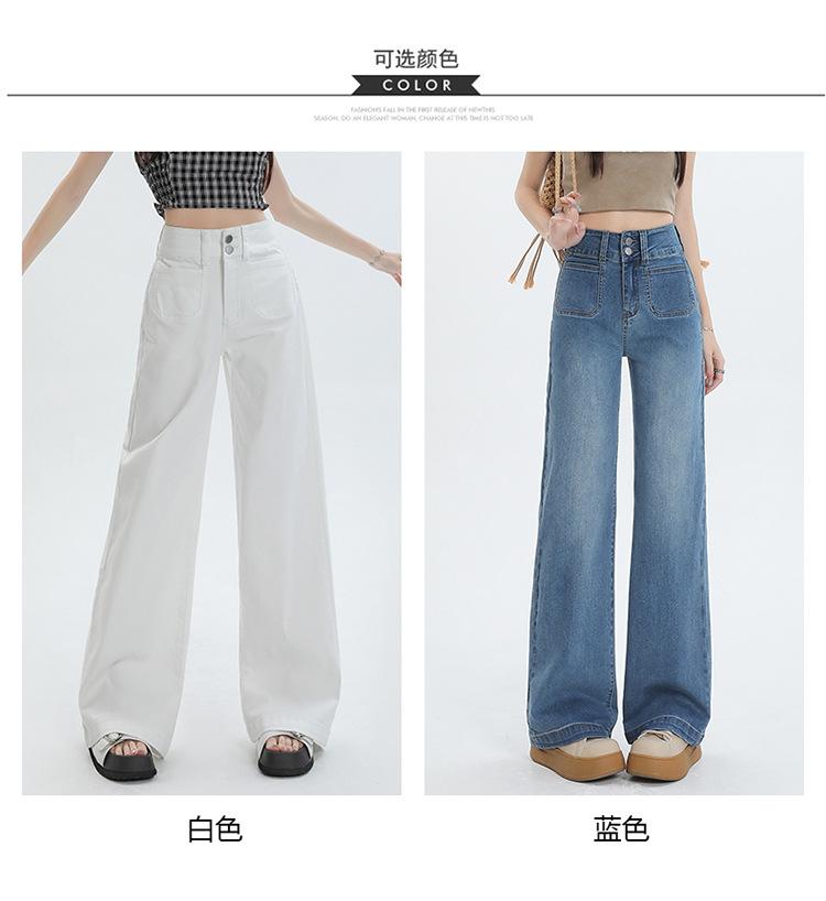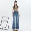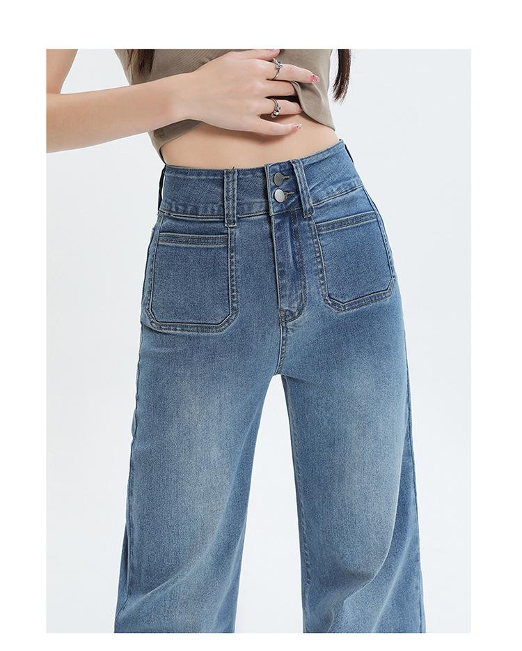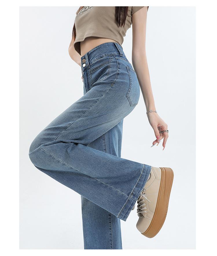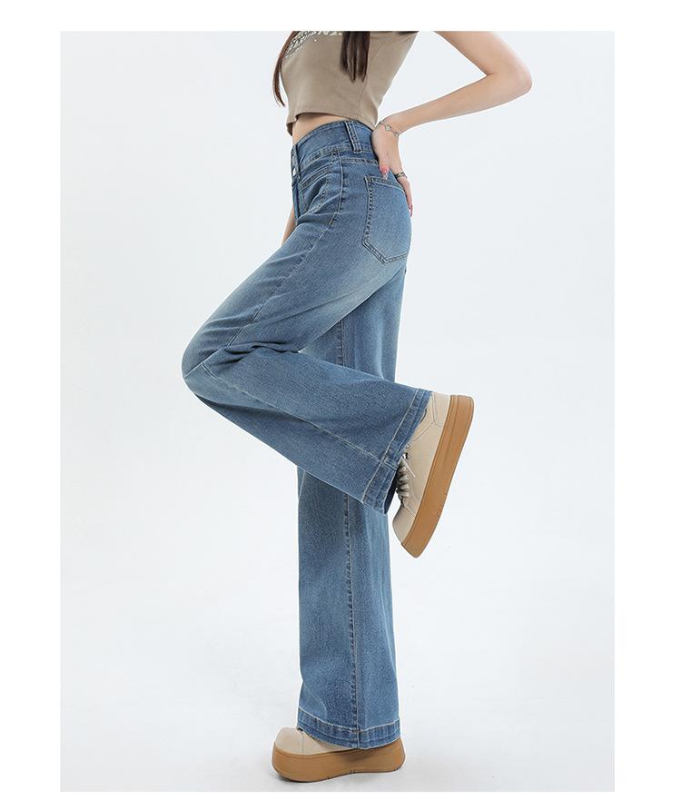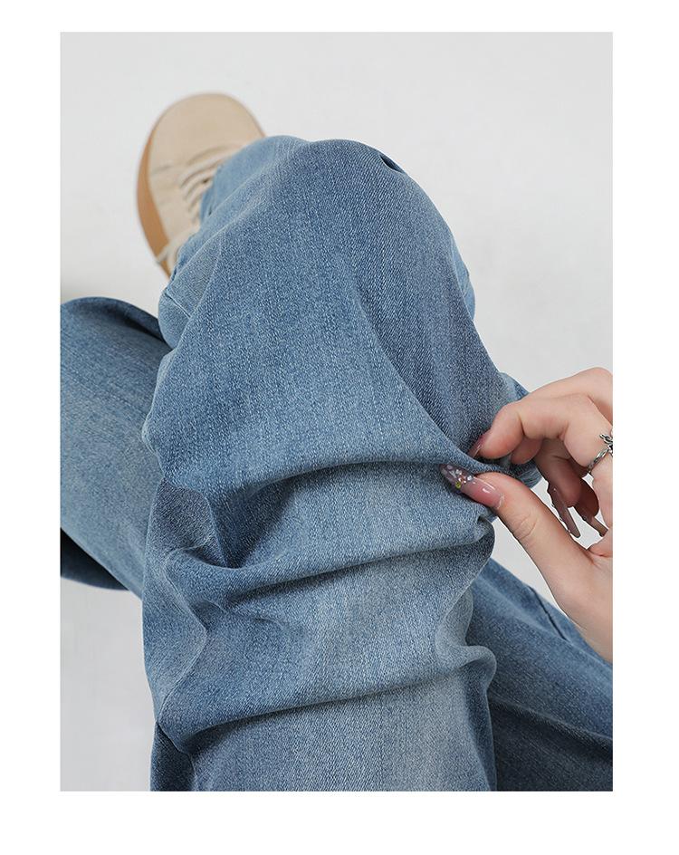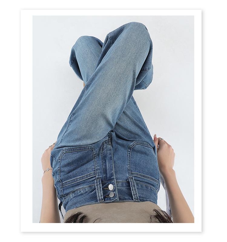 Pantalones vaqueros holgados y elásticos sin piernas para mujer, otoño 2024, nuevos pantalones casuales de cintura alta, rectos y ajustados para mujer