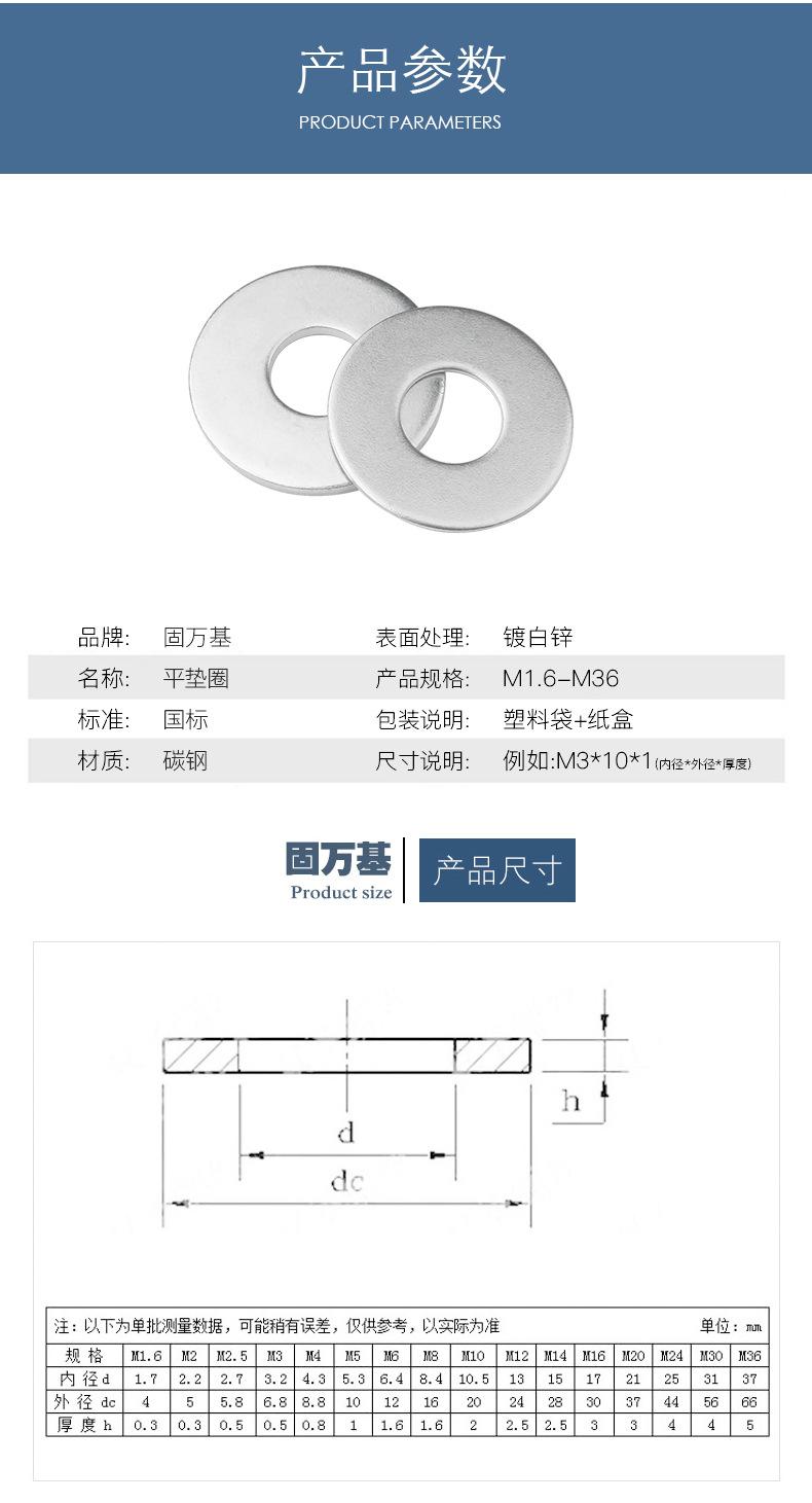 Arandela de junta plana galvanizada de hierro, metal Huashi Meson, junta de tornillo agrandada M3M4M5M6M8M10M12-M30