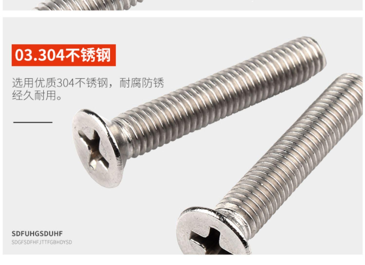 Tornillo de acero inoxidable 304, tornillo de cabeza avellanada Phillips, perno de cabeza plana, tornillo de máquina KM M2M3M4M5M6M8