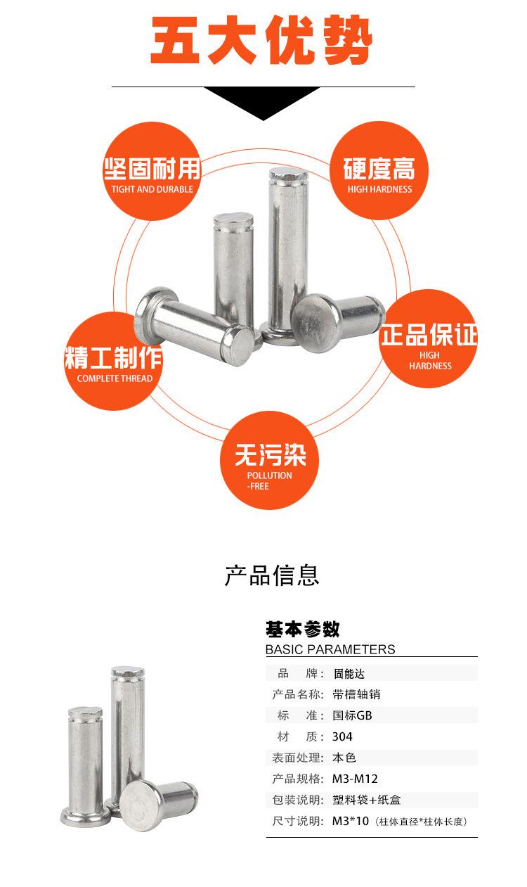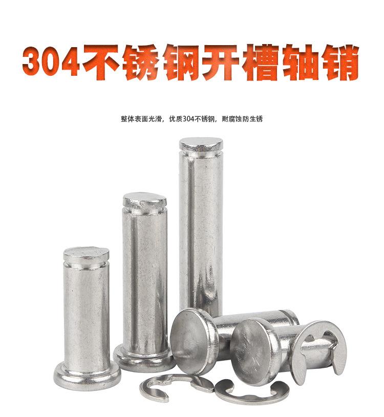 Pasador de acero inoxidable 304, eje de pasador de cabeza plana con orificio, pasador de ubicación, circlip, tornillo de pasador cilíndrico ranurado M3M4M5M6M12