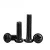 Tornillo de cabeza plana con cruz de zinc negro M2M2.5 para chasis de computadora, tornillo pequeño de cabeza redonda, tornillo de máquina negro M3 M4
