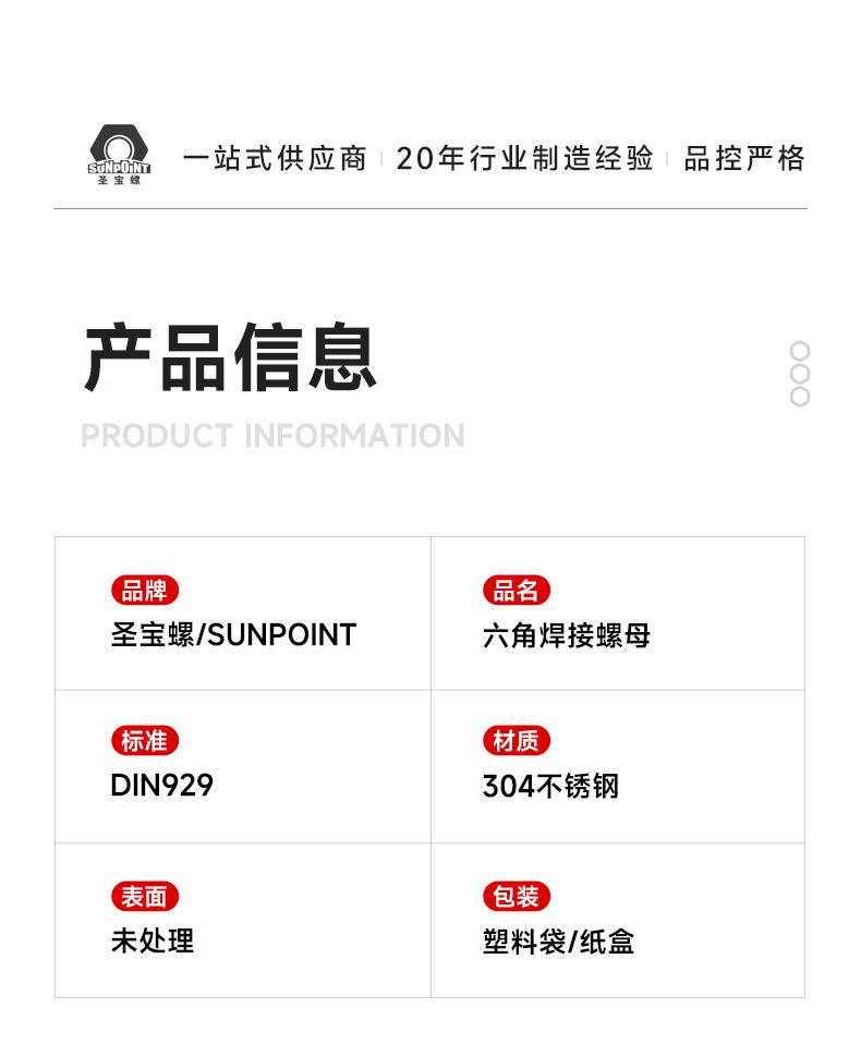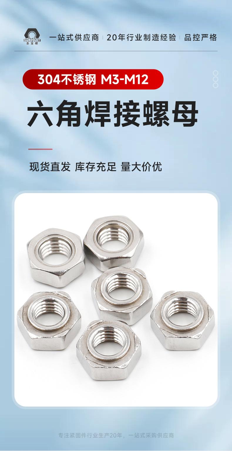 Tuerca de soldadura hexagonal de acero inoxidable 304 DIN929, tuerca de soldadura por puntos, tuerca de soldadura a presión, tuerca de soldadura por contacto