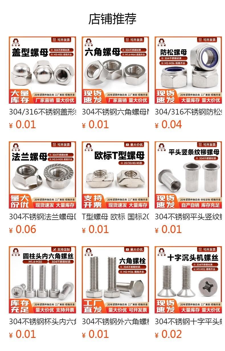 M3 (with solder joints), M4 (with solder joints), M5 (with solder joints), M6 (with solder joints), M8 (with s...