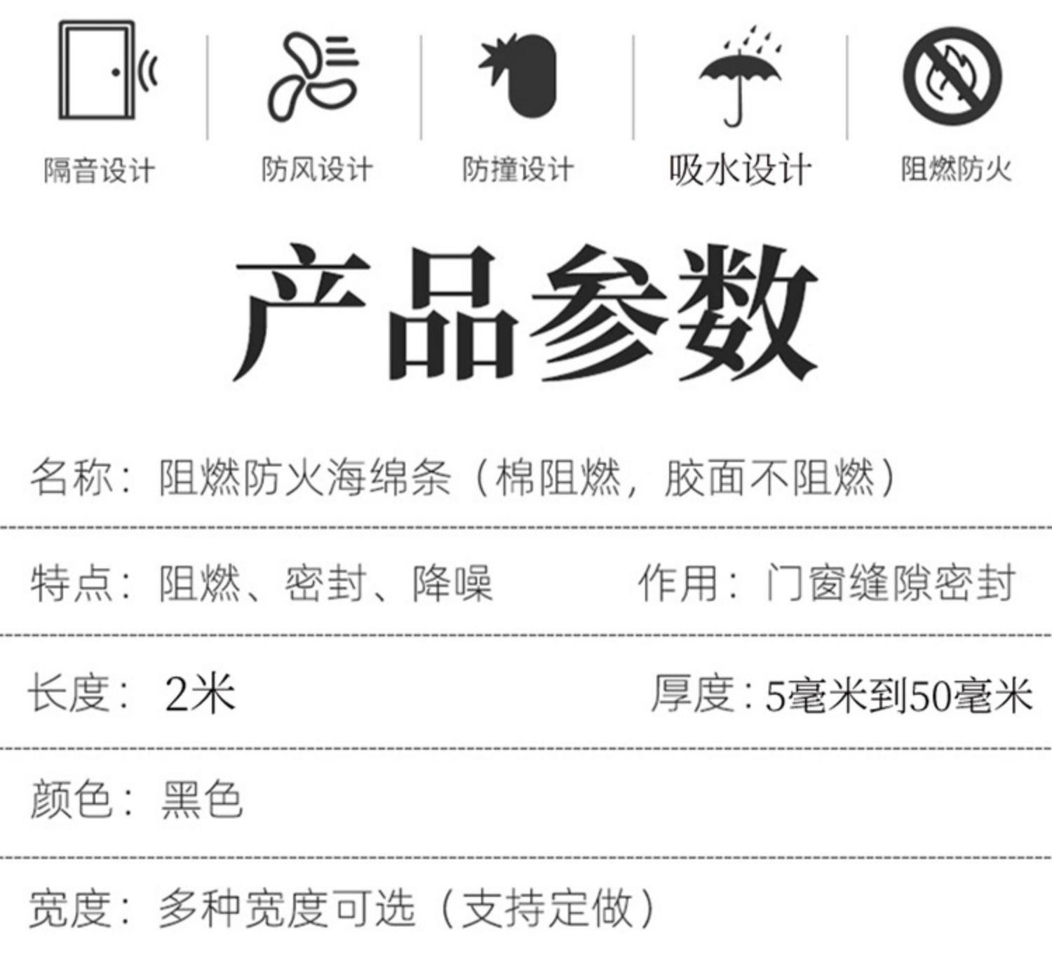 Tira adhesiva de calafateo de esponja ignífuga para ventanas de un solo lado, a prueba de fugas para huecos de puertas y ventanas, aislamiento contra el viento, parte inferior de puerta, tira de sellado ignífuga autoadhesiva