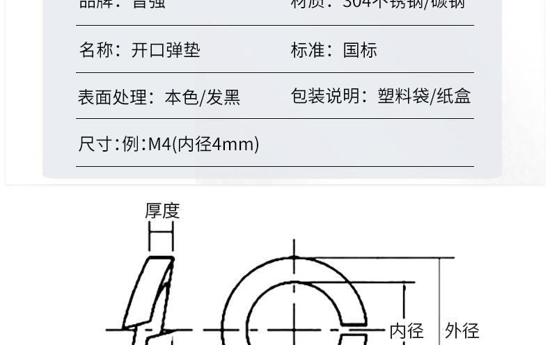 Arandela elástica de acero inoxidable 304/316, arandela elástica abierta de 201 mm de grosor, redonda, mesón M1.6-M30