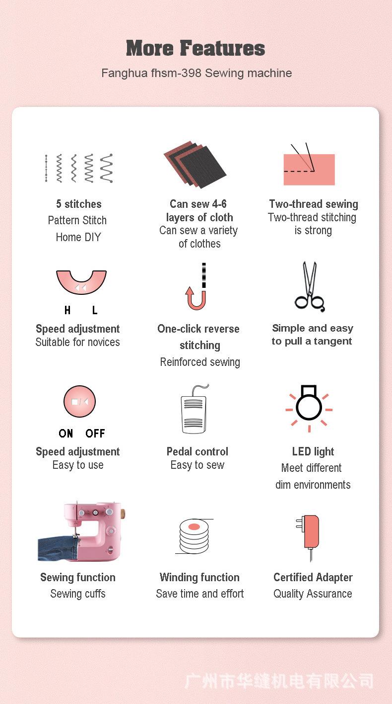 Guangzhou Huafeng Mechanical and Electrical Co., Ltd. produce principalmente máquinas de coser eléctricas domésticas de la marca Fanghua, con diversos modelos, todos con la marca registrada exclusiva de "Fanghua". Por favor, reconozca la marca registrada.201 202 228 318 398 505G 505A 508 618 700 702 705 y así sucesivamente. Tenemos una amplia variedad de productos. Bienvenidos amigos de casa y del extranjero a venir para consulta.