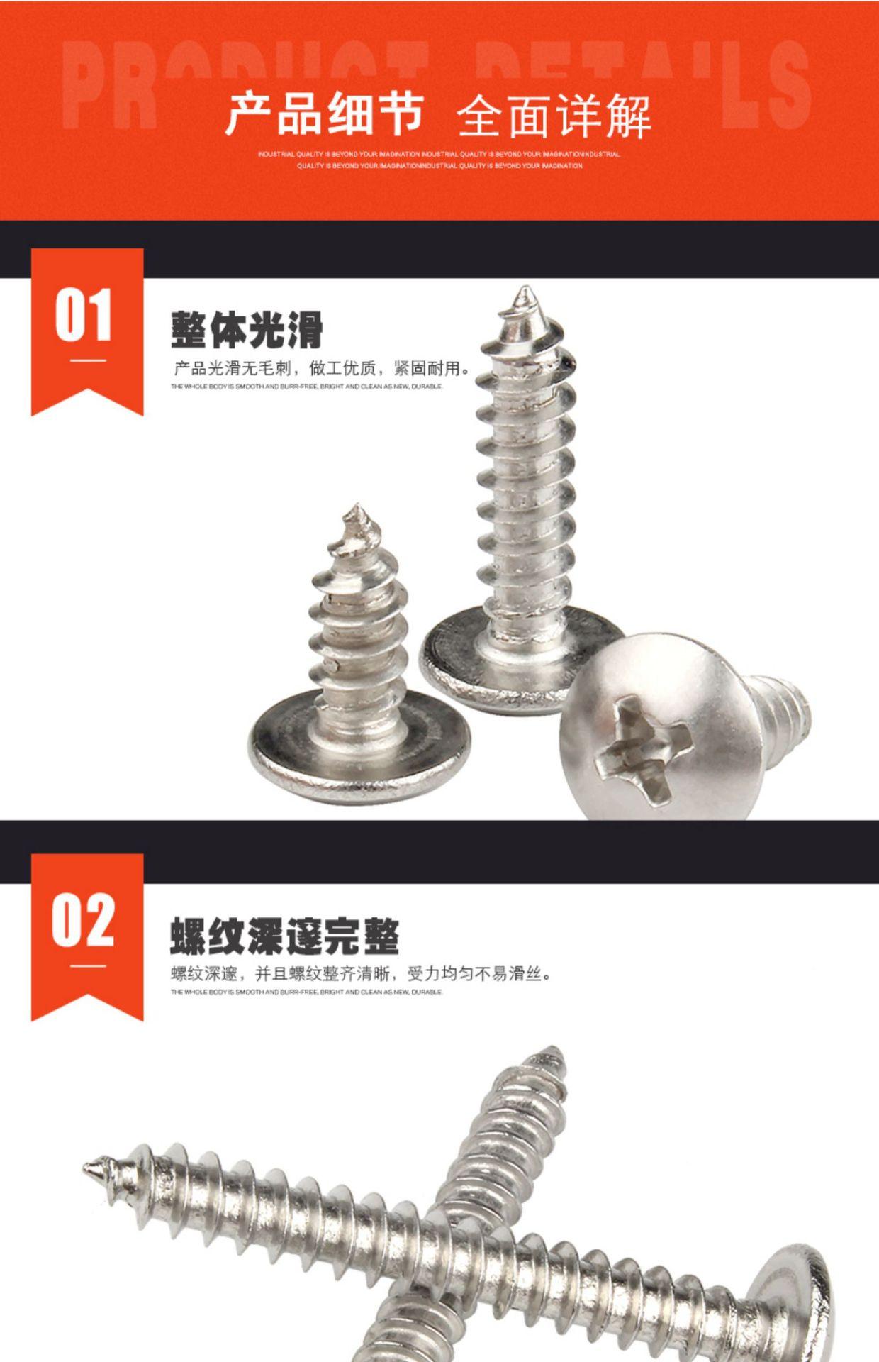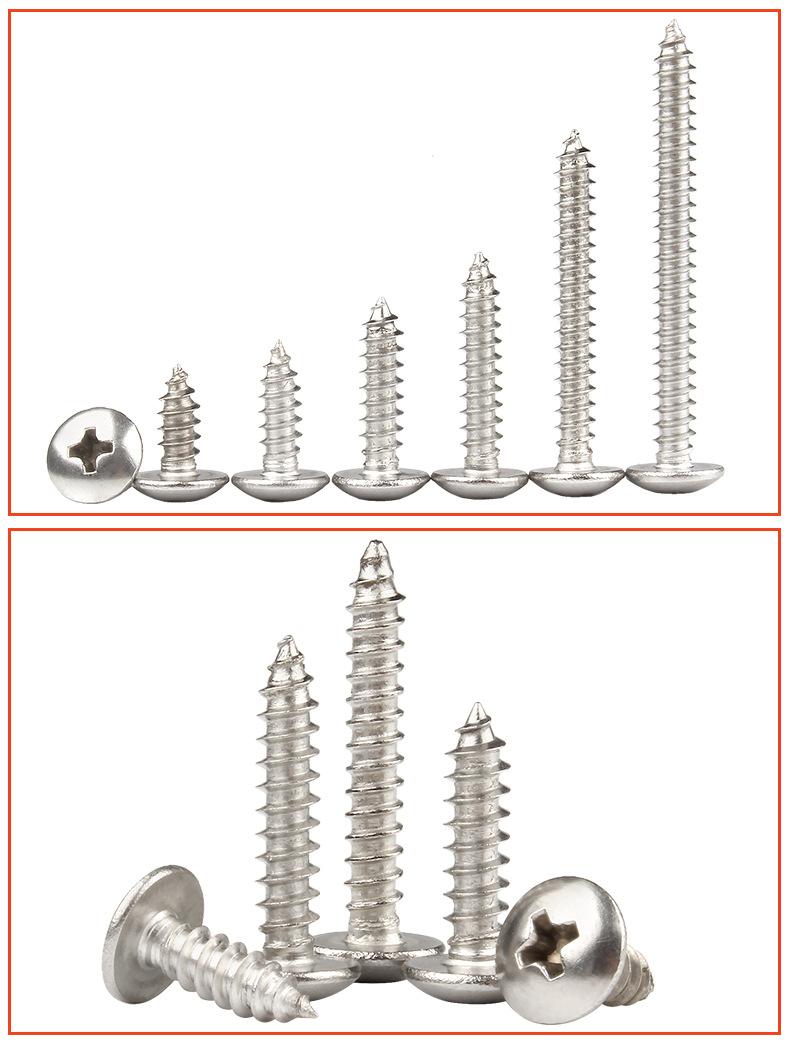 Tornillo autorroscante de cabeza plana grande con cruz niquelada, tornillo de cabeza de hongo TA, M3/M3.5/M4M5