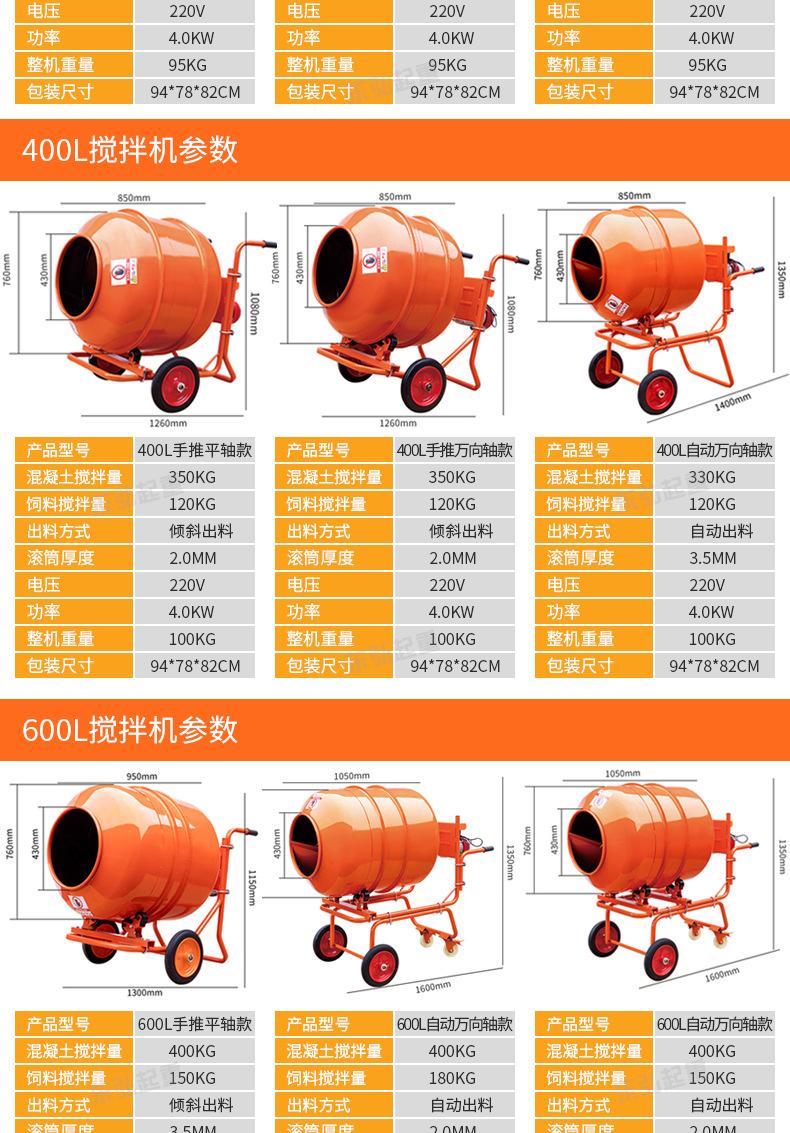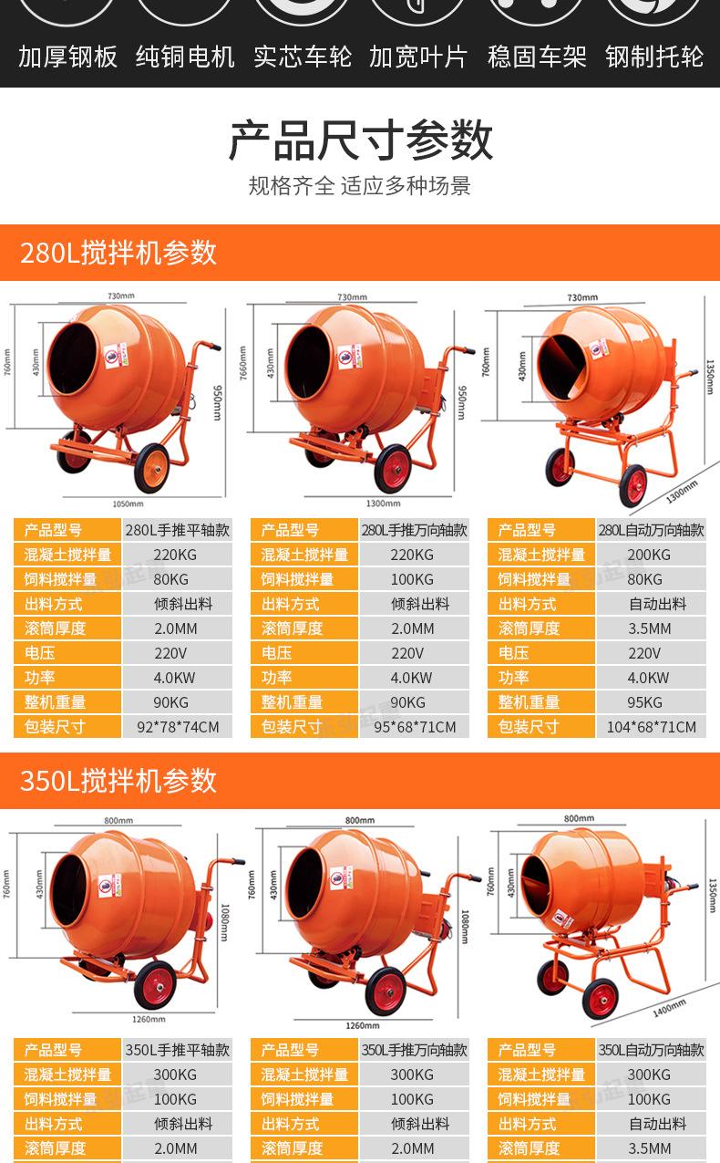 Mezcladora de concreto para construcción doméstica, mezcladora de mortero de cemento para sitios pequeños, mezcladora de empuje manual con rodillo de alimentación, tanque de mezcla