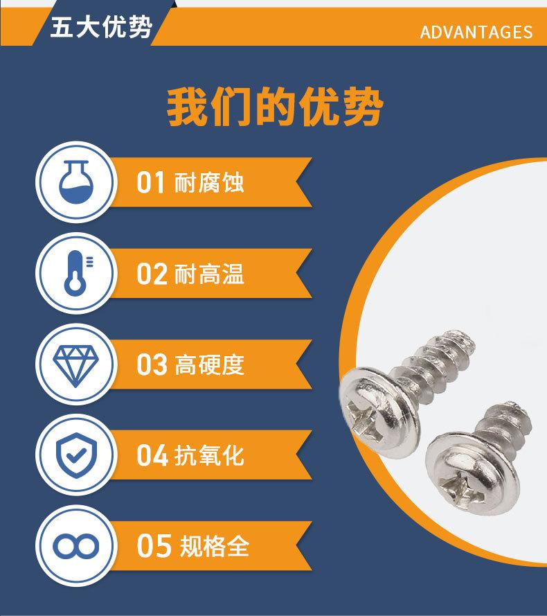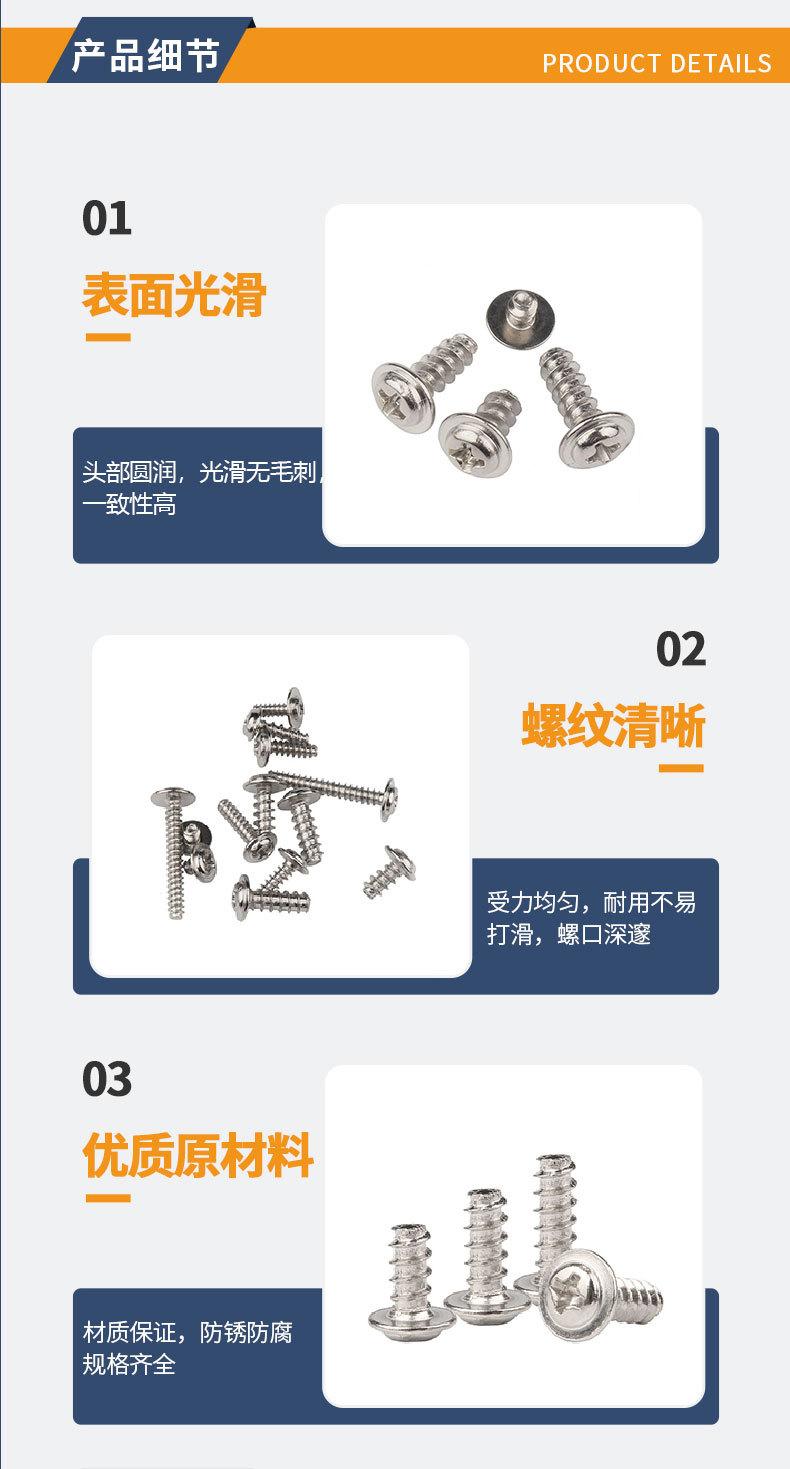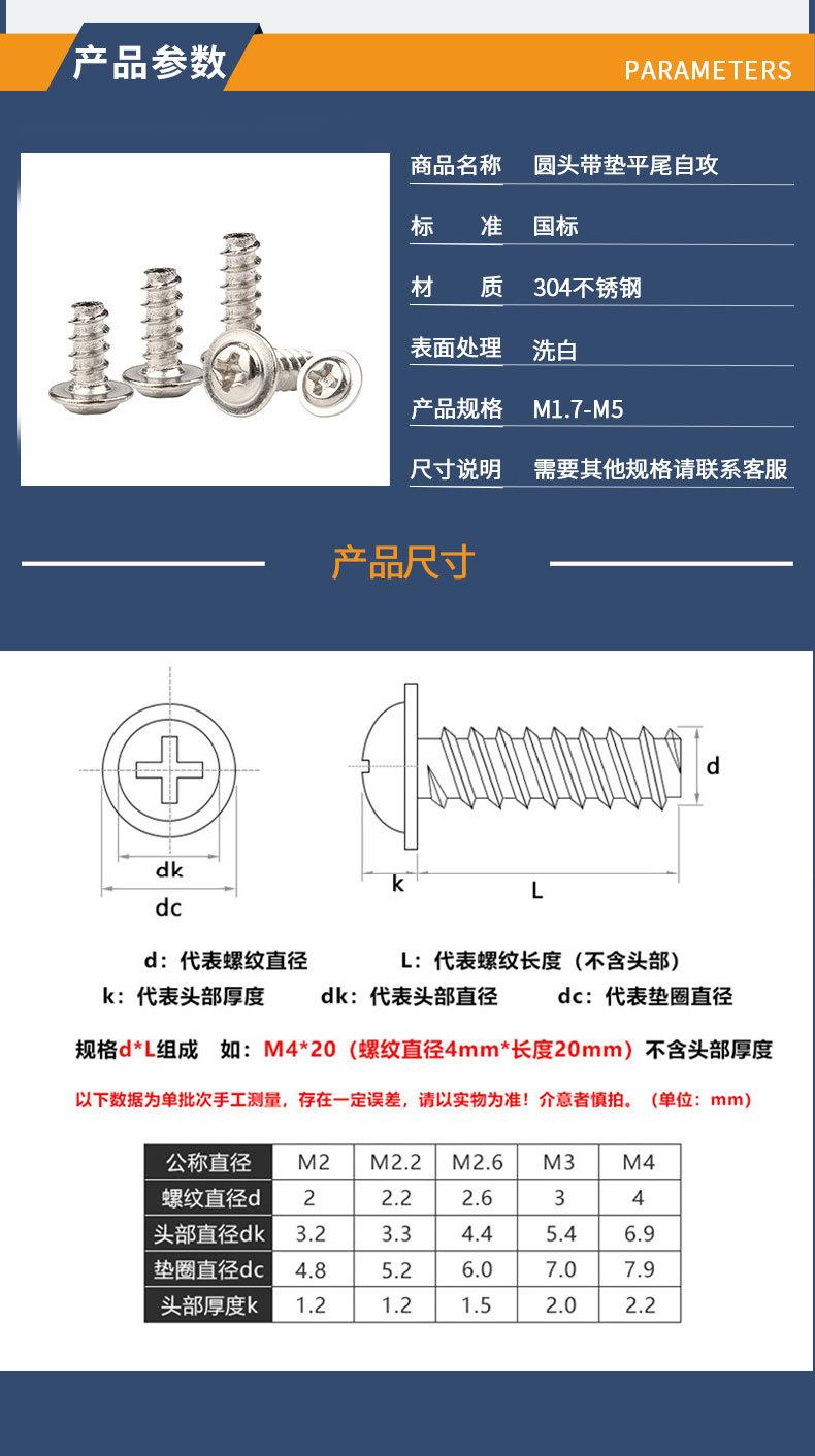 Tornillo de mesón de cabeza redonda de acero inoxidable 304, tornillo de cola plana con cabeza de disco cruzado PWB, cabeza redonda con junta, tornillo M1.7M5