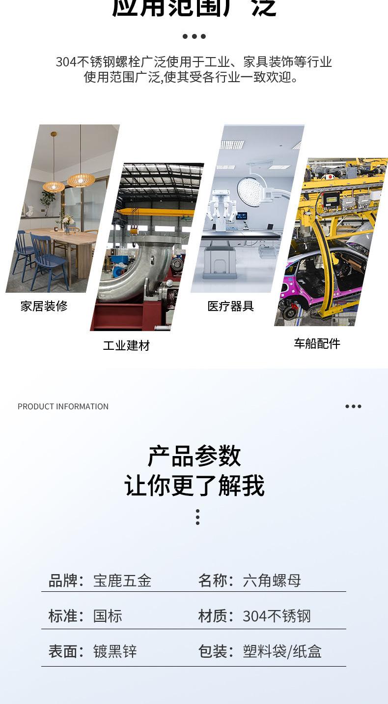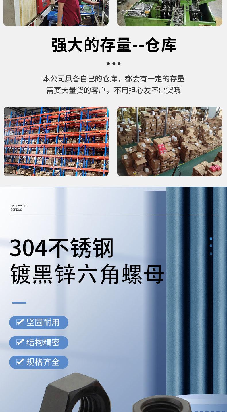 Tuerca hexagonal de acero inoxidable 304, zincada en negro, M2M3M4M5M6M8M10