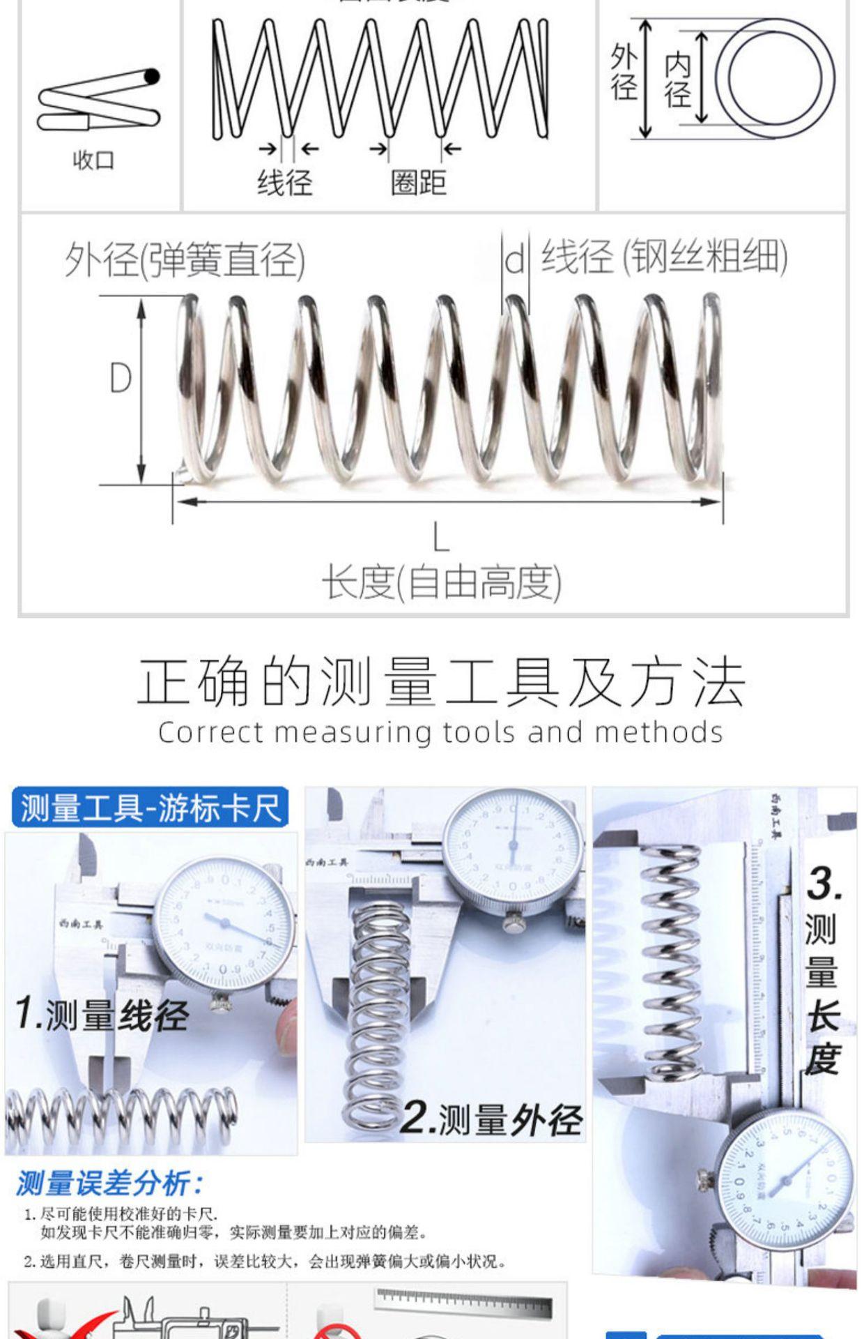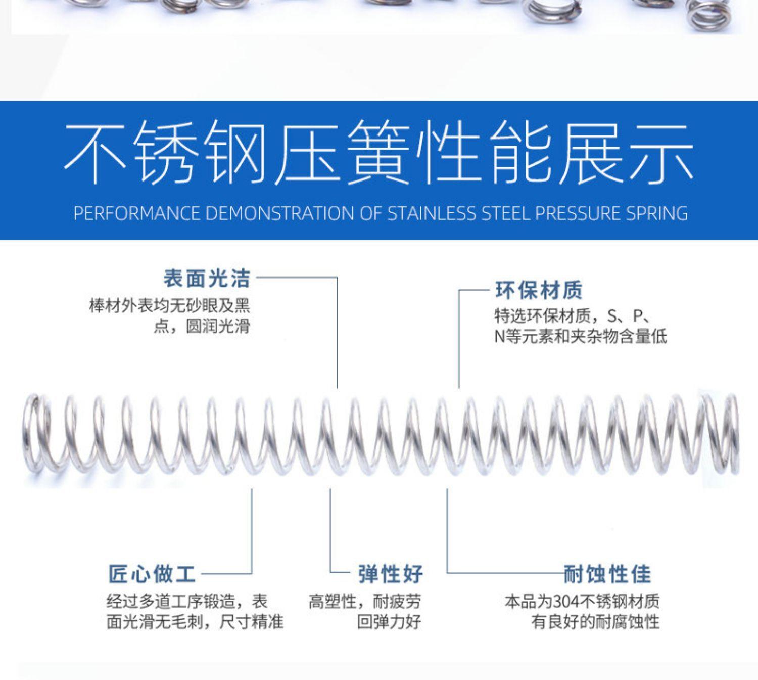 Resorte de compresión de acero inoxidable 304 de 0,3 x 4, tamaño del resorte de retorno del resorte de compresión, soporte de resorte fijo