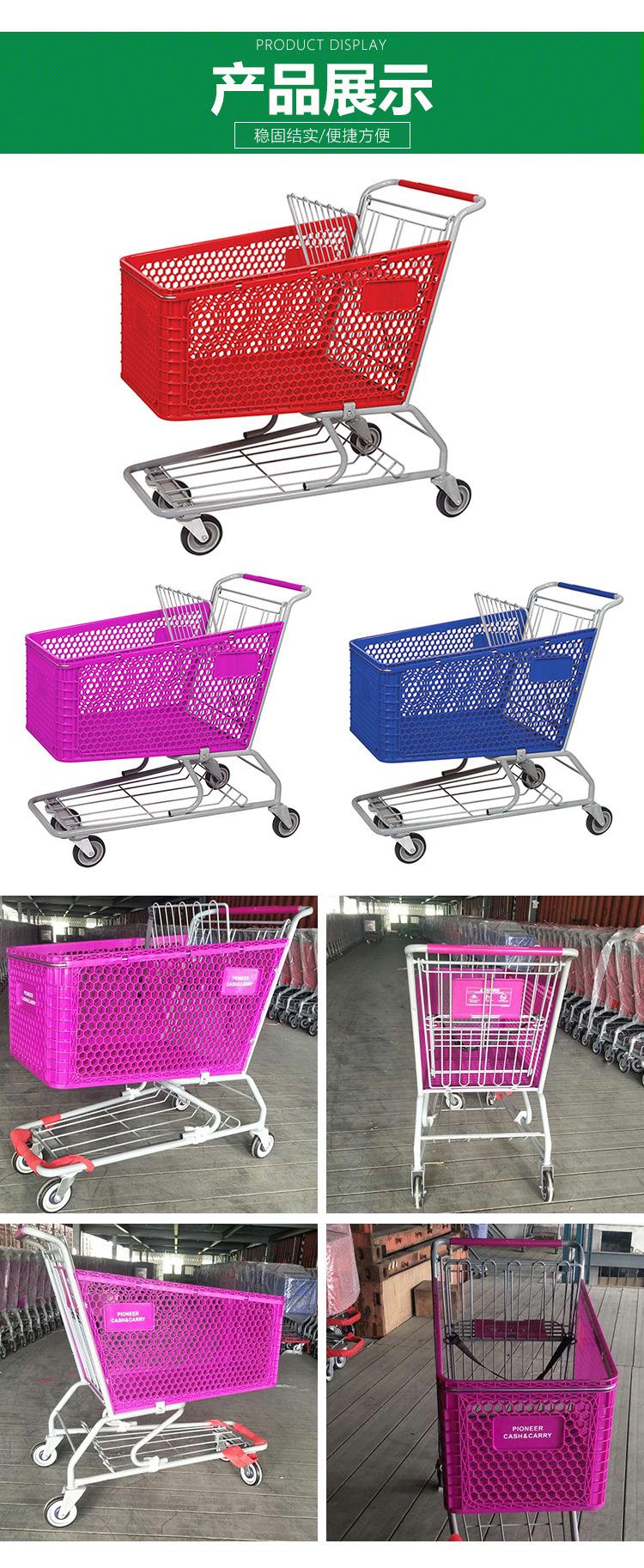 Suministro 165L nuevo carrito de compras de plástico carrito de compras semi plástico con color carrito de compras