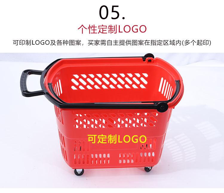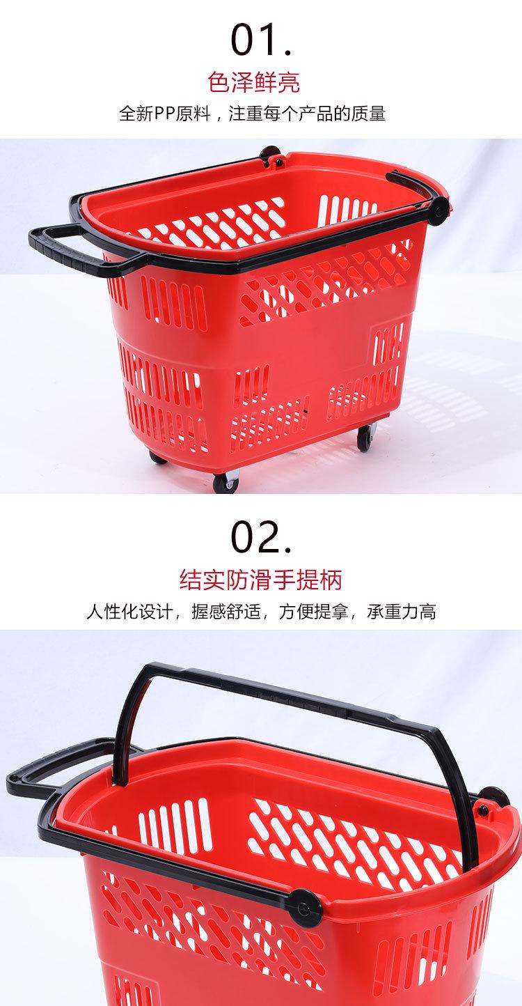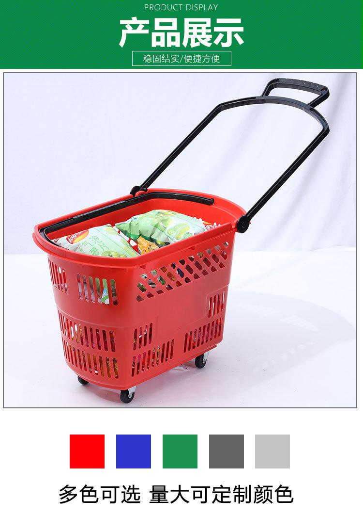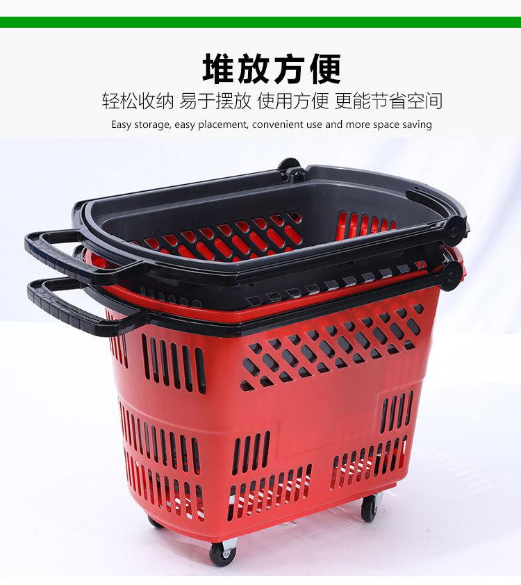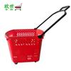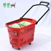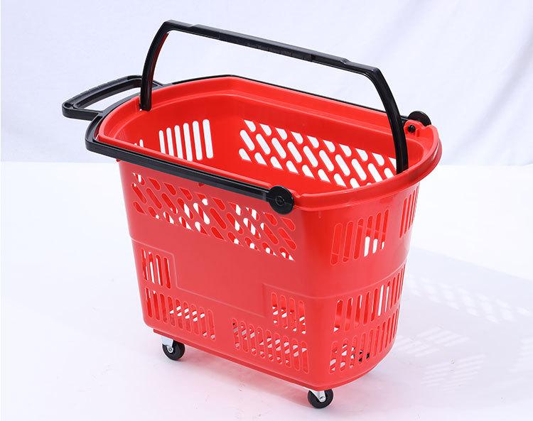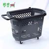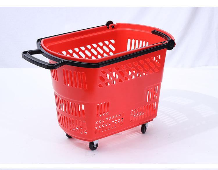 Cesta de compras de plástico amarilla para supermercado, carrito de cuatro ruedas, 45L, venta al por mayor