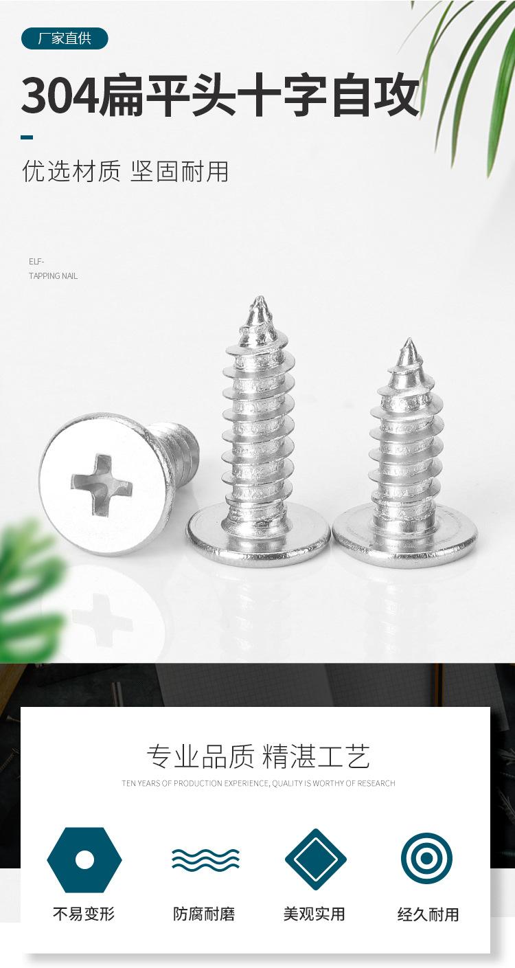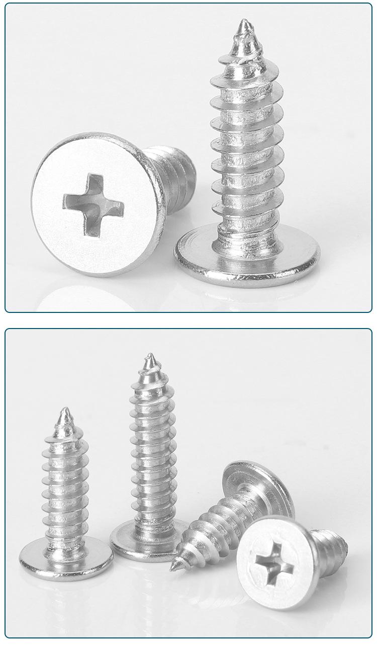 Tornillo autorroscante de cabeza plana CA de acero inoxidable 304, cruz, cabeza plana grande, cabeza fina, cola puntiaguda, tornillo autorroscante M6