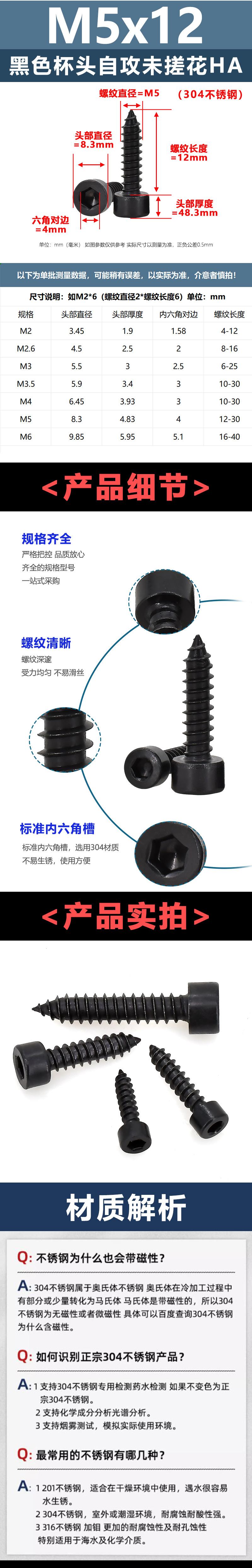 HA2 * 4(304 black cup head self-tapping without rubbing flowers)(50), HA2 * 5(304 black cup head self-tapping ...