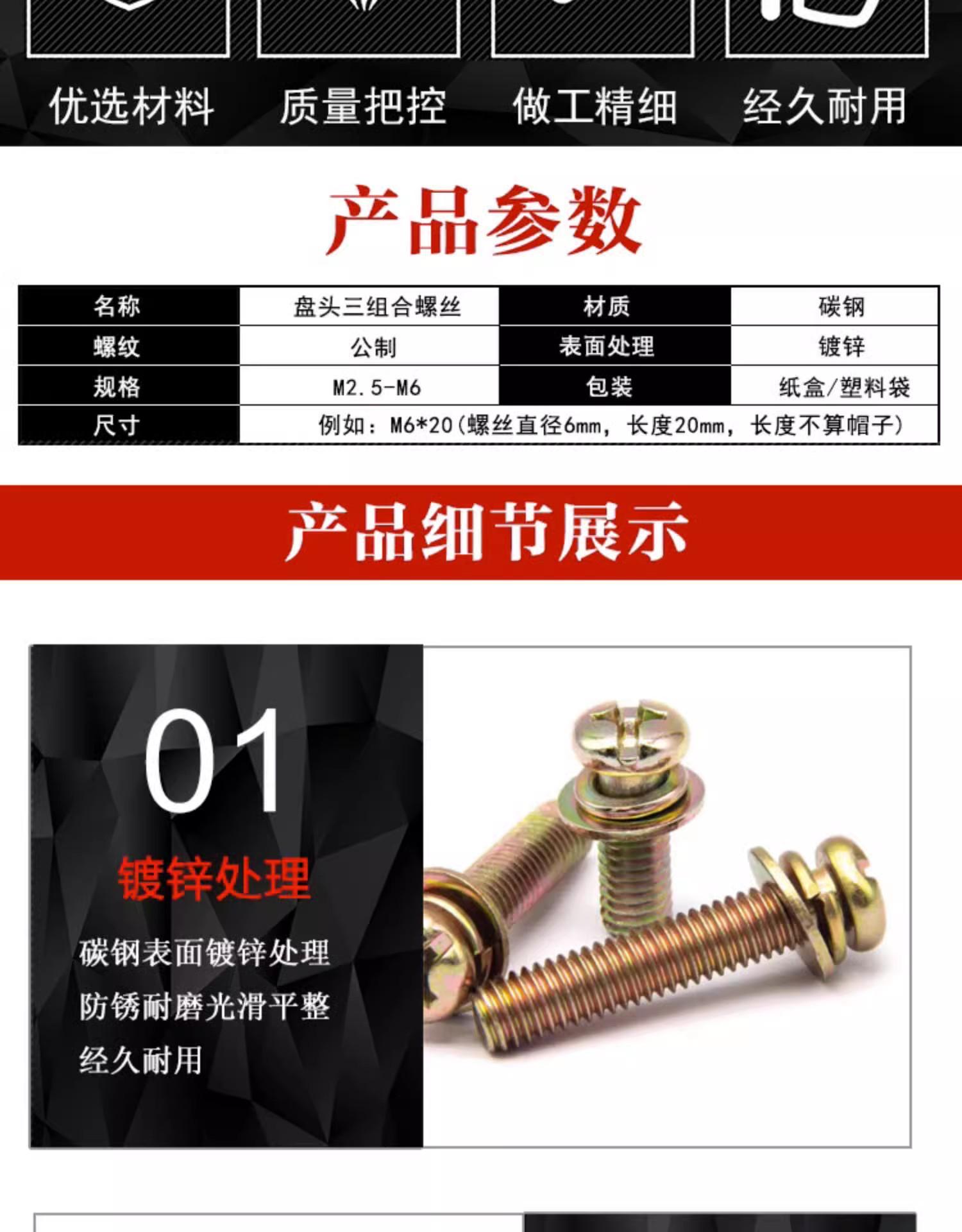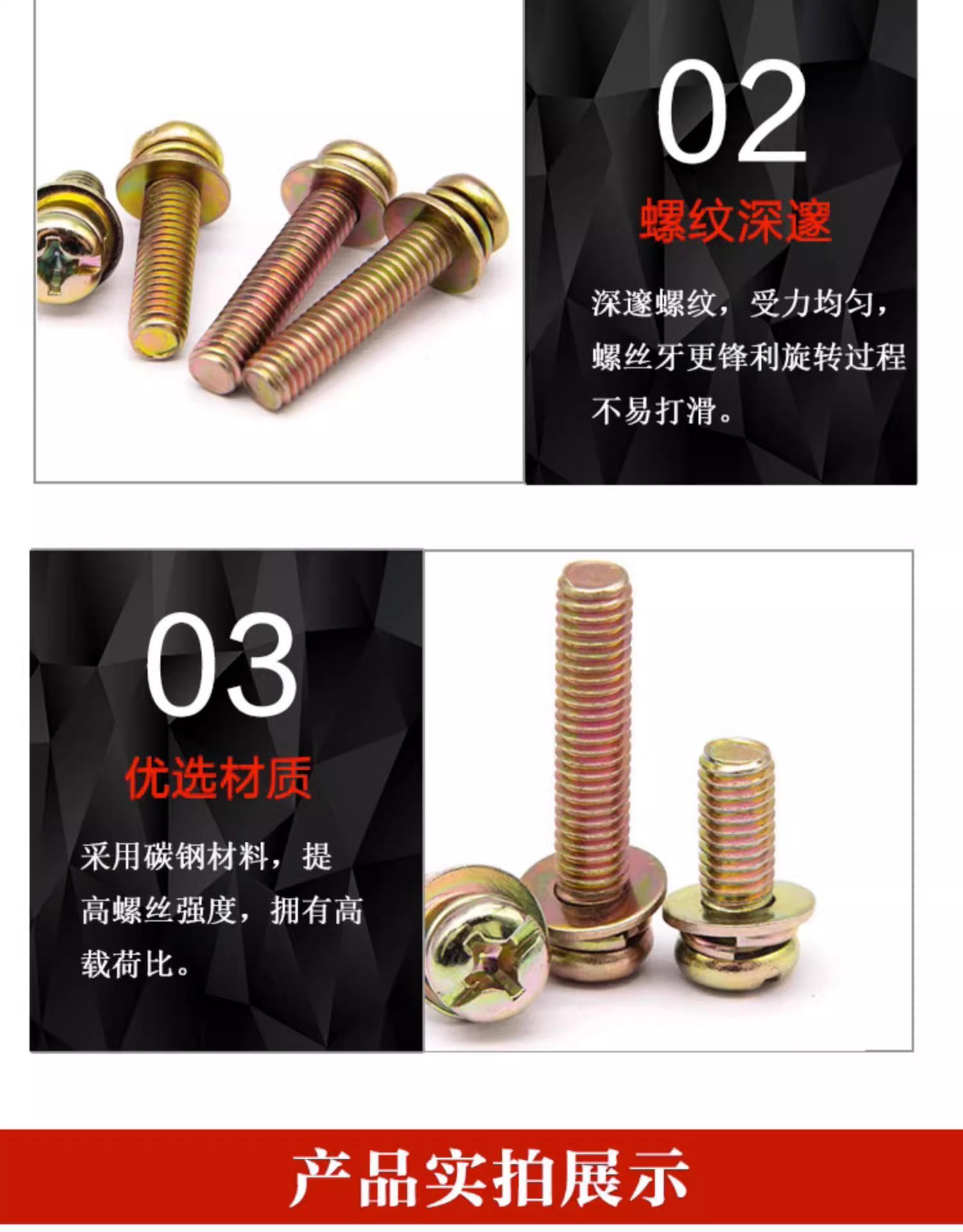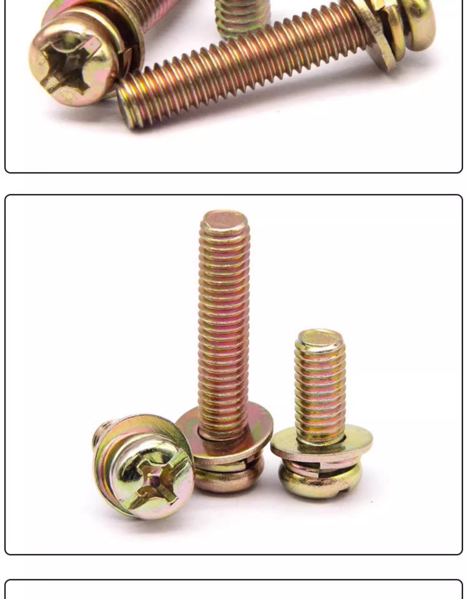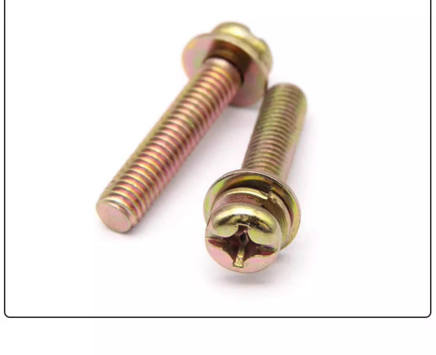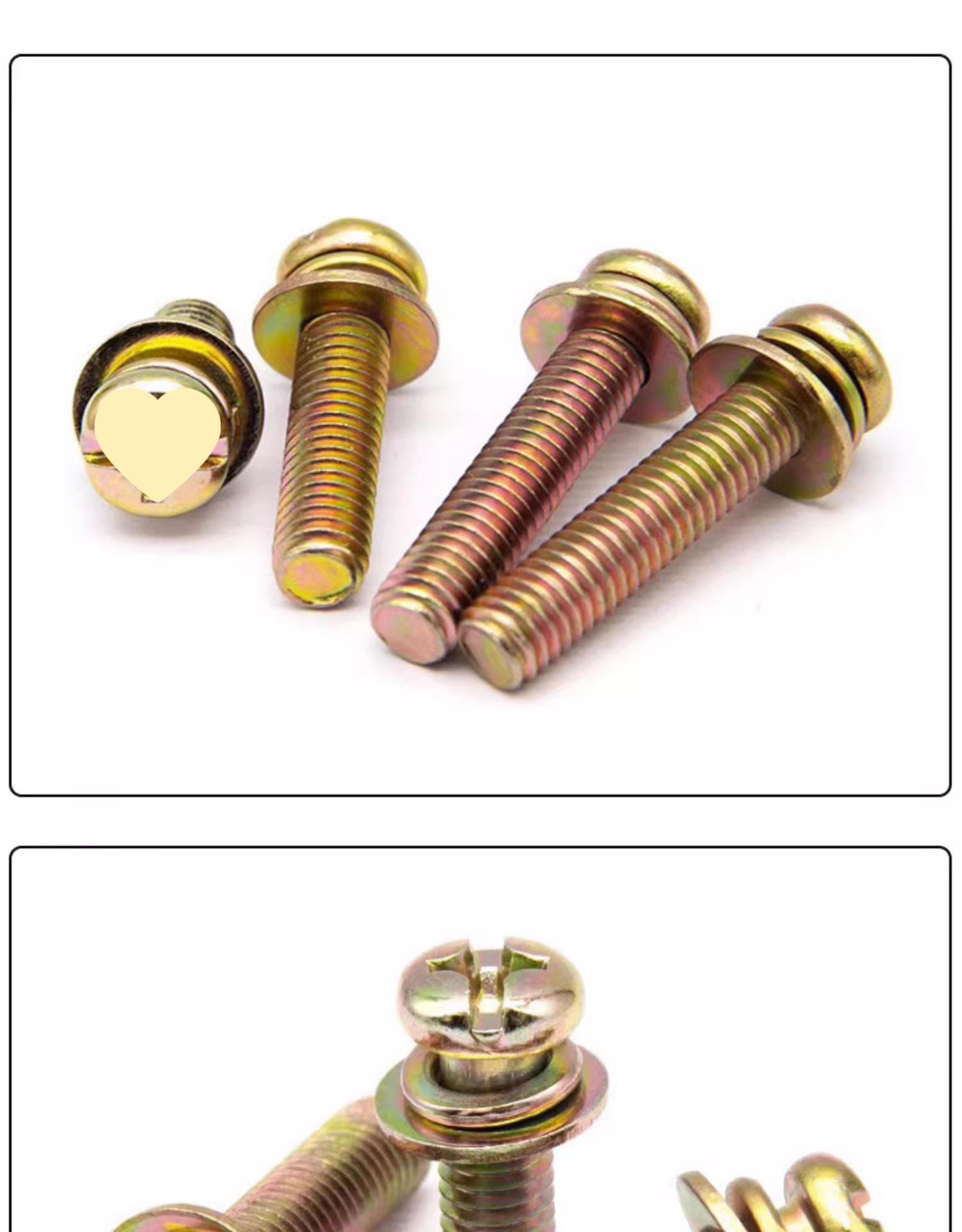 Tornillo de combinación de tres piezas en cruz, galvanizado en color, cabeza redonda/con almohadilla plana, tornillo de almohadilla de resorte, tornillo de cabeza plana en cruz M3M4M5M6