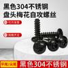 Tornillo de rosca de cabeza plana de acero inoxidable negro, tornillo para madera de cabeza redonda con punta de cruz negra oxidada PA M2 ~ M6