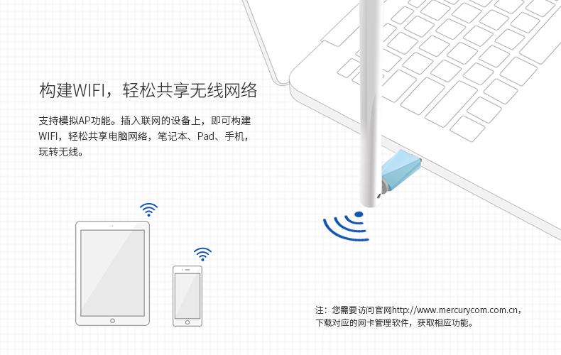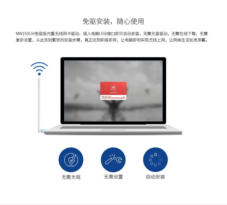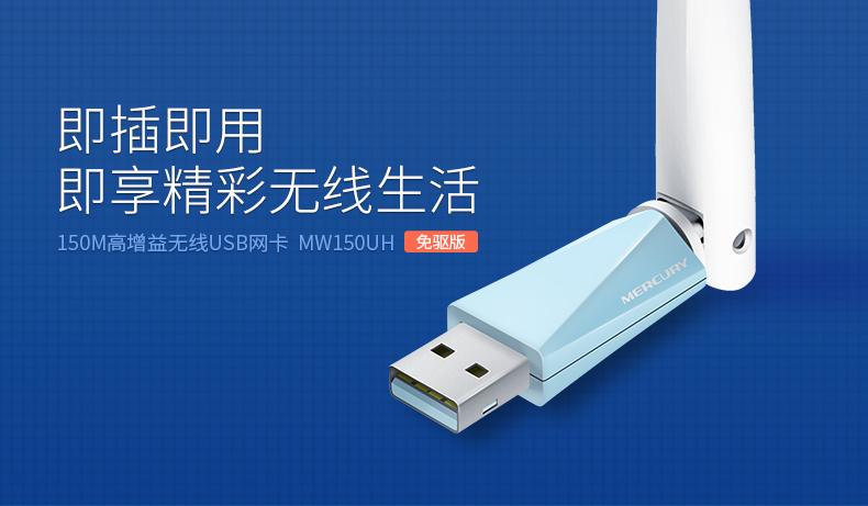 Mercury Mw150Uh Versión sin Controlador Antena Externa USB Receptor de Tarjeta de Red Inalámbrica para Laptops, Instalación sin Controlador