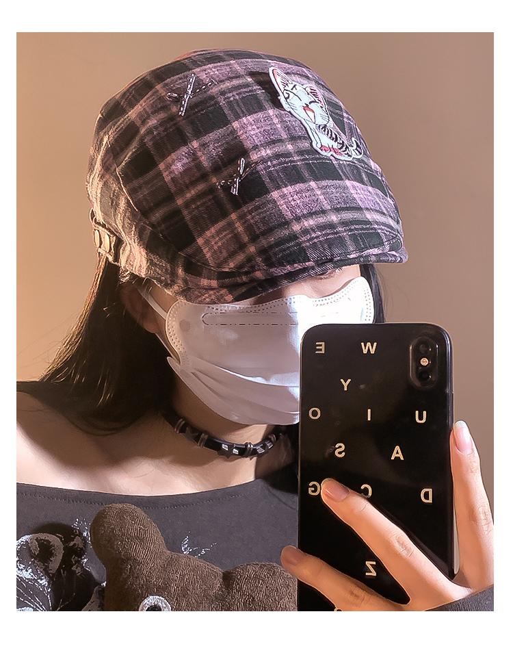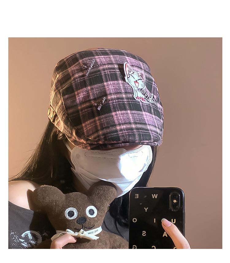Boina a cuadros con diseño de Spice Girl para mujer, estilo Y2K, estilo pintor, transpirable, con lengua de pato, para verano, tamaño pequeño