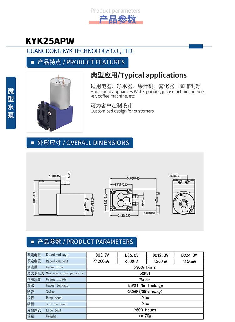 Kyk25APW bomba de agua miniatura bomba de líquido grado alimenticio dispensador de leche bomba de agua miniatura dispensador de agua bomba de diafragma bomba de aspersión