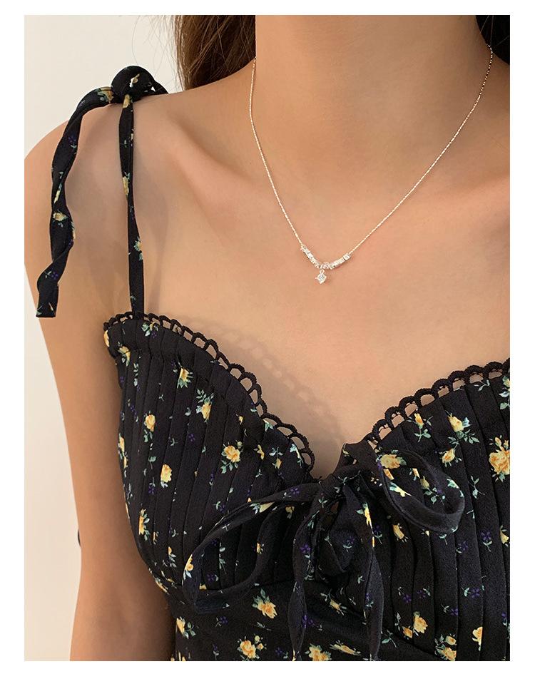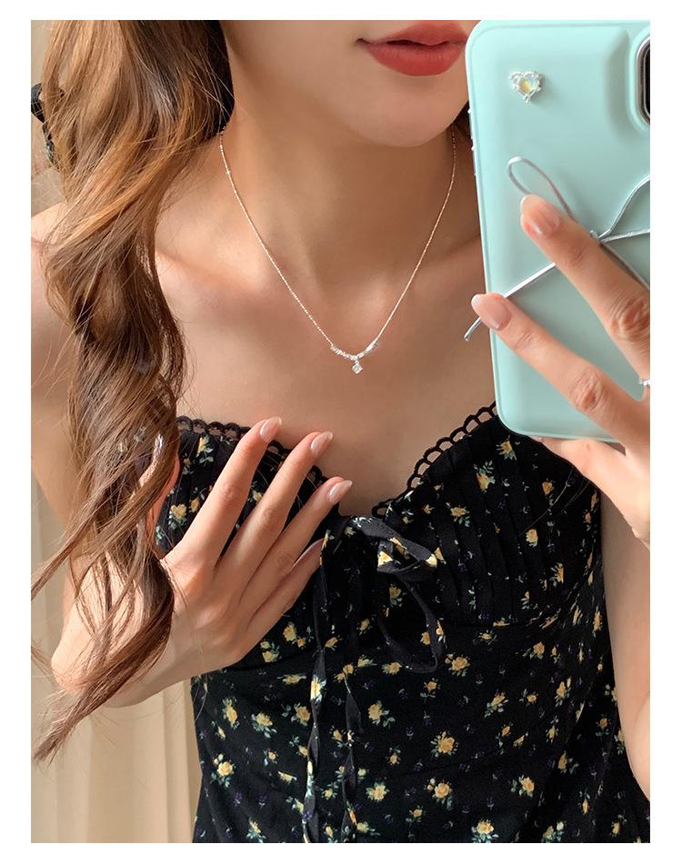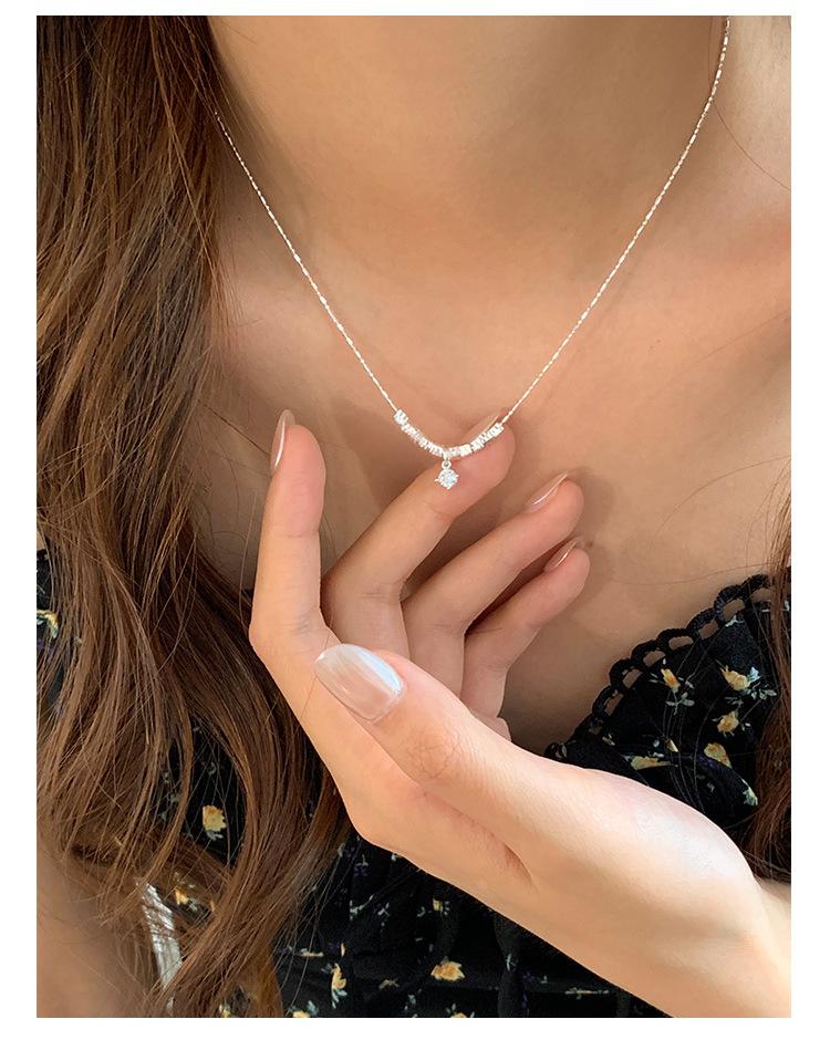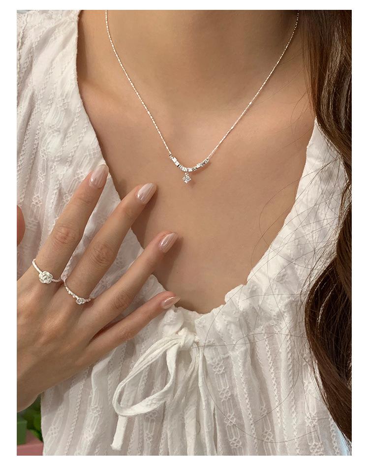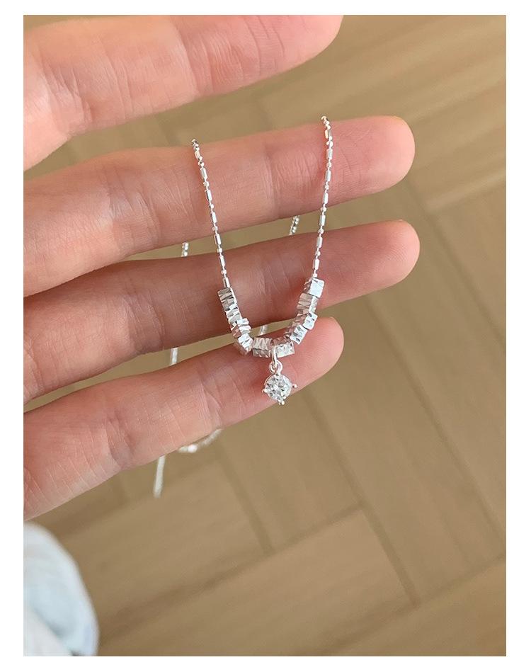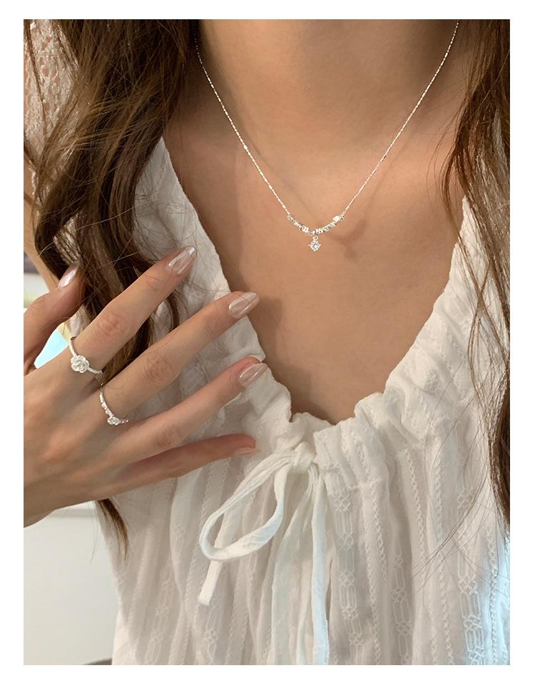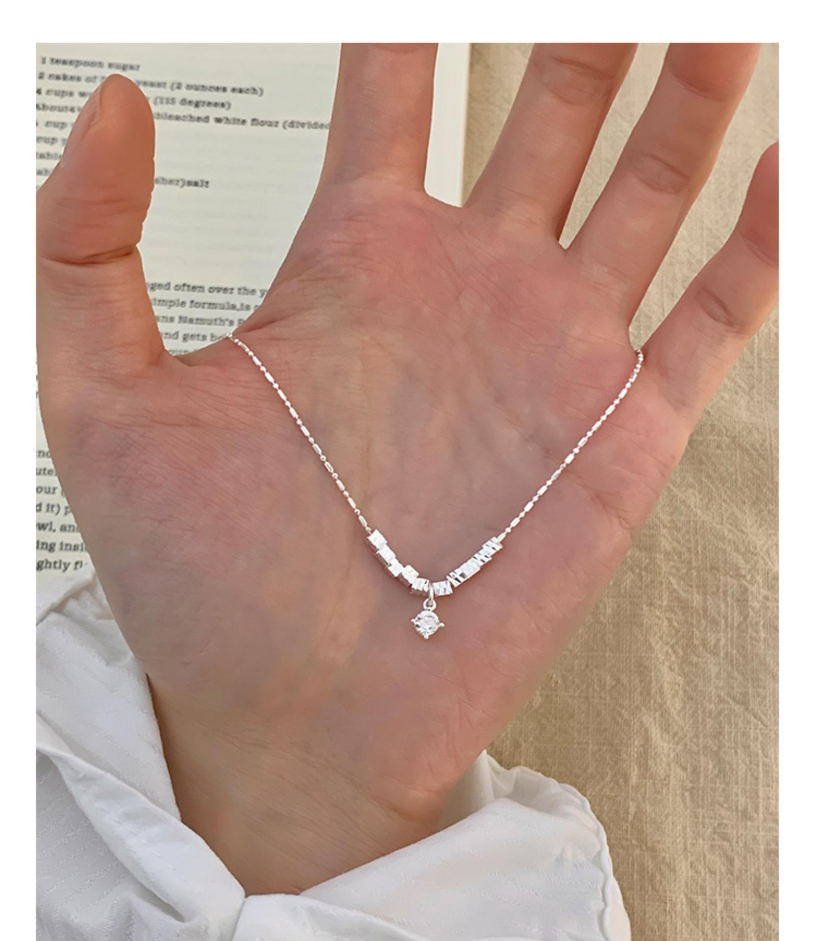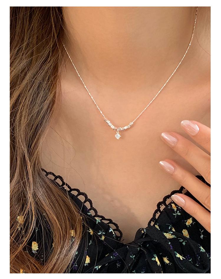 Collar de plata con circonitas redondas y diamantes rotos para mujer, diseño de nicho de lujo ligero, estilo moderno y temperamento, cadena de clavícula al por mayor
